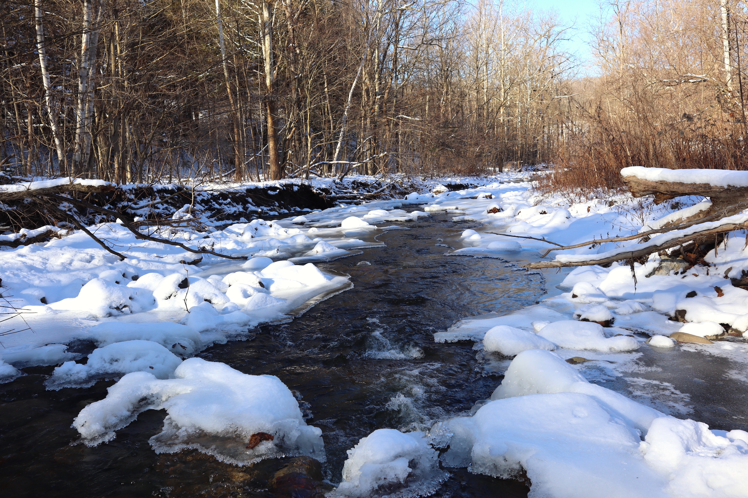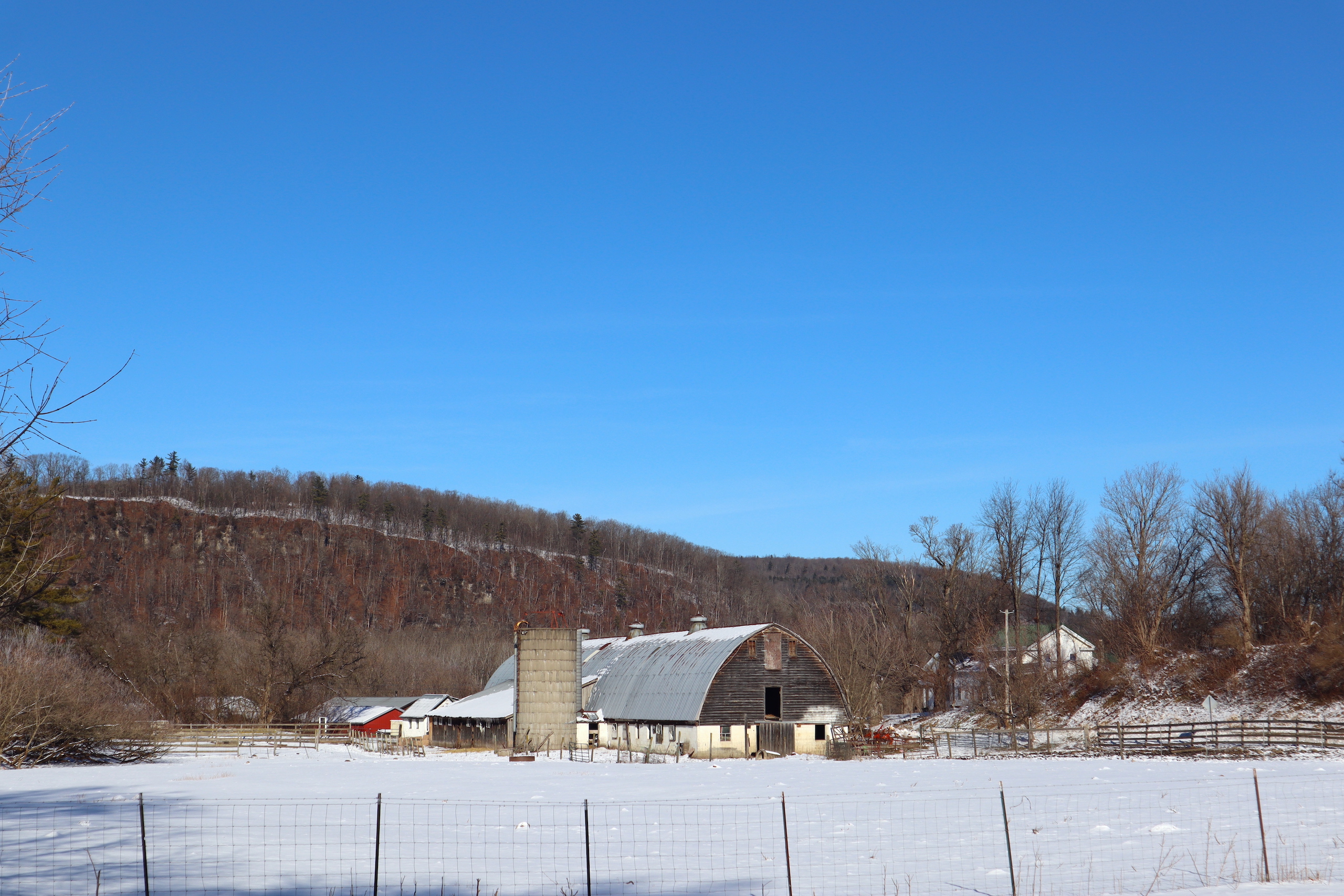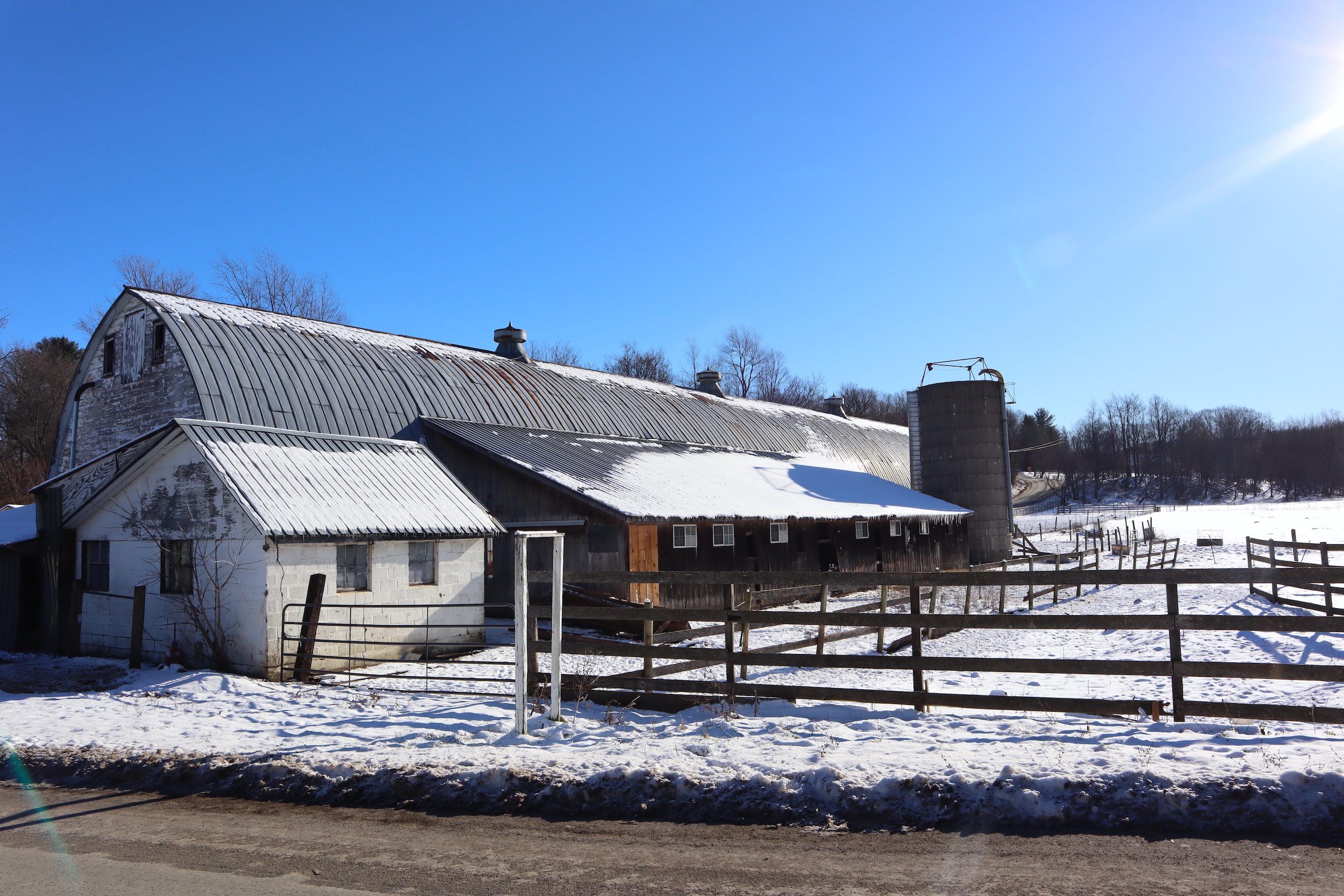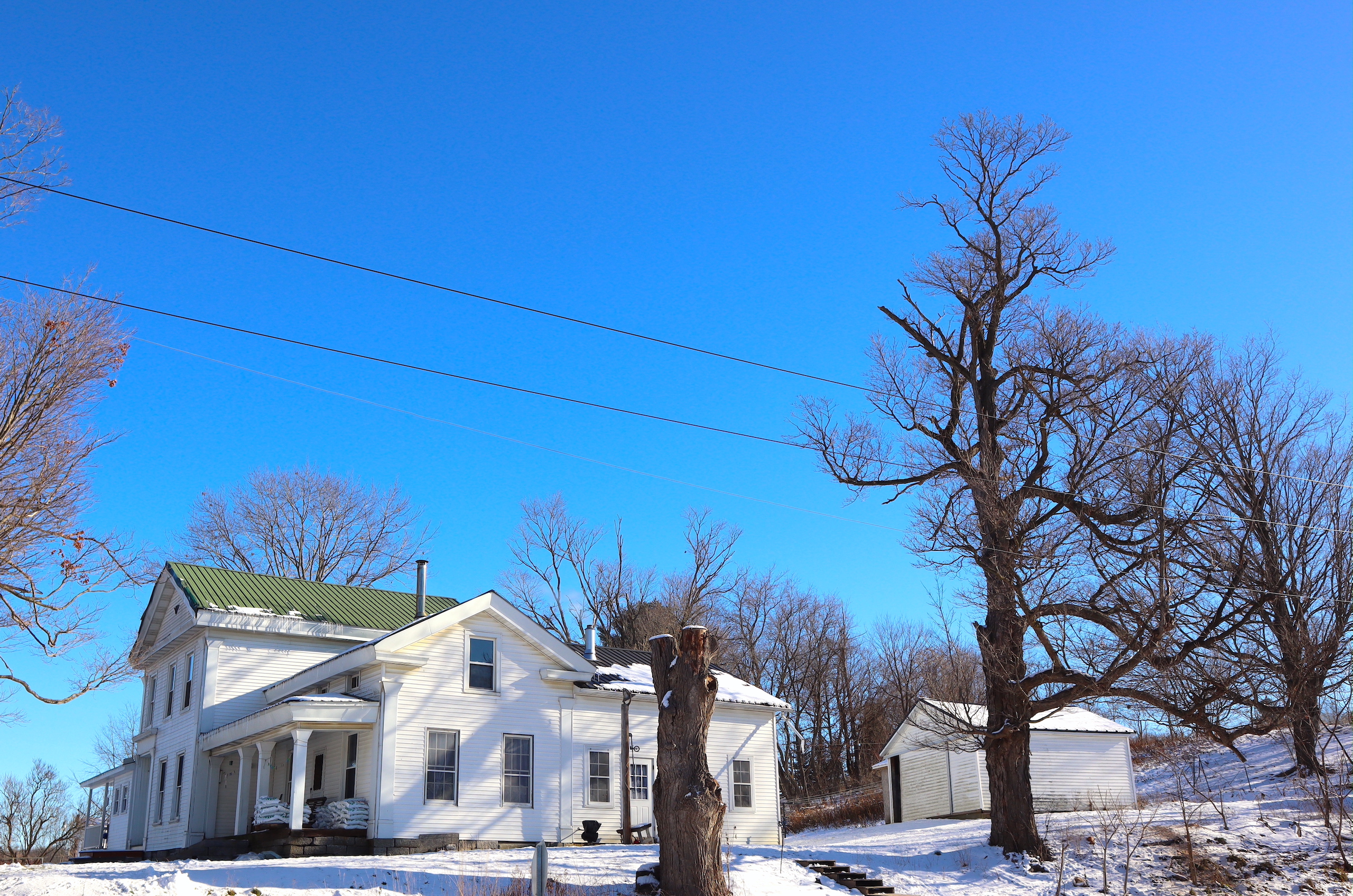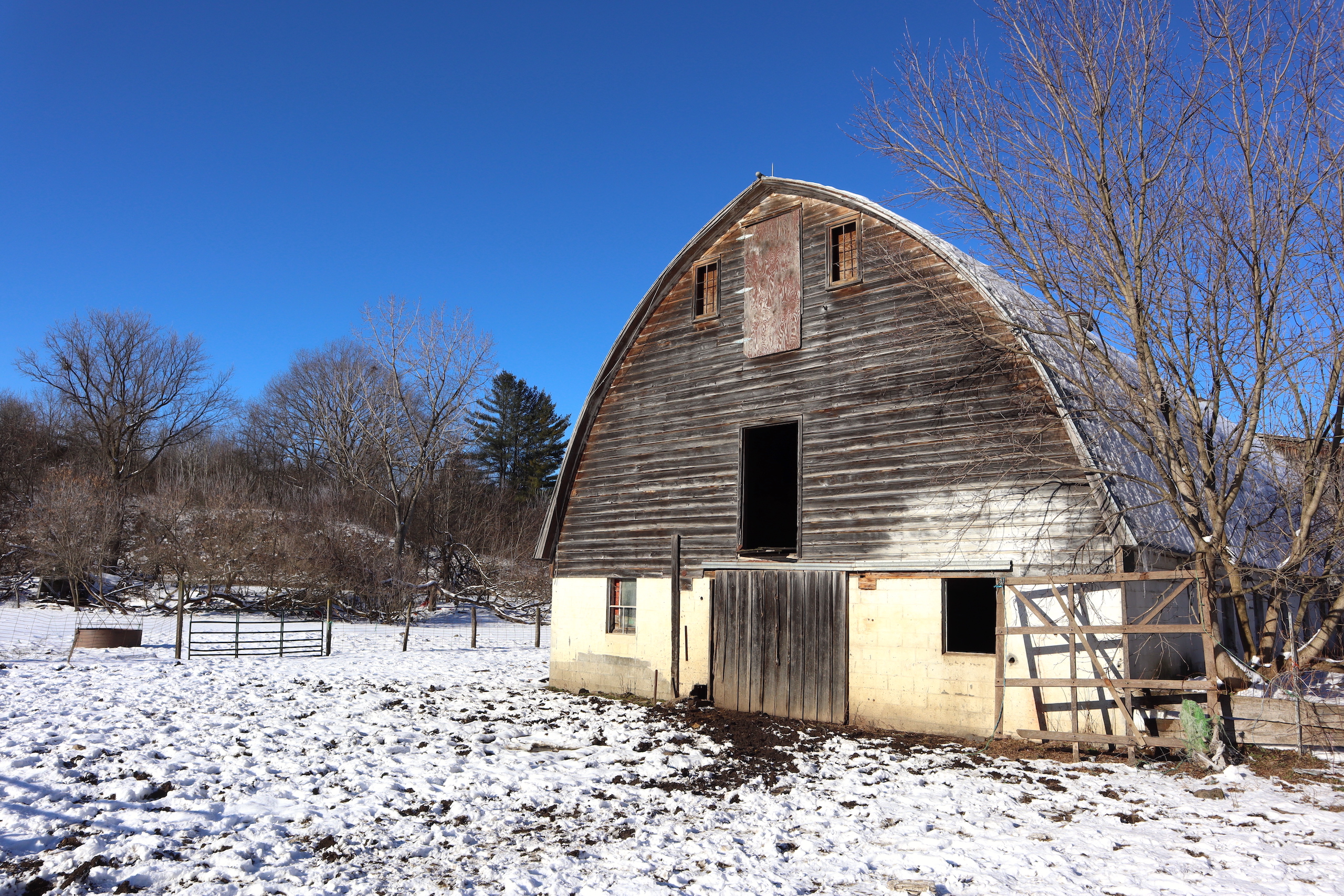 Country farm with a two-story barn, insulated workshop and pole barn, tillable acreage, pasture, stream and large house sit on quiet road. Large 3,690 sq’ Greek revival style house features 5 bedrooms, large open concept dining and living room with plenty of space to enjoy time with family and friends. There is also an adjoining but separate section of the house featuring a large living room, dining room and kitchen with an additional 3 bedrooms in this section of the house. Both sides of the house include a nice covered porch, the perfect place to sit and overlook the farm in a rocking chair or on the porch swing. The house does have a drilled well and septic system. The 5,760sq’ livestock barn is currently in use for sheep with multiple large pens as well as multiple horse stalls and room for chickens and other animals in the large lean-to that runs the length of the barn. There is a milking parlor and milk room. The upstairs is spacious and bright with plenty of room for hay storage. There is roughly 15 acres of tillable ground that can be used for pasture or crop production as well as several great locations for a large garden. Several apple trees on the property provide apples also. The timber consists of a mixture of maple, hemlock oak and some cherry. Yatesville Creek runs through the property for nearly 3,500’ with land on both sides of the creek in some sections. There is a steep and wooded bank on the north west corner of the property that overlooks the creek and provides a perfect location to take advantage of the natural funnel and consistent deer movement in the creek bottom below. The area has excellent deer and turkey hunting. There are currently two businesses run out of the workshops on the north side of the property. There is a 40’ x 60’ insulated woodshop currently for use for a cabinet making business. The shop features broad plank wood floors, multiple windows a loading dock and a lean-to off the back. There is another 24’ x 83’ insulated pole barn with a poured concrete floor that is currently used to build sheds. Large doors at both ends offers opportunity for easy loading and unloading. The 1,286-acre Rural Grove State Forest and the 712-acre Yatesville Falls State Forest are just minutes away providing numerous recreational activities from hiking and cross-country skiing to hunting and snowmobiling. Just 5 minutes to the New York State Thruway and other amenities. This farm is sold AS IS, needing updates with electricity, a heat source and a restroom added.