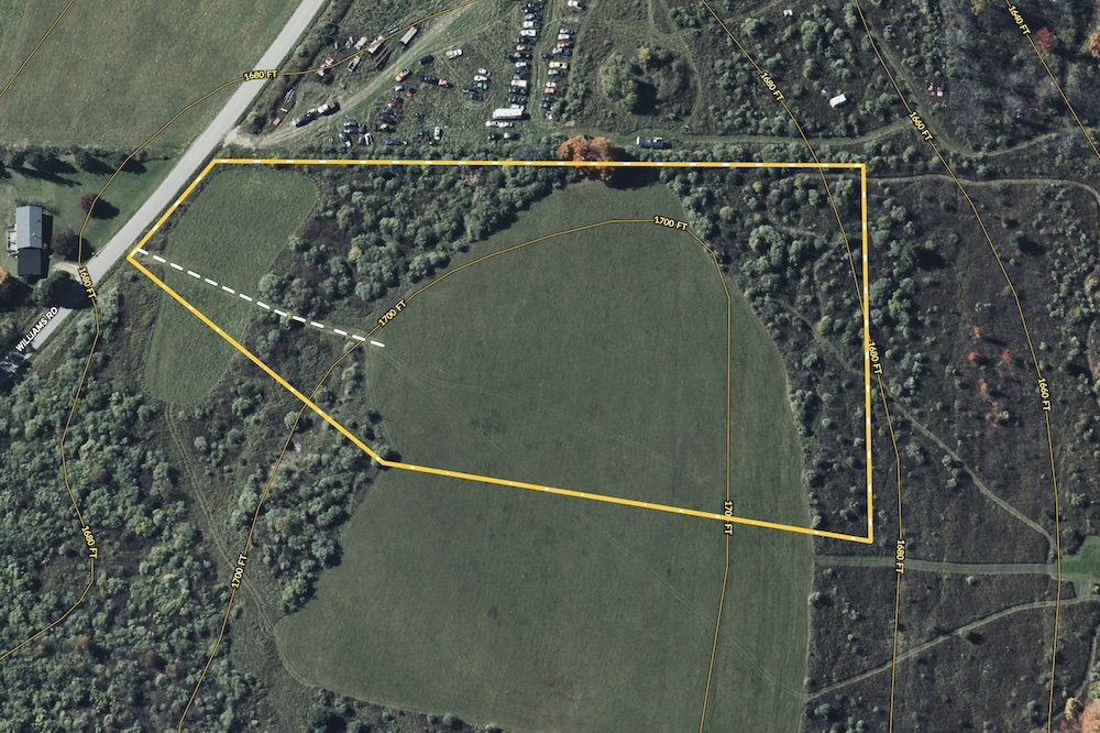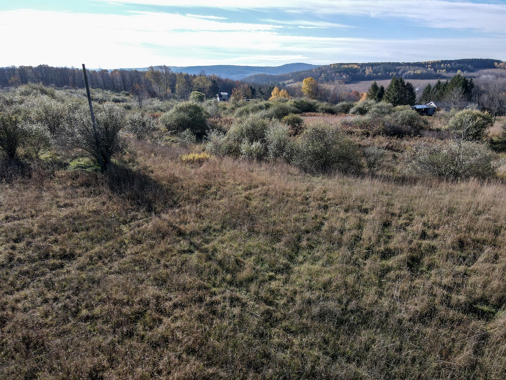 With panoramic scenic views, this could be your next recreational retreat for a potential cabin site, home site, or RV setup. A smaller field near the road frontage then turns to brush before driving atop the lot, where it provides some stunning views that Steuben County can be known for. Deer sign is plentiful with thick cover and obvious trails crossing the fallow field. There is an old well casing and a utility pole that may be of use or have the potential to be rehabilitated at the buyer's discretion. The nearest electric utility pole is approximately 330 feet to the Southwest from the corner of the lot A recent survey will convey with this parcel. The adjacent larger lot and another lot may still be available, as well as referenced in the one aerial photo as Lot 2 and Lot 3. All rights convey.