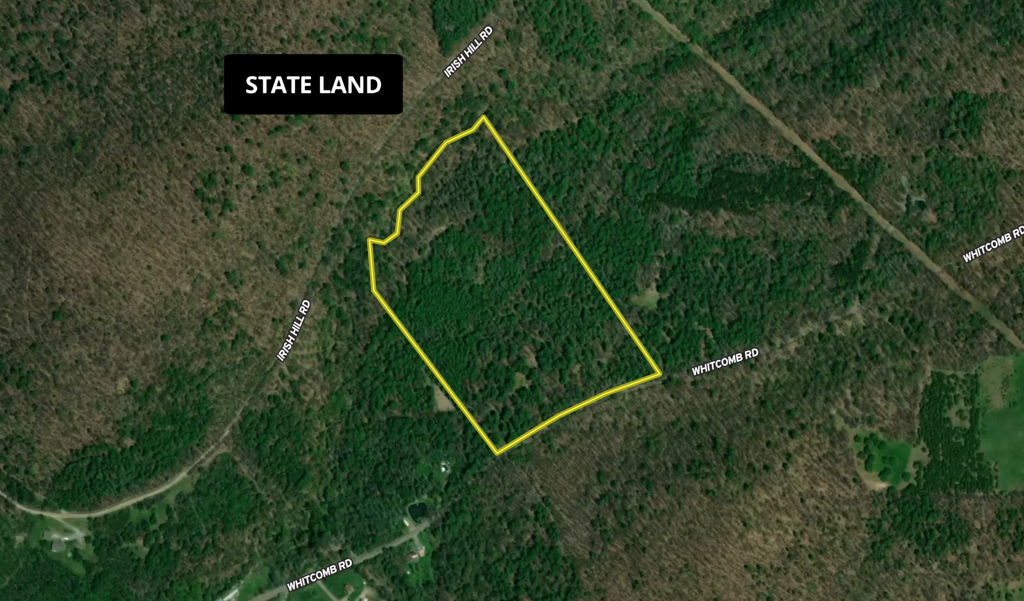 Bordering state land, this property provides ample opportunity for any outdoor enthusiast. This parcel of land allows for great hunting, hiking, and recreational enjoyment, just minutes off from Interstate 86 and on the southern belt of the Finger Lakes Region. An improved driveway and leveled camping area already exists with a small shed/cabin being sold in AS IS condition. Electric is available on Whitcomb road one parcel away from this property, likely allowing electricity to be accessed if desired. With trails, food plots, and a variety of habitat in place, this property shows good activity of a variety of species. Walking toward the state land you will cross a creek, which provides a natural water source through the valley. We look forward to showing you this property. Contact Brandon Scott- Whitetail Properties Real Estate Agent