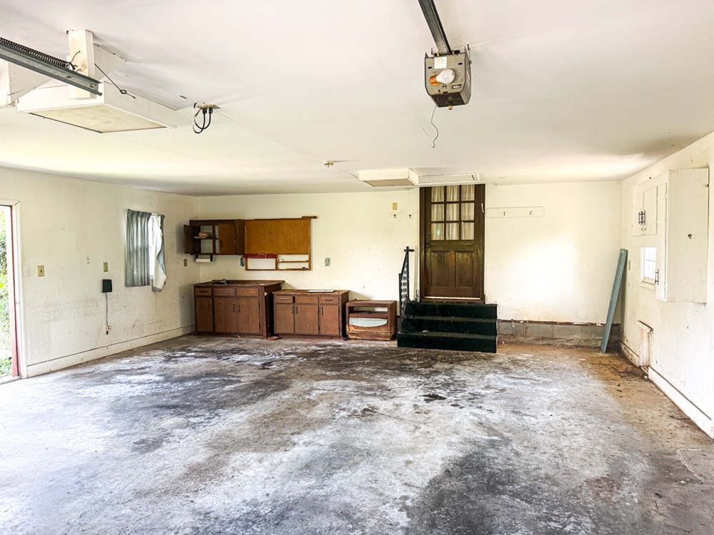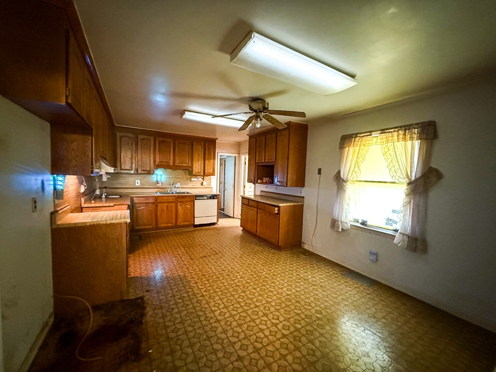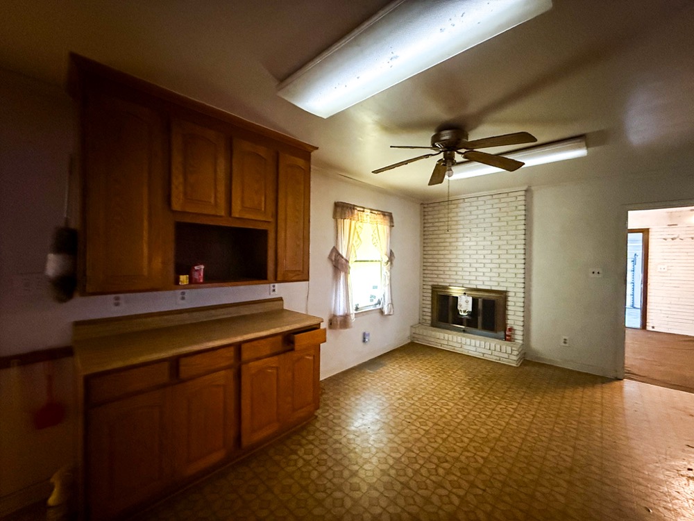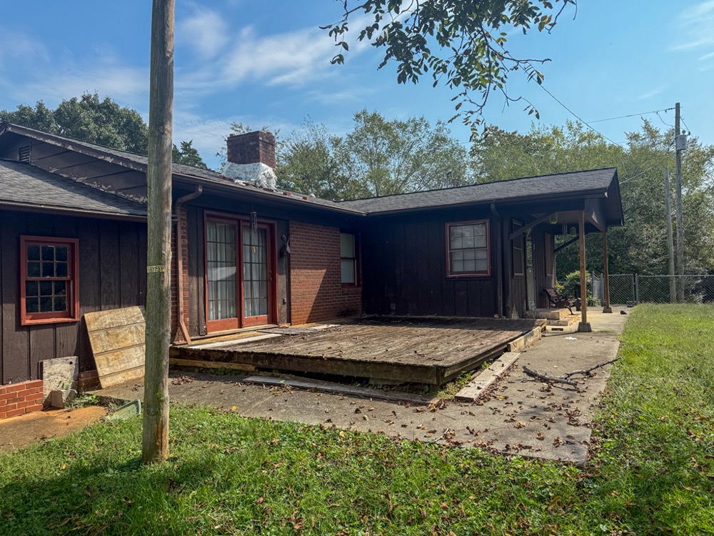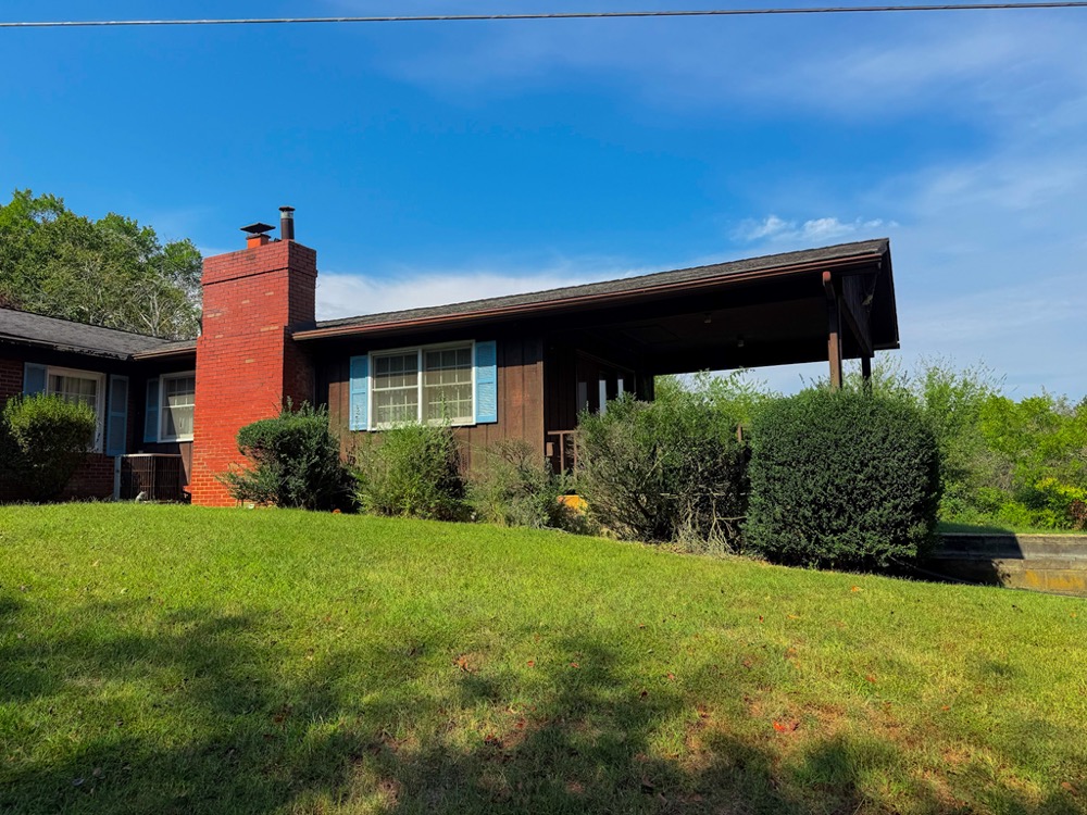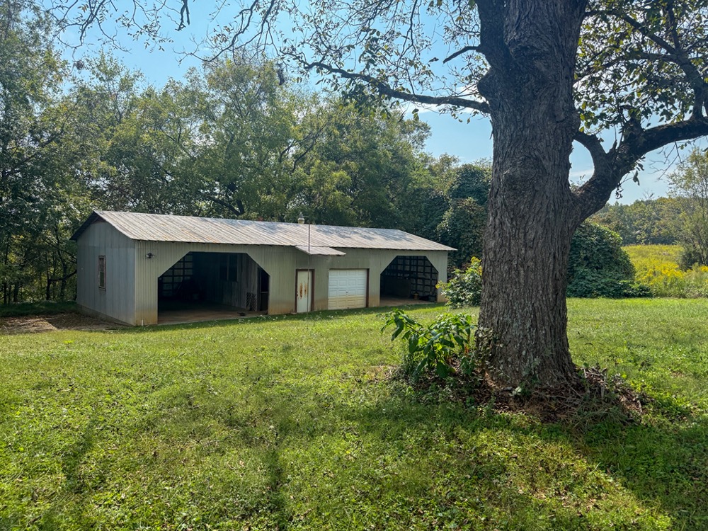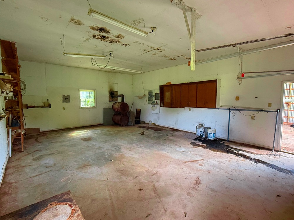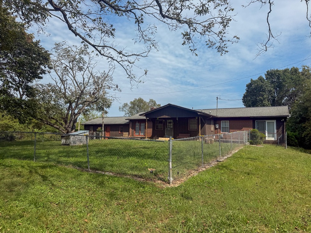A 3-bedroom, 2-bathroom brick ranch-style home, originally built in 1974, is located on the property. The home features an attached two-car garage, a primary suite with direct access to a back porch, fireplaces in both the kitchen and living room and an unfinished basement. The structure will require updates but offers solid potential for renovation. A fenced-in backyard surrounds the home, and a large barn provides storage for equipment or other needs.