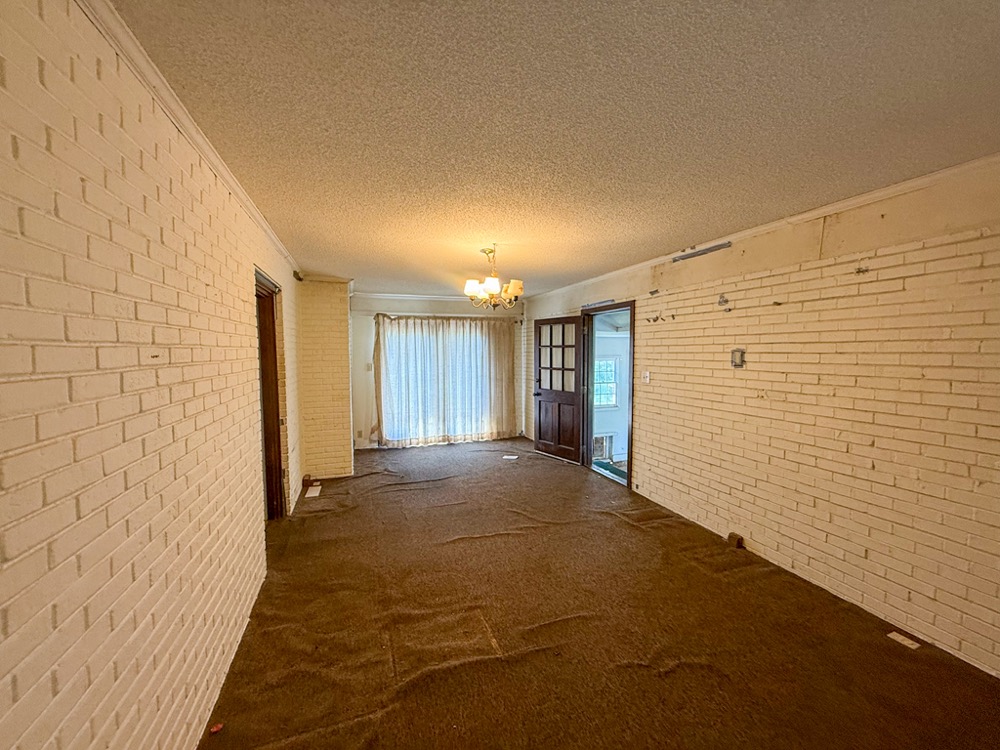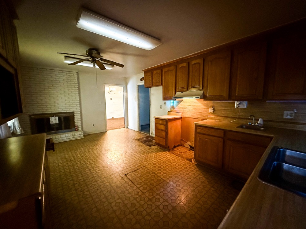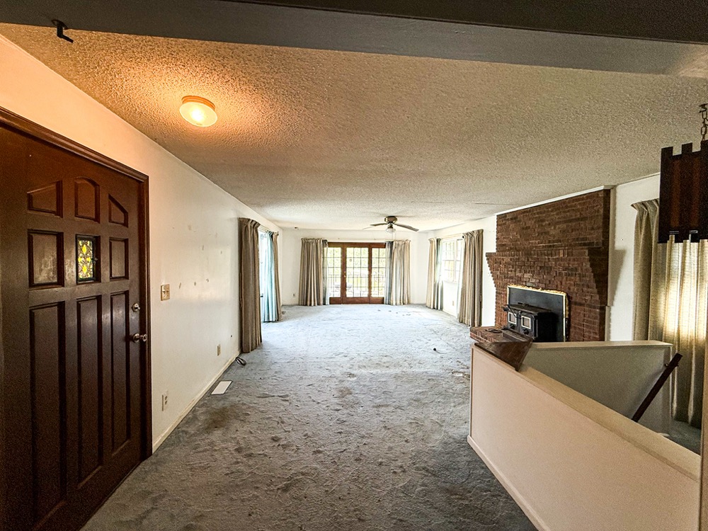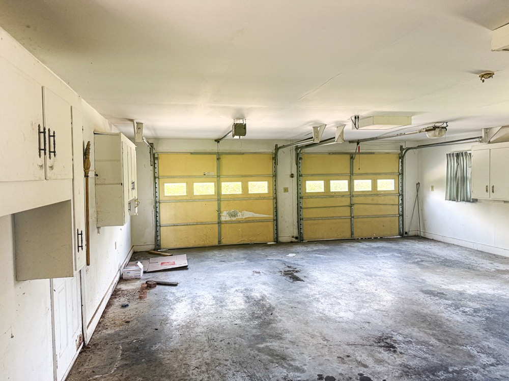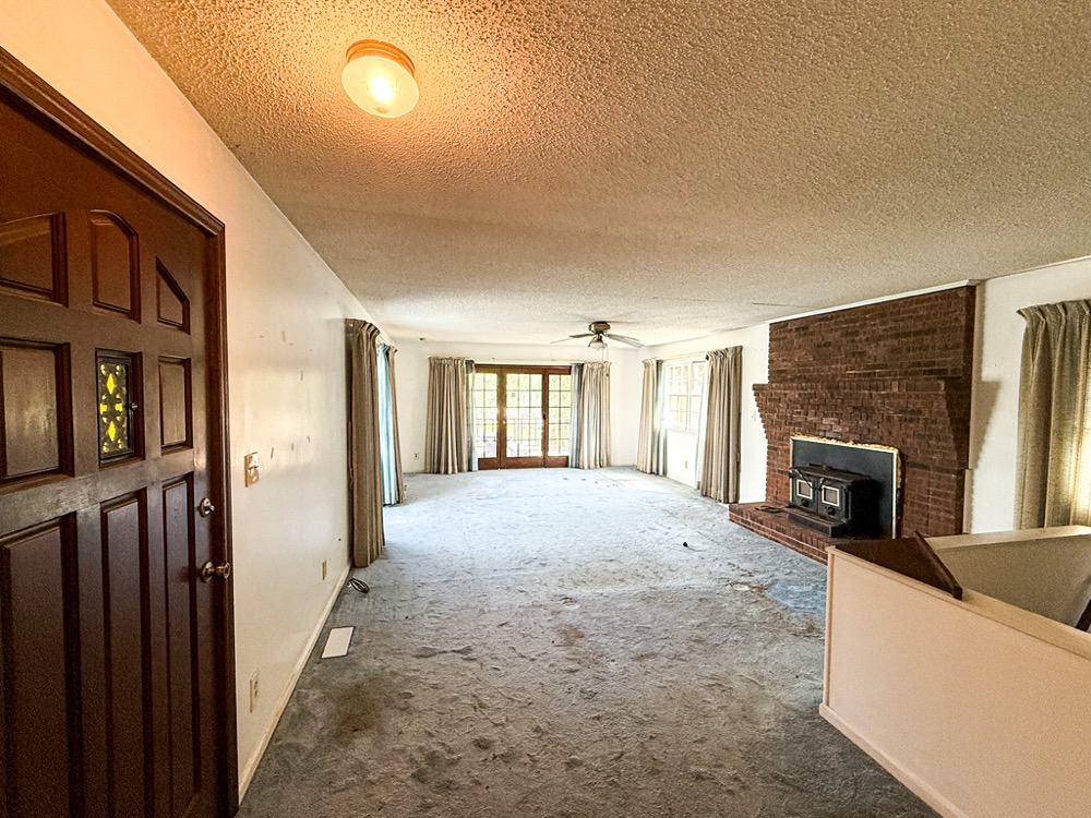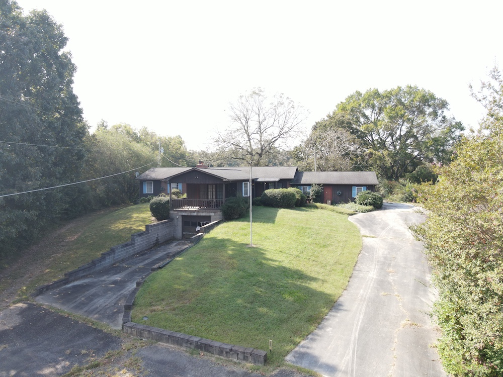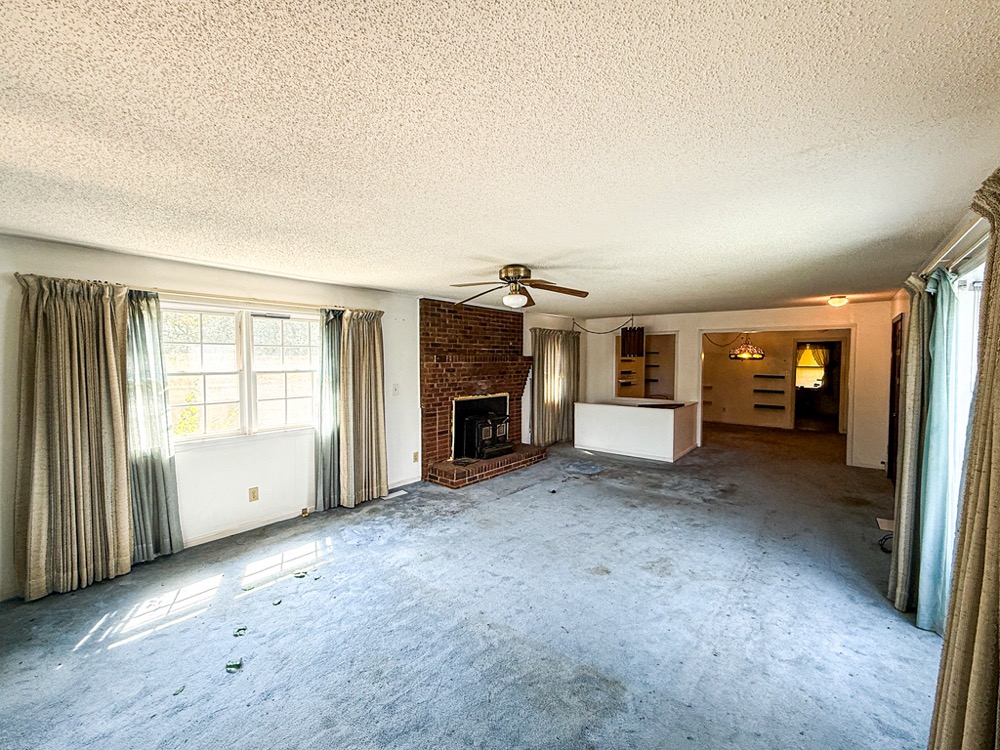 A 3-bedroom, 2-bathroom brick ranch-style home, originally built in 1974, is located on the property. The home features an attached two-car garage, a primary suite with direct access to a back porch, fireplaces in both the kitchen and living room and an unfinished basement. The structure will require updates but offers solid potential for renovation. A fenced-in backyard surrounds the home, and a large barn provides storage for equipment or other needs.
