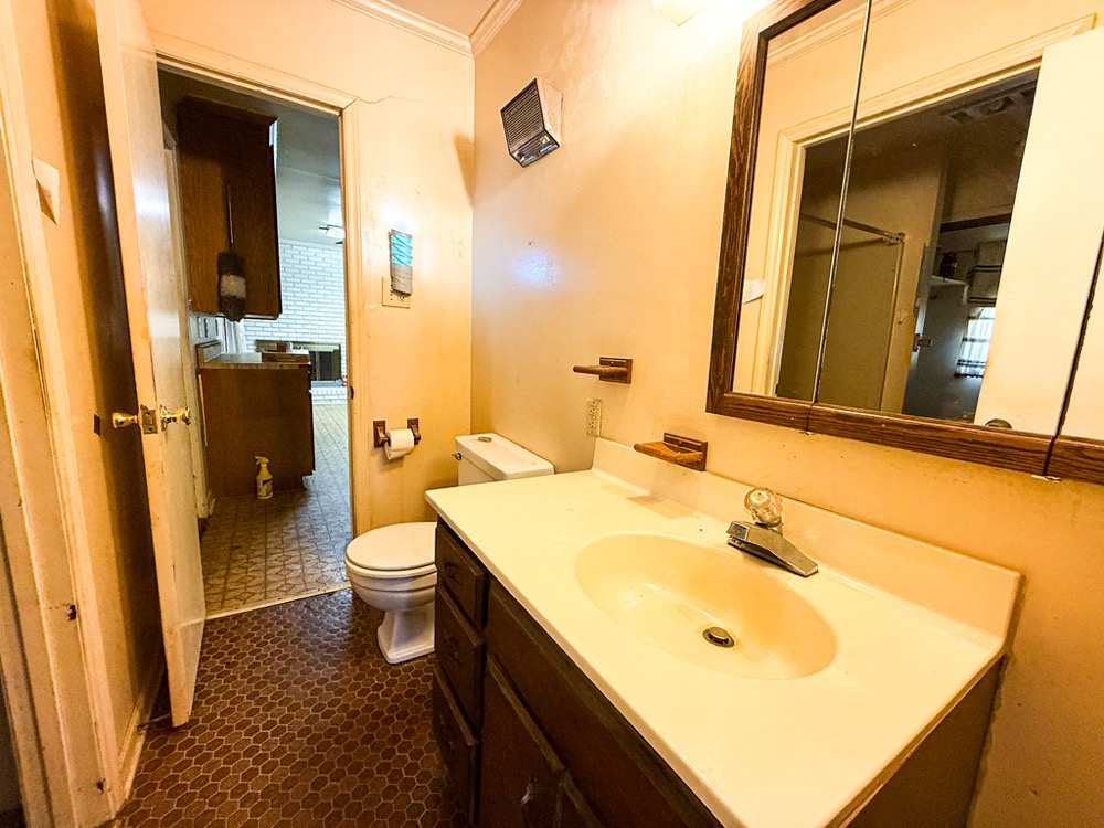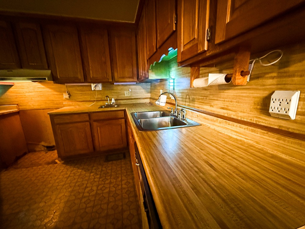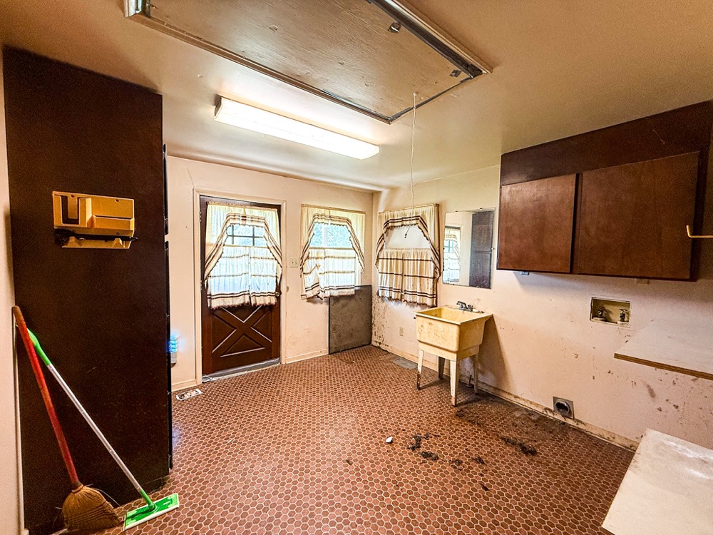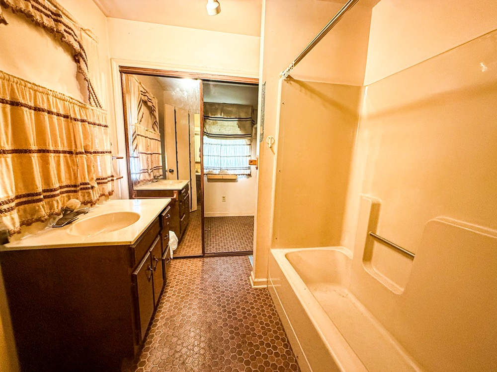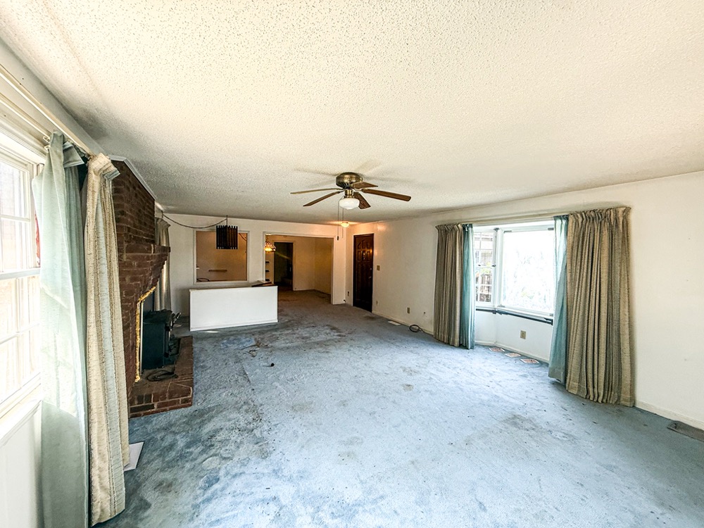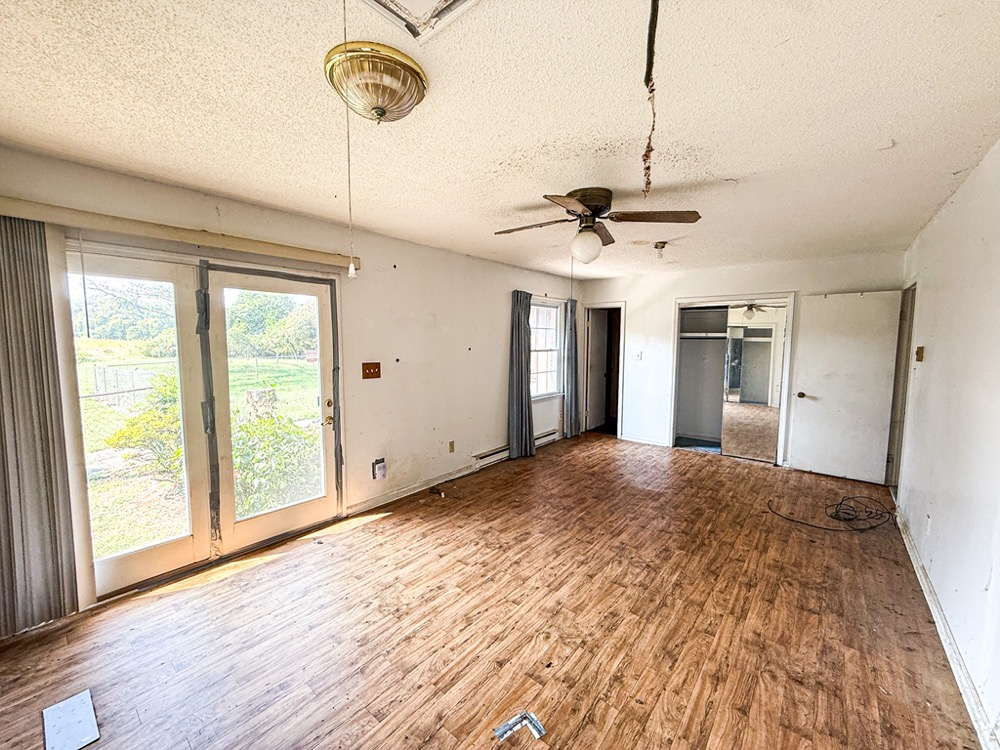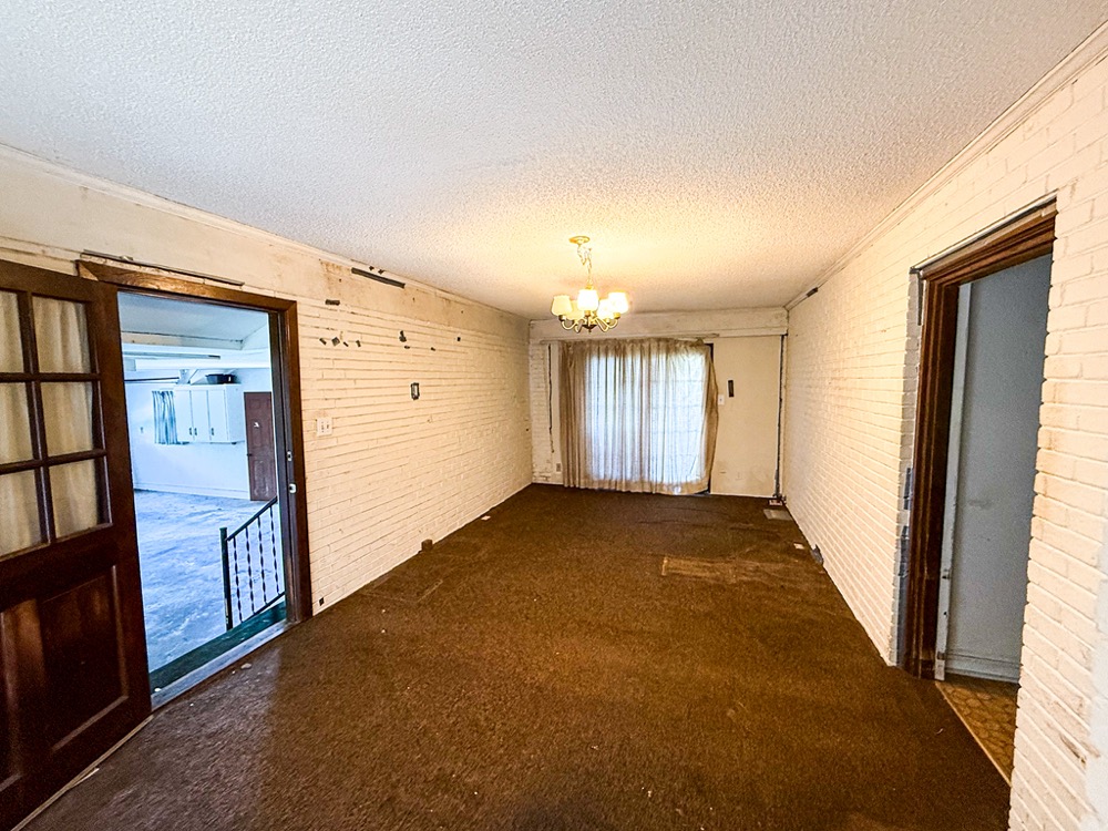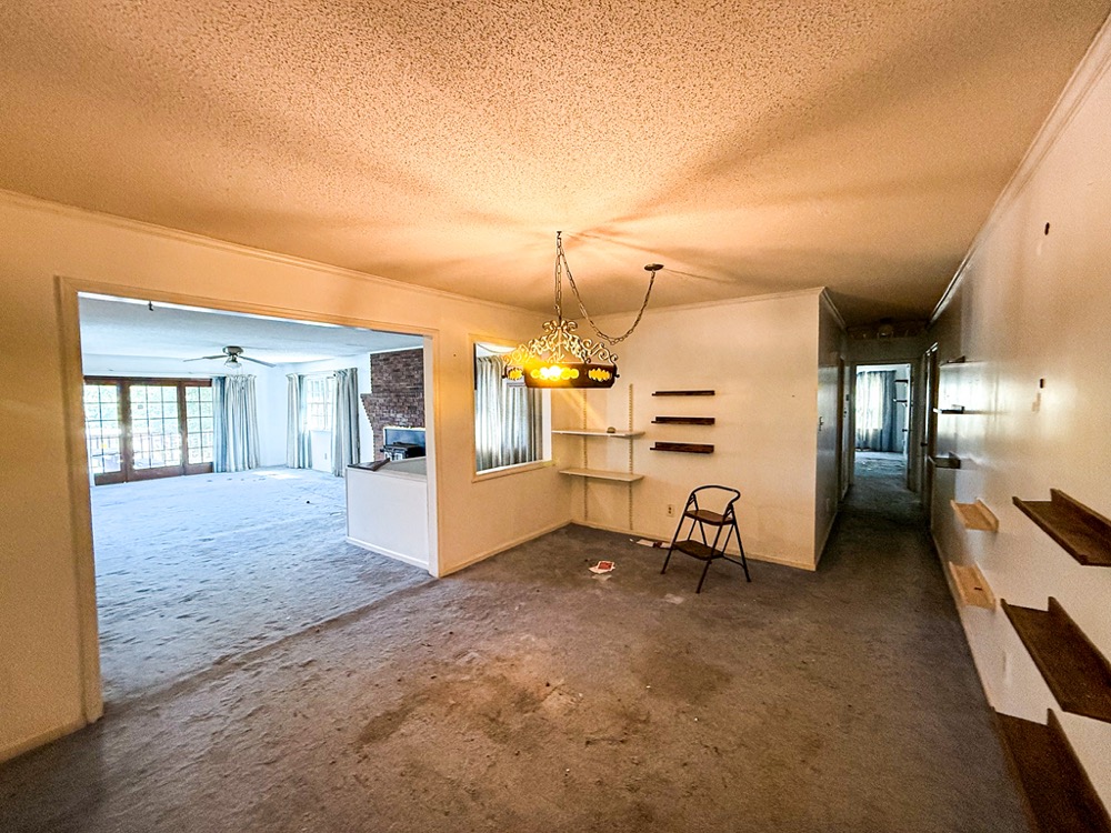 A 3-bedroom, 2-bathroom brick ranch-style home, originally built in 1974, is located on the property. The home features an attached two-car garage, a primary suite with direct access to a back porch, fireplaces in both the kitchen and living room and an unfinished basement. The structure will require updates but offers solid potential for renovation. A fenced-in backyard surrounds the home, and a large barn provides storage for equipment or other needs.