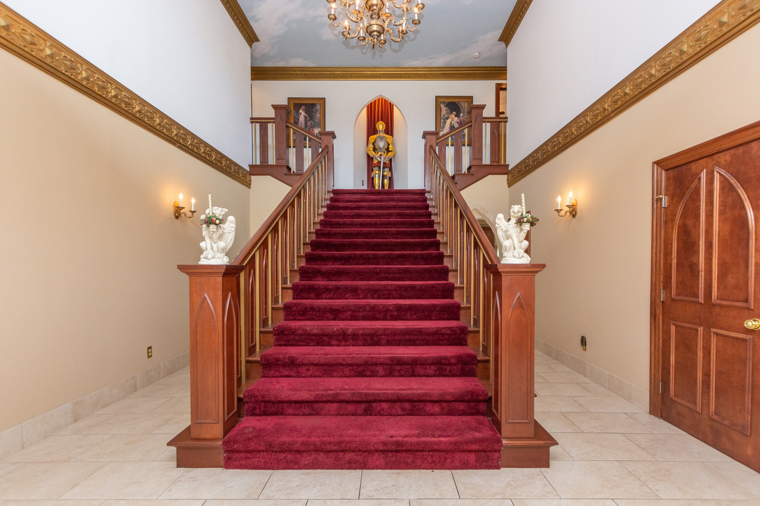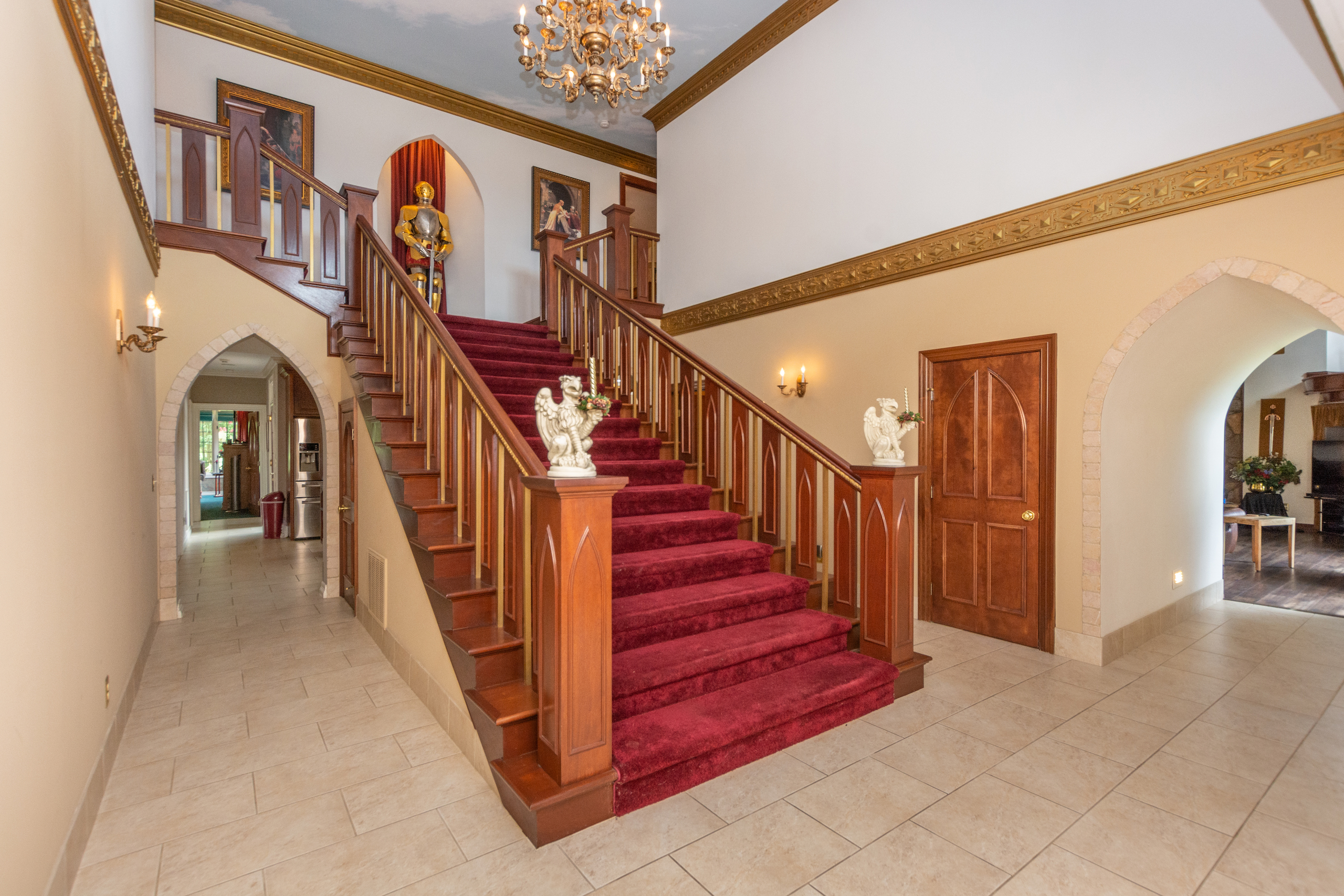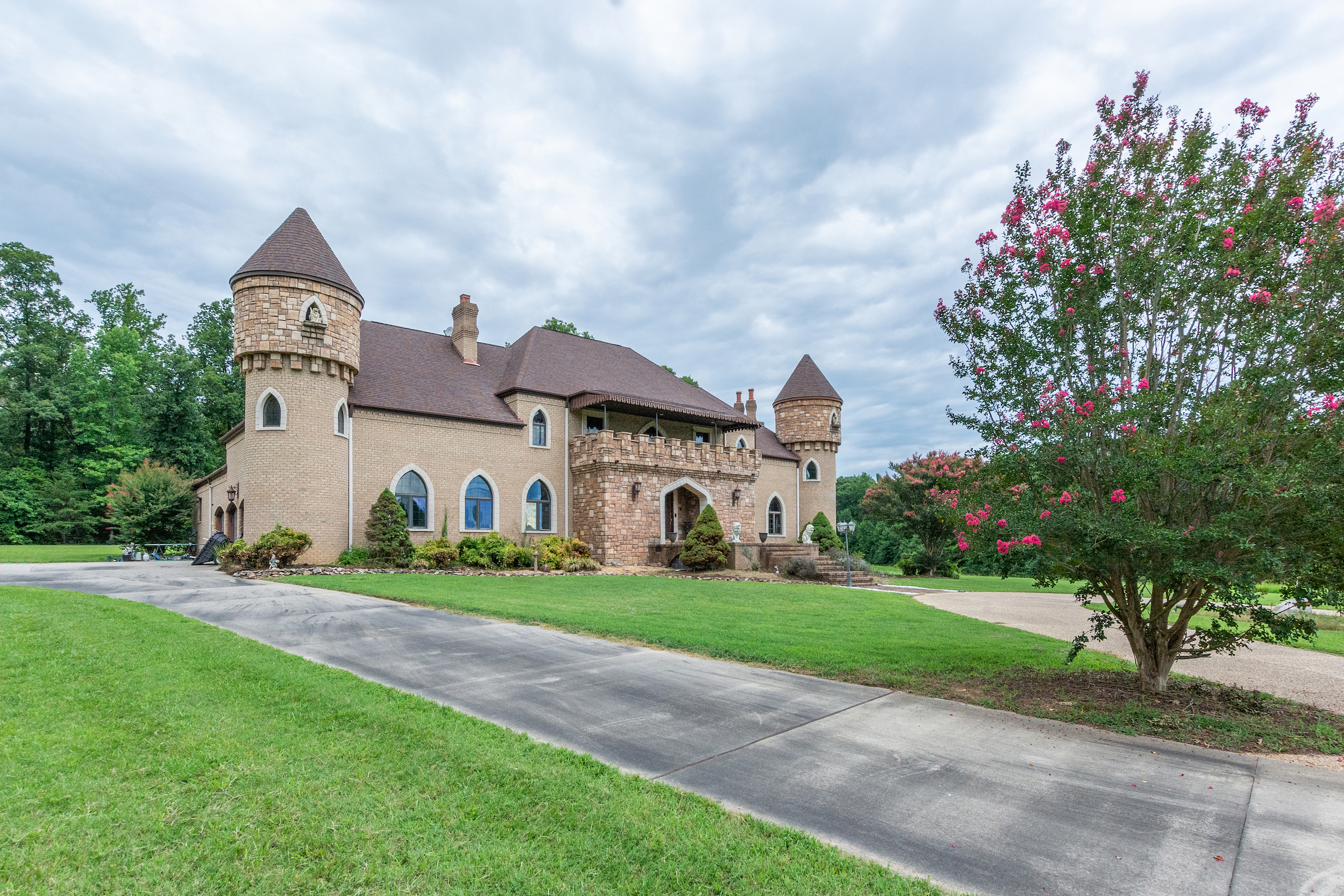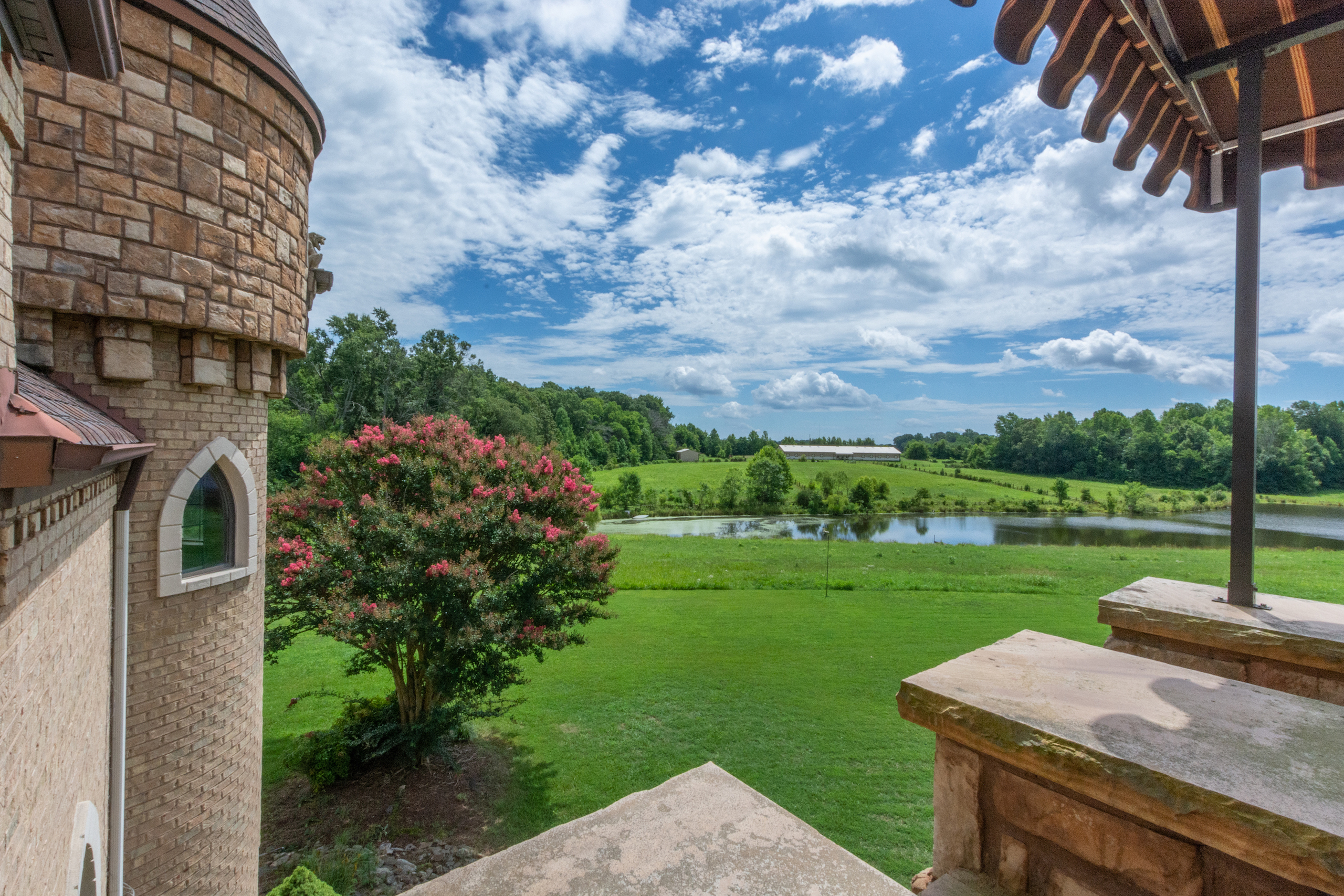 **NO TRESPASSING** Listing Agent Must Be Present For All Showings. The immaculate castle is situated on the most beautiful rolling setting that North Carolina has to offer! I was blown away the first time I drove down the ⅓-mile wooded driveway, past the gated entrance and saw this beautiful home overlooking a 3-acre lake. Peace and quiet are at a premium on this stunning estate! This property has it all! Every piece of this castle was totally customized by the owner. When you walk in the solid Mahogany arched front door you are greeted with a grand staircase and soaring ceilings featuring an astonishing custom-made chandelier. Arched hallways on either side of the foyer lead into a private sitting room, a beautiful den with tall coffered ceilings, several windows for natural light and a massive fireplace. There is even a small, raised sitting room in the front turret overlooking the den. The updated chef's kitchen is a must-see! I have never been in a larger, more welcoming kitchen! Attached to the kitchen is a large, circular breakfast room situated in one of the castle’s turrets. There is a spacious dining room with beautiful columns and stained glass windows. The main level primary suite features tray ceilings, a sitting room, a large closet, an oversized tub, double vanity and a large shower/sauna. The upstairs of this home has 2 more bedrooms, 2 baths, a large executive office and a billiards room. The front rooms walk out to a covered 2nd level porch which overlooks the lake and equestrian facility offering some of the most breathtaking views. Enjoy summer evenings gathering on the beautiful back courtyard overlooking the garden. The home has an attached 4-car garage, half bath, and a heated/cooled workshop. Surrounding this home is some of the most beautiful property I have had the privilege to walk on. Over 50 acres of forest featuring beautiful mature hardwoods where wildlife is plentiful! The icing on the cake with this property is the private 3-acre lake that offers some of the best fishing I have ever experienced! If you love catching fish, this one will definitely fill your needs! The woods, rolling pasture, and lake could make a very special outdoorsman's paradise! This property also features a very large 14-stall equestrian facility with a fenced pasture and riding ring! The facility has a heated/cooled living space, water, and a full bath. The facility has been meticulously maintained and is in excellent shape ready for you to bring your horses! A separate building by the equestrian facility is perfect for all your tractors and toys. The list could go on and on about all the custom features this property offers! For more information and your private showing please contact Land Specialist Clay Mervar. **NO TRESPASSING** Listing Agent Must Be Present For All Showings. All buyers must be prequalified before viewing this home.