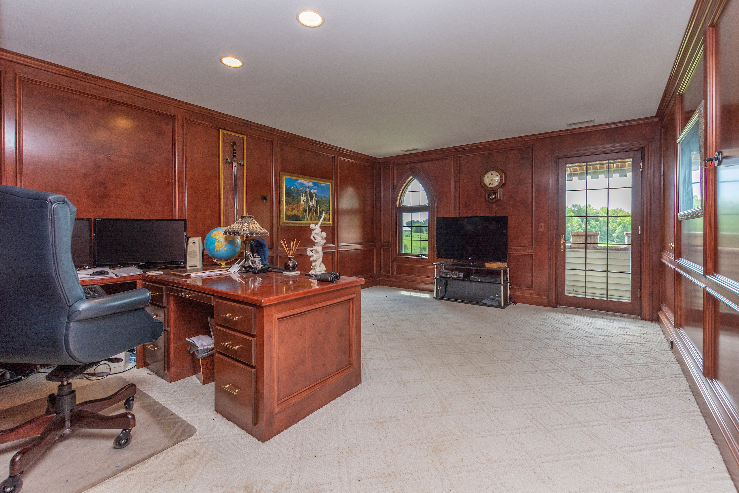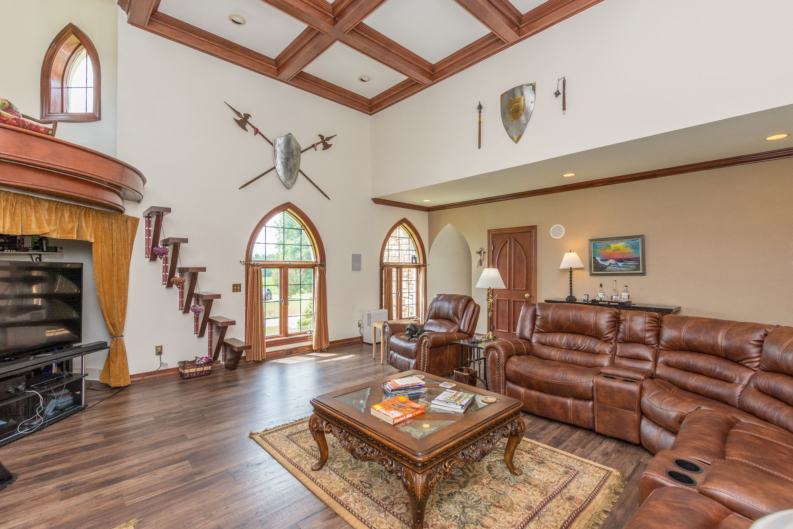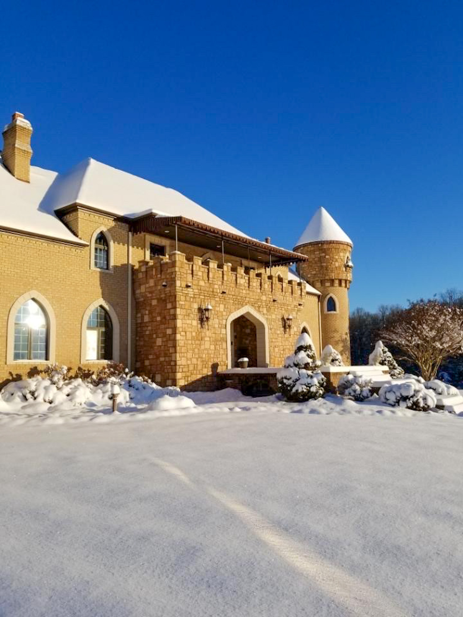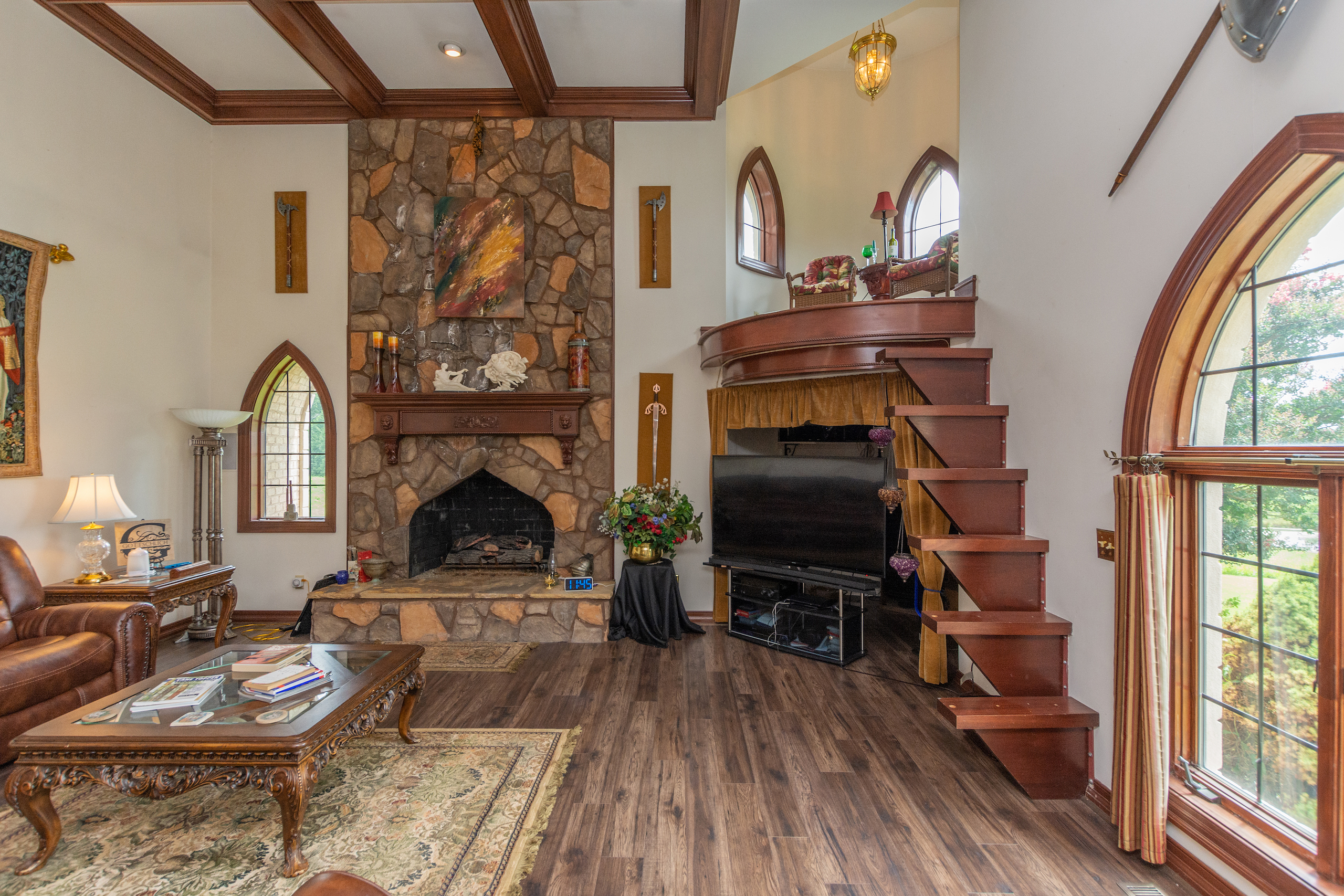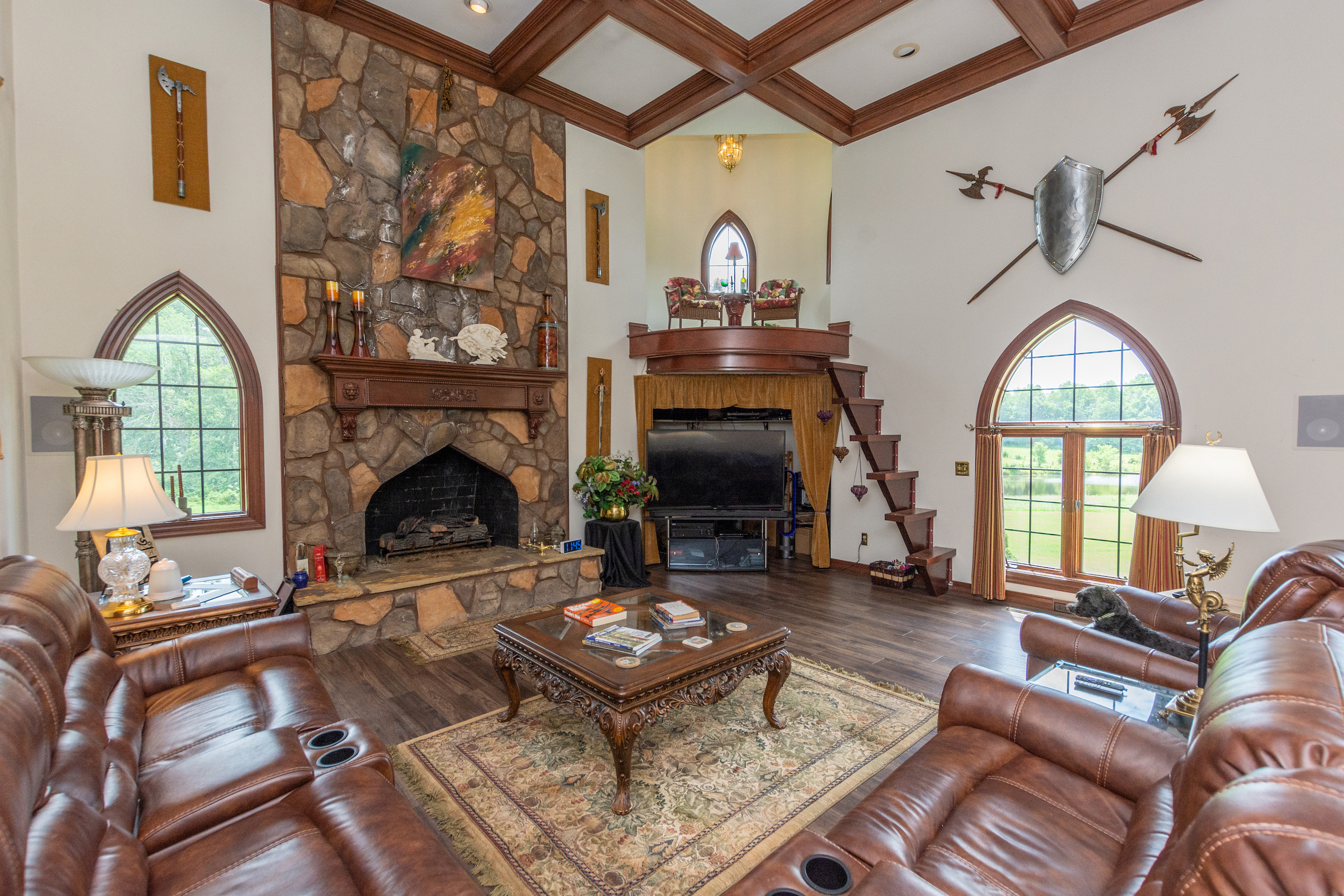**NO TRESPASSING** Listing Agent Must Be Present For All Showings. The immaculate castle is situated on the most beautiful rolling setting that North Carolina has to offer! I was blown away the first time I drove down the ⅓-mile wooded driveway, past the gated entrance and saw this beautiful home overlooking a 3-acre lake. Peace and quiet are at a premium on this stunning estate! This property has it all! Every piece of this castle was totally customized by the owner. When you walk in the solid Mahogany arched front door you are greeted with a grand staircase and soaring ceilings featuring an astonishing custom-made chandelier. Arched hallways on either side of the foyer lead into a private sitting room, a beautiful den with tall coffered ceilings, several windows for natural light and a massive fireplace. There is even a small, raised sitting room in the front turret overlooking the den. The updated chef's kitchen is a must-see! I have never been in a larger, more welcoming kitchen! Attached to the kitchen is a large, circular breakfast room situated in one of the castle’s turrets. There is a spacious dining room with beautiful columns and stained glass windows. The main level primary suite features tray ceilings, a sitting room, a large closet, an oversized tub, double vanity and a large shower/sauna. The upstairs of this home has 2 more bedrooms, 2 baths, a large executive office and a billiards room. The front rooms walk out to a covered 2nd level porch which overlooks the lake and equestrian facility offering some of the most breathtaking views. Enjoy summer evenings gathering on the beautiful back courtyard overlooking the garden. The home has an attached 4-car garage, half bath, and a heated/cooled workshop. Surrounding this home is some of the most beautiful property I have had the privilege to walk on. Over 50 acres of forest featuring beautiful mature hardwoods where wildlife is plentiful! The icing on the cake with this property is the private 3-acre lake that offers some of the best fishing I have ever experienced! If you love catching fish, this one will definitely fill your needs! The woods, rolling pasture, and lake could make a very special outdoorsman's paradise! This property also features a very large 14-stall equestrian facility with a fenced pasture and riding ring! The facility has a heated/cooled living space, water, and a full bath. The facility has been meticulously maintained and is in excellent shape ready for you to bring your horses! A separate building by the equestrian facility is perfect for all your tractors and toys. The list could go on and on about all the custom features this property offers! For more information and your private showing please contact Land Specialist Clay Mervar. **NO TRESPASSING** Listing Agent Must Be Present For All Showings. All buyers must be prequalified before viewing this home.