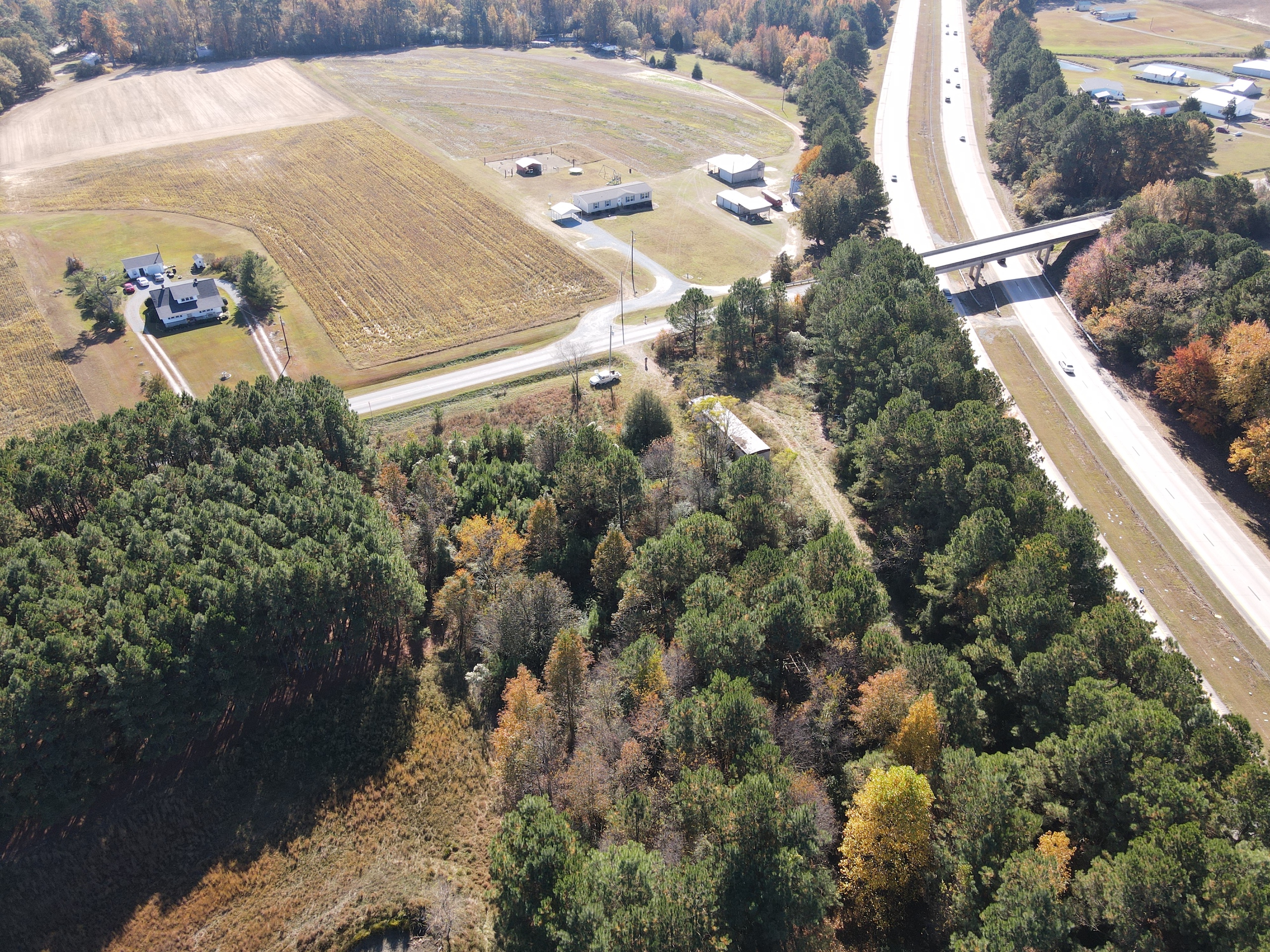 Location, location, location is the right description for this property. 2 parcels are being sold together with easy access to I-40 and I-95. Over 300 feet of road frontage on Elevation Rd provides easy access to this parcel that goes over 2500 feet deep from the highway. There is an old mobile home on the property that was used as a rental at one time by the landowner, but it no longer has any value. However, there is a 3 bedroom septic system that was put in during 2010 and has been used very little. County water and electricity hookups can be found at the road. The back of the property is fully wooded, with a small creek running through the property. The timber is older, with many trees having a diameter of close to 2 feet. To the north of the property is a 50-acre parcel of solid timber owned by a timber company. This is a great property to build your dream home while having space in the back for recreation. The current owner has used it for a gun range while deer and turkey can be found on the property, providing plenty of hunting opportunities.