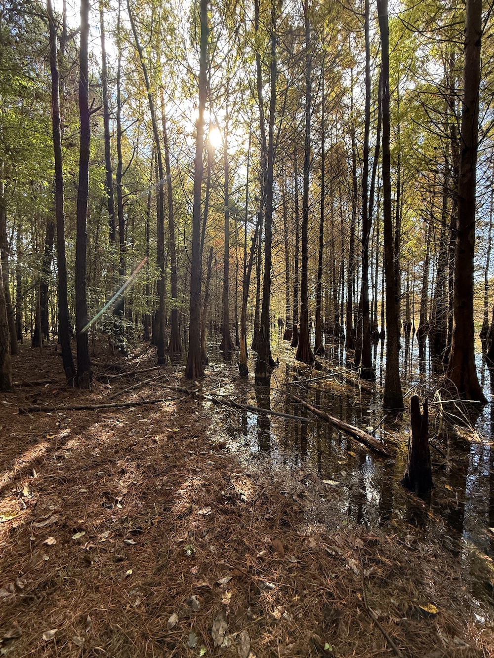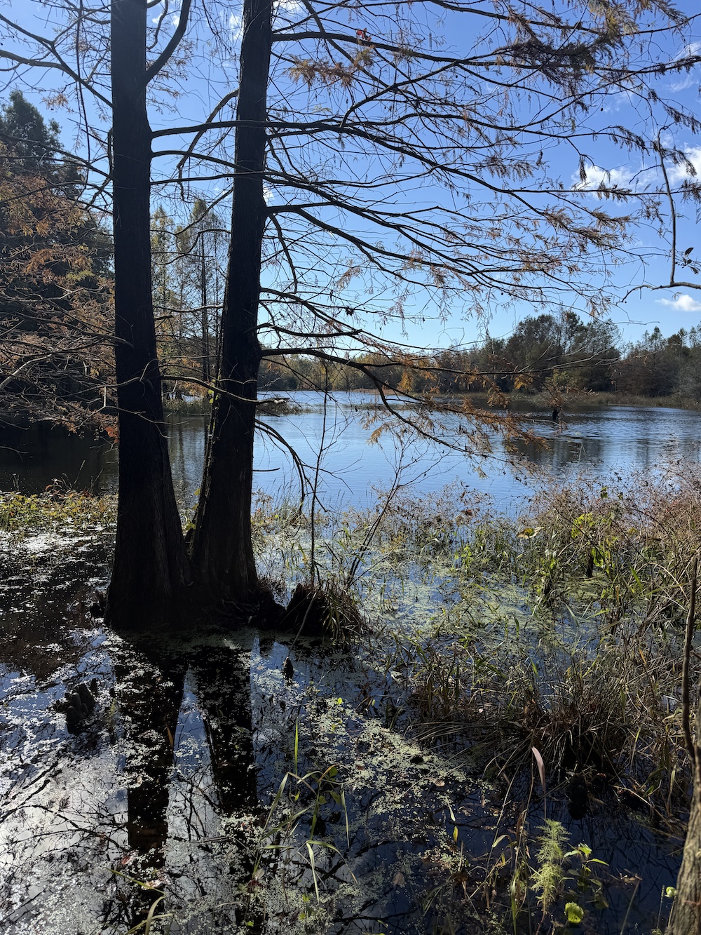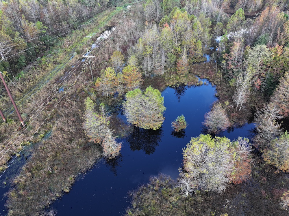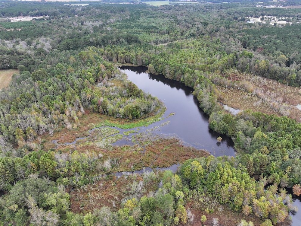 The property features a beautiful 10± acre lake surrounded by towering cypress trees — an ideal setting for duck hunting, fishing, and relaxation. With over 3,000 feet of paved road frontage, access across the property is excellent thanks to a well-maintained internal trail system.