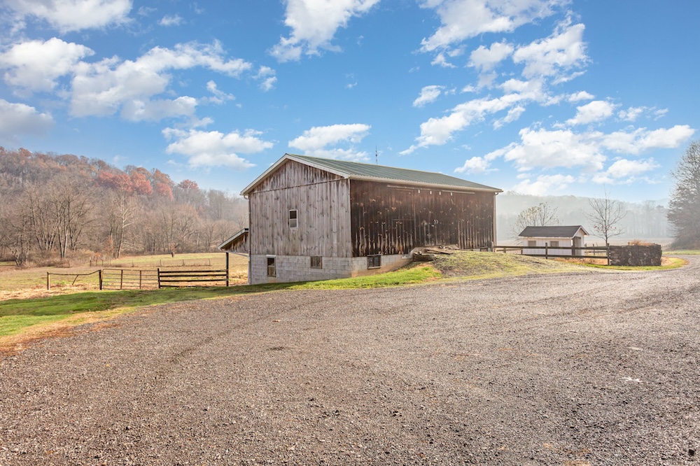 This 40-acre tract offers a rare opportunity to own a secluded farmstead situated off the road, featuring a great mix of usable land and strong hunting grounds. The Amish-built home is supplied with natural spring water, and the property features multiple barns and a shop, providing immediate space for equipment, livestock, or storage.