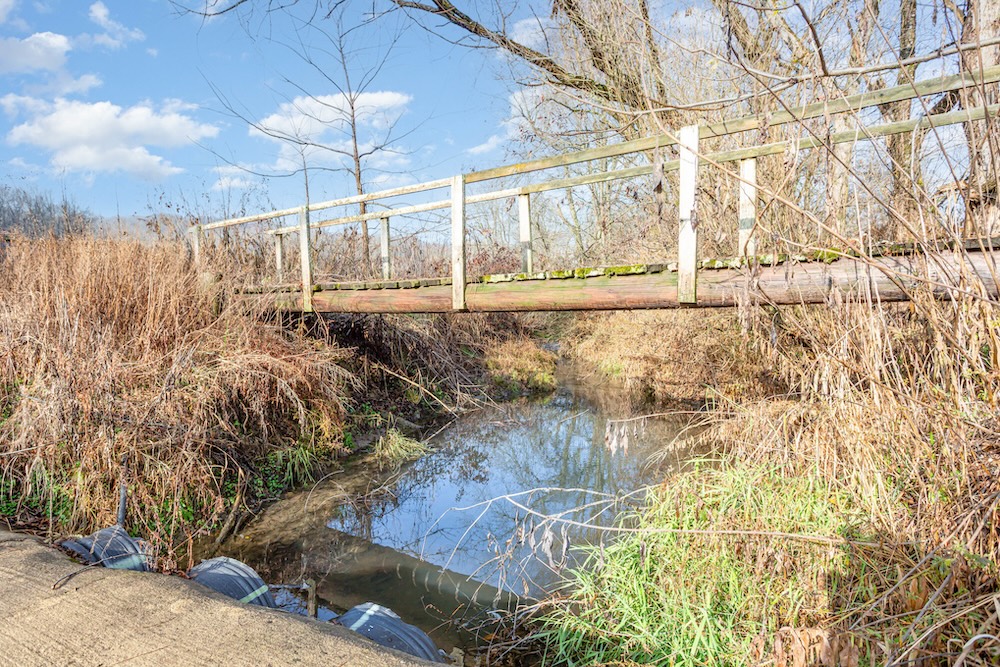 The acreage features a blend of pasture, tillable land, and wooded areas, including stands of marketable timber. A creek winds through the property, creating natural travel routes for wildlife and providing year-round water. The habitat here is exactly what serious hunters look for — bedding cover, open timber, edge, natural browse, and established food plot locations.