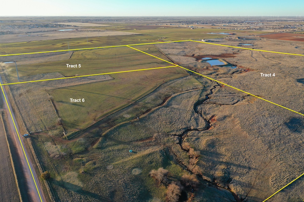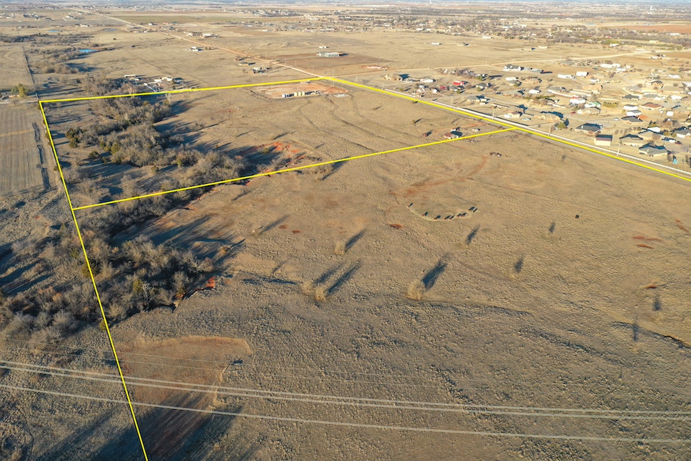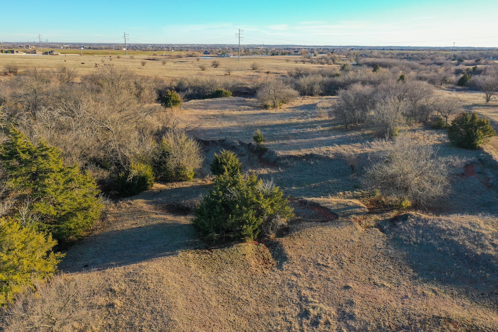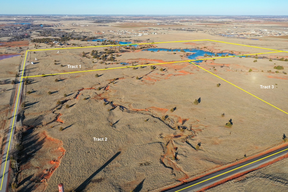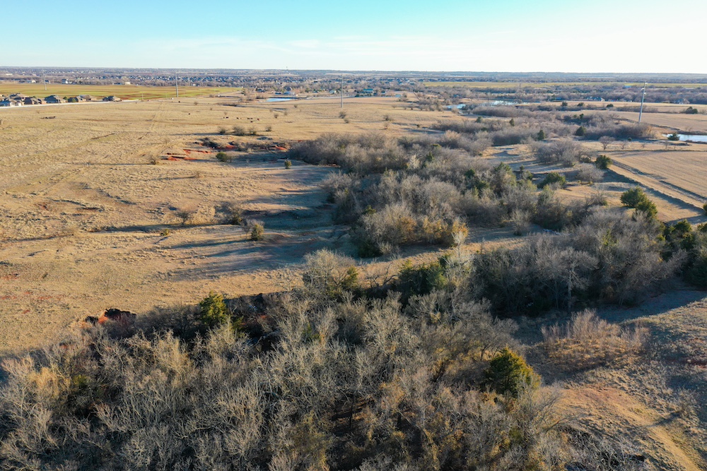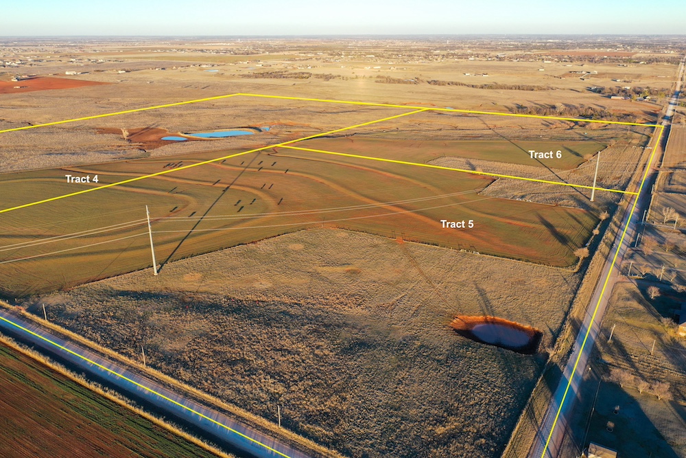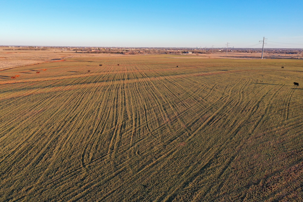 This tract is on the corner of Arrowhead and Mustang Roads. The neighboring properties to the south and southwest have all been developed into residential parcels. There is much to offer here with two boundaries made up of a half mile of public road frontage in a fast-growing area, along with 40± acres currently still in agriculture production making this a blank slate of opportunity. Approximately 26± acres is currently farmland with a wheat crop growing and the remainder is in native grass pasture with a small pond.