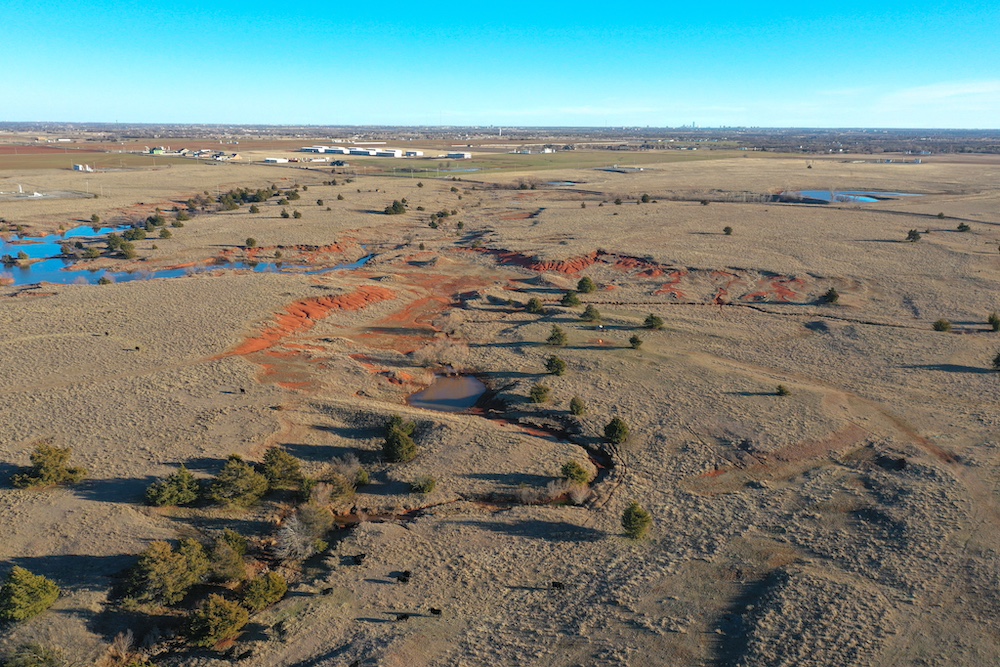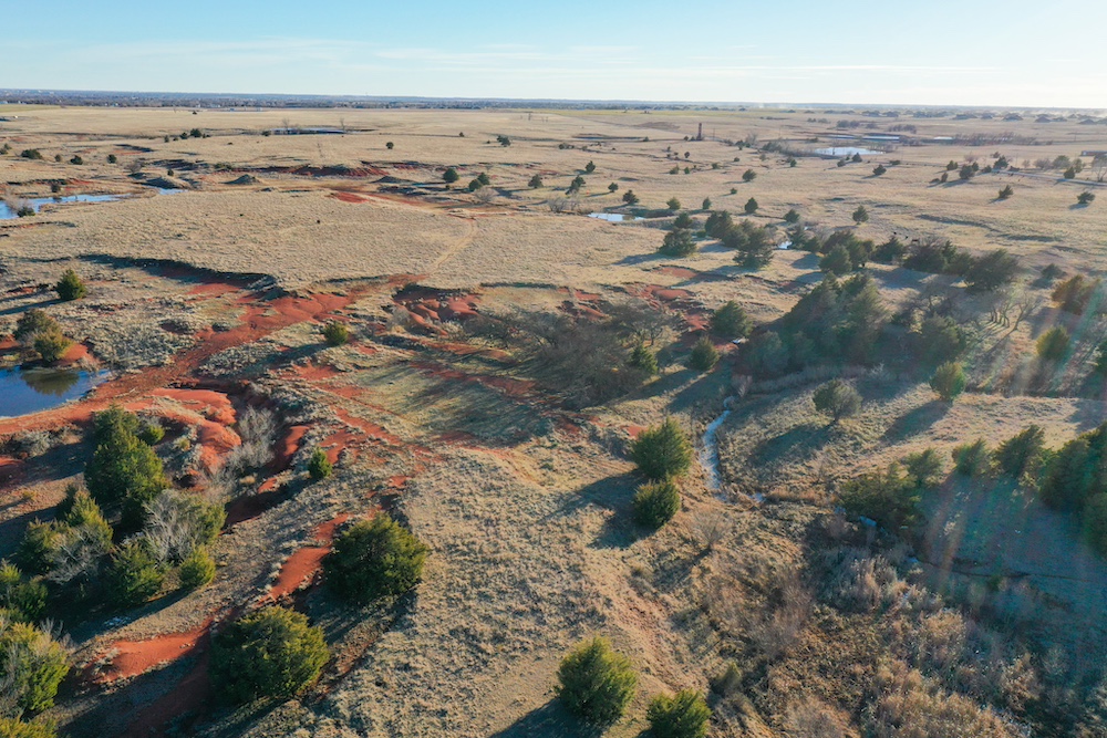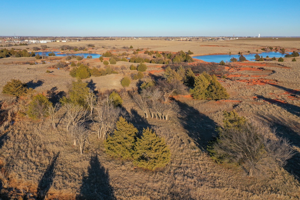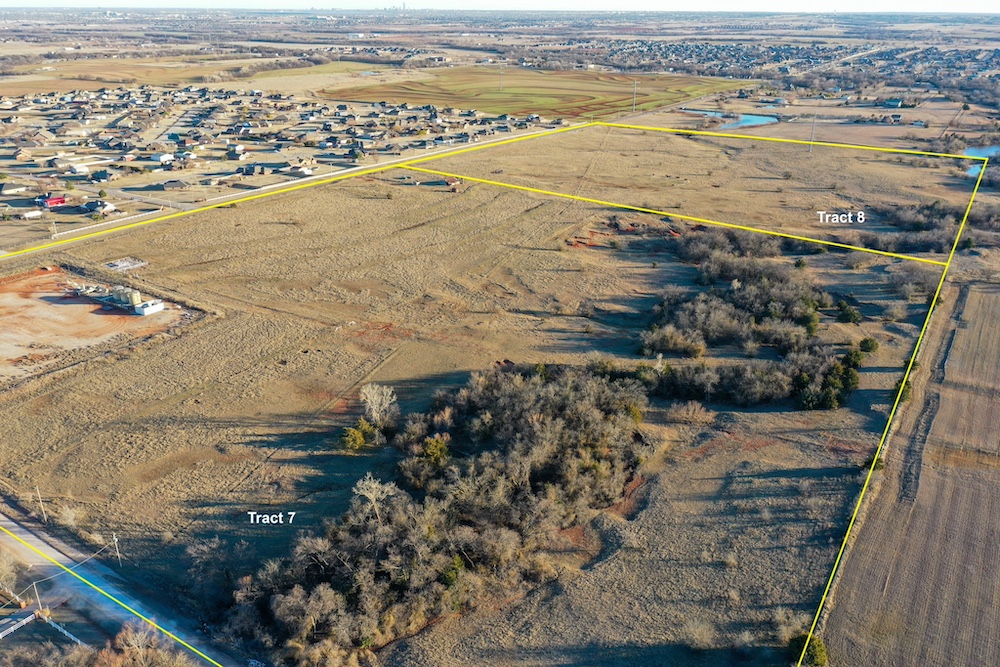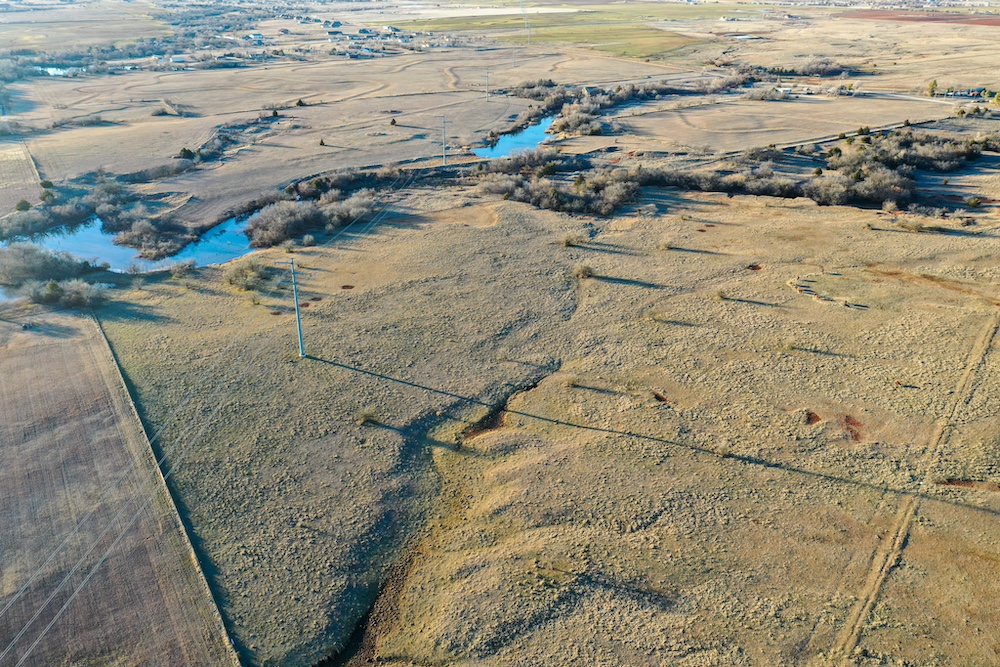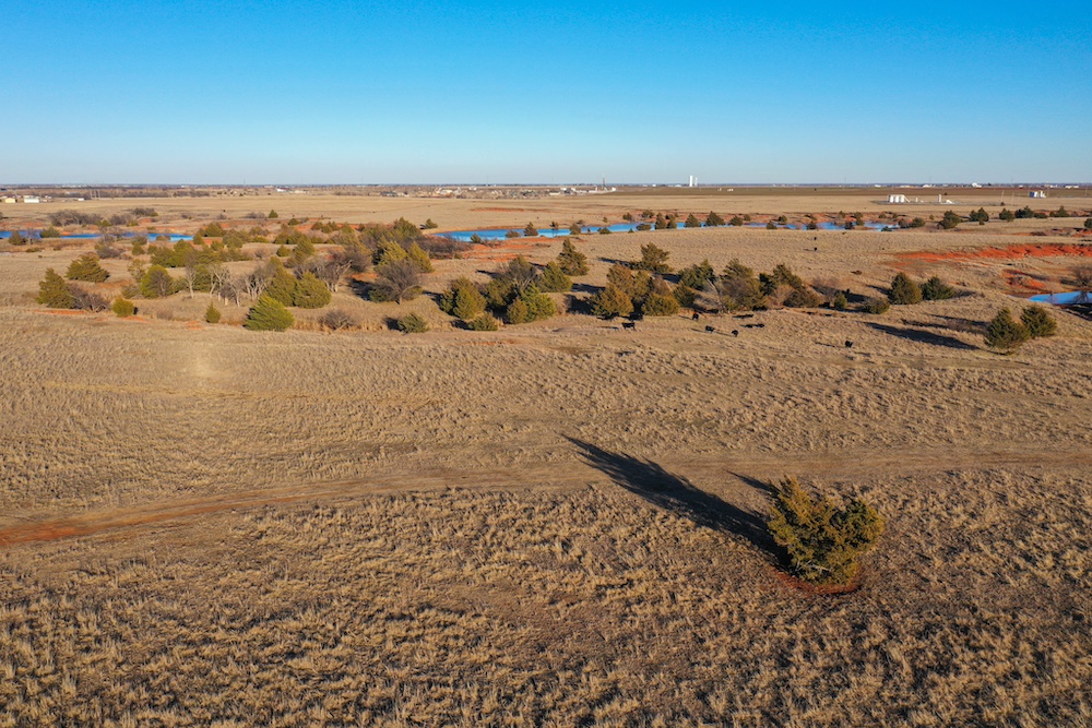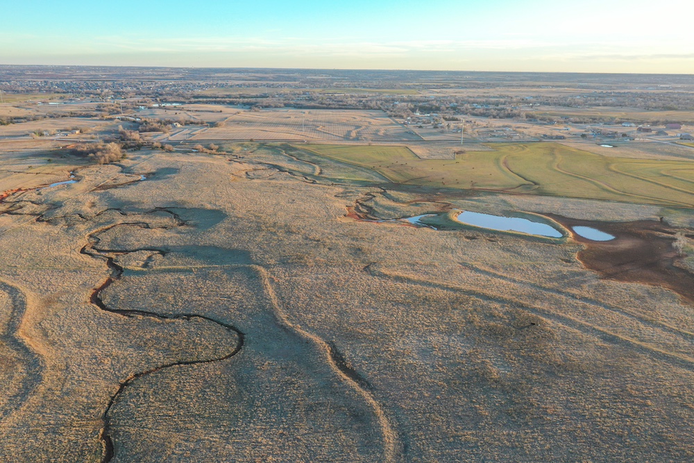 This tract is on the corner of Arrowhead and Mustang Roads. The neighboring properties to the south and southwest have all been developed into residential parcels. There is much to offer here with two boundaries made up of a half mile of public road frontage in a fast-growing area, along with 40± acres currently still in agriculture production making this a blank slate of opportunity. Approximately 26± acres is currently farmland with a wheat crop growing and the remainder is in native grass pasture with a small pond.