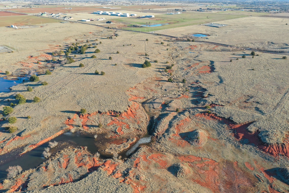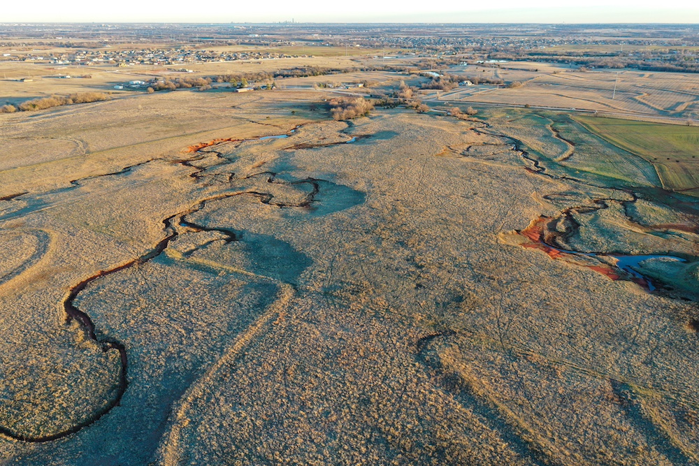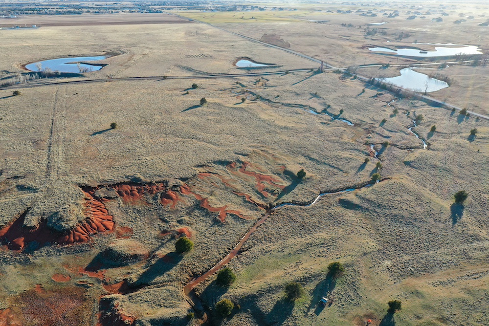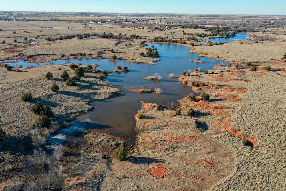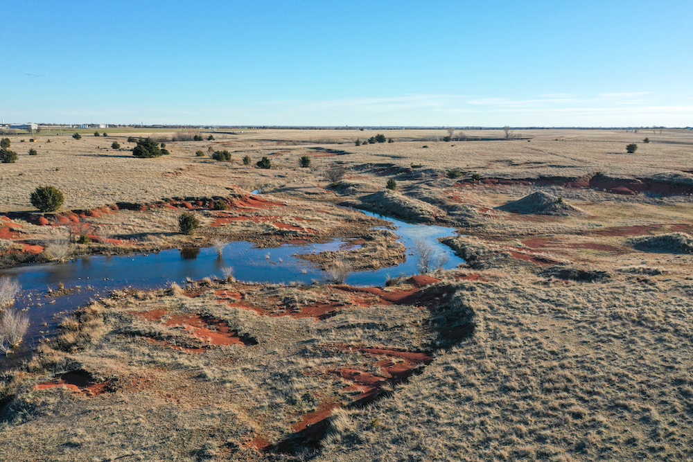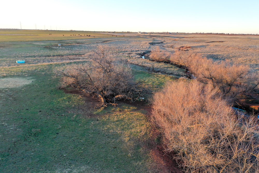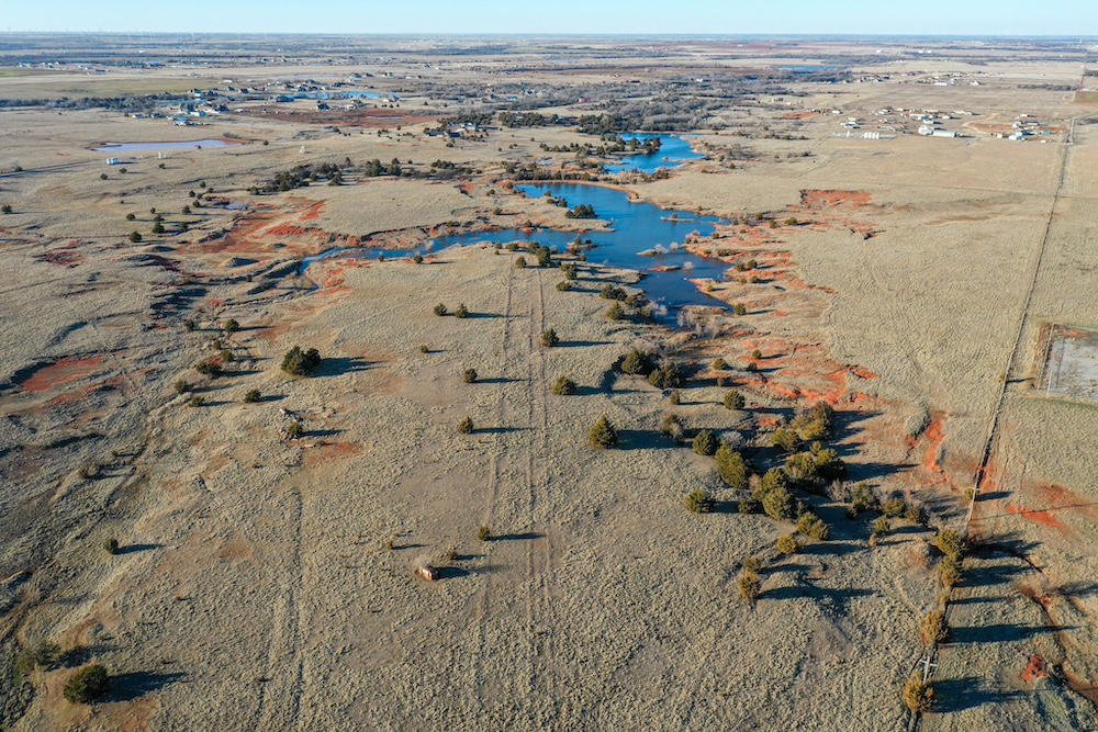 This tract is on the corner of Arrowhead and Mustang Roads. The neighboring properties to the south and southwest have all been developed into residential parcels. There is much to offer here with two boundaries made up of a half mile of public road frontage in a fast-growing area, along with 40± acres currently still in agriculture production making this a blank slate of opportunity. Approximately 26± acres is currently farmland with a wheat crop growing and the remainder is in native grass pasture with a small pond.