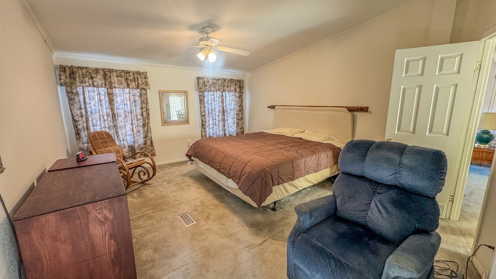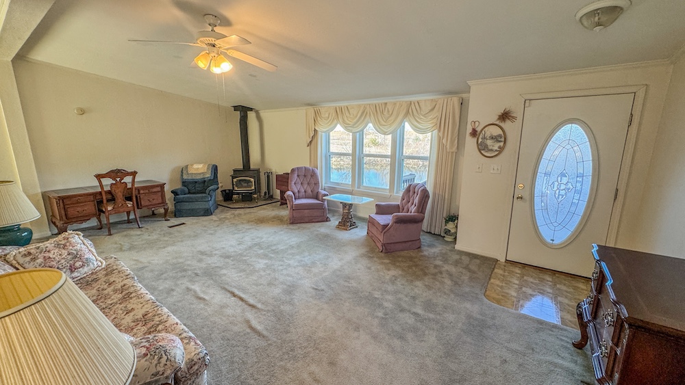 The residence is a 2003 Solitaire manufactured home positioned to overlook the pond, creating a comfortable and scenic living environment. Inside, the home features three bedrooms, two bathrooms, and an open living room with large windows that allow plenty of natural light and a clear view of the water. The layout offers functionality for daily living while maintaining a cozy atmosphere for family gatherings or quiet weekends away from the city. Inside pictures of the home will be provided upon completion of seller moving. An added benefit is a newly installed Cummins generator providing reliable backup power, ensuring the home remains functional during outages. Two shipping containers are located on the property and offer ample storage for tools, equipment, or recreational gear. The land is primarily a mix of open area around the home and wooded areas on the east side, offering versatility for those interested in hunting, trails, or future improvements. The timbered back section provides great cover for wildlife and an ideal setting for hunting setups or nature observation.