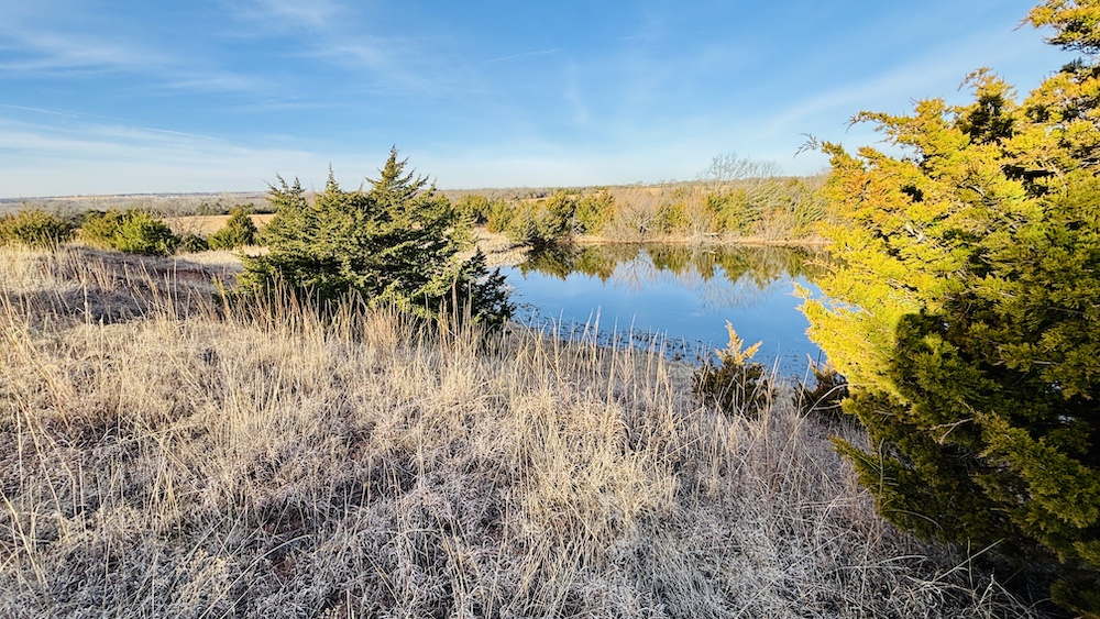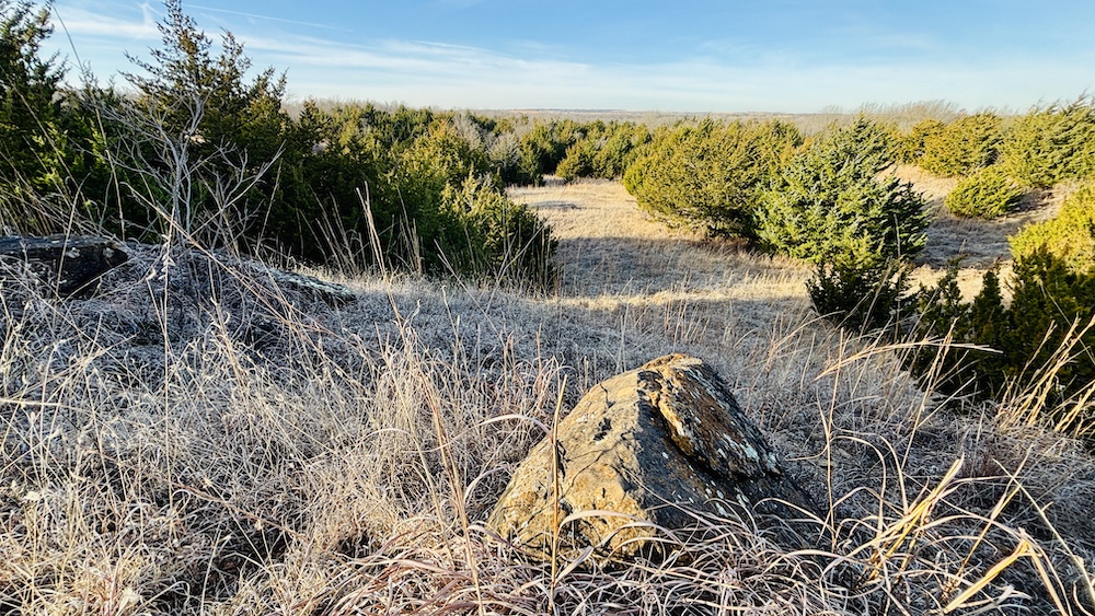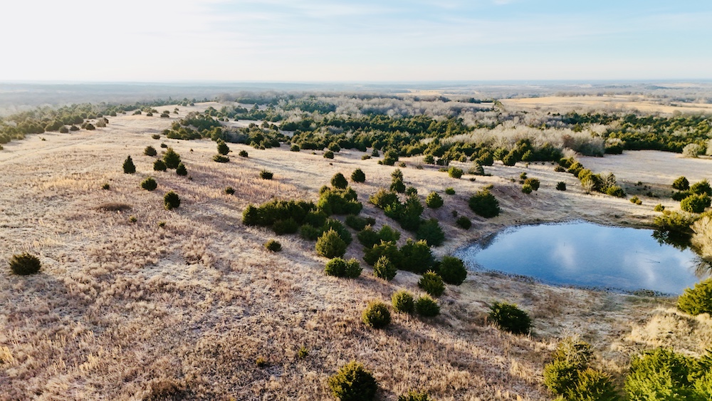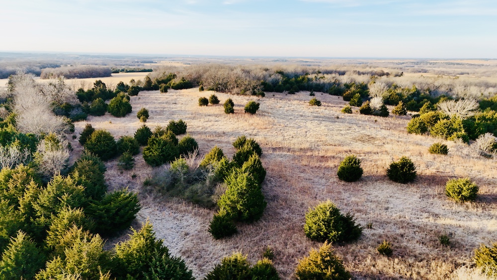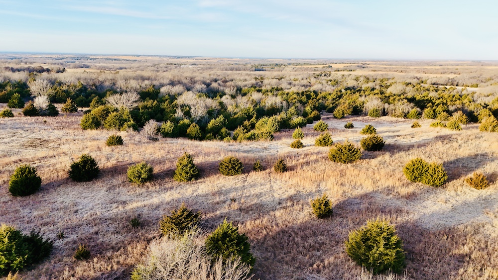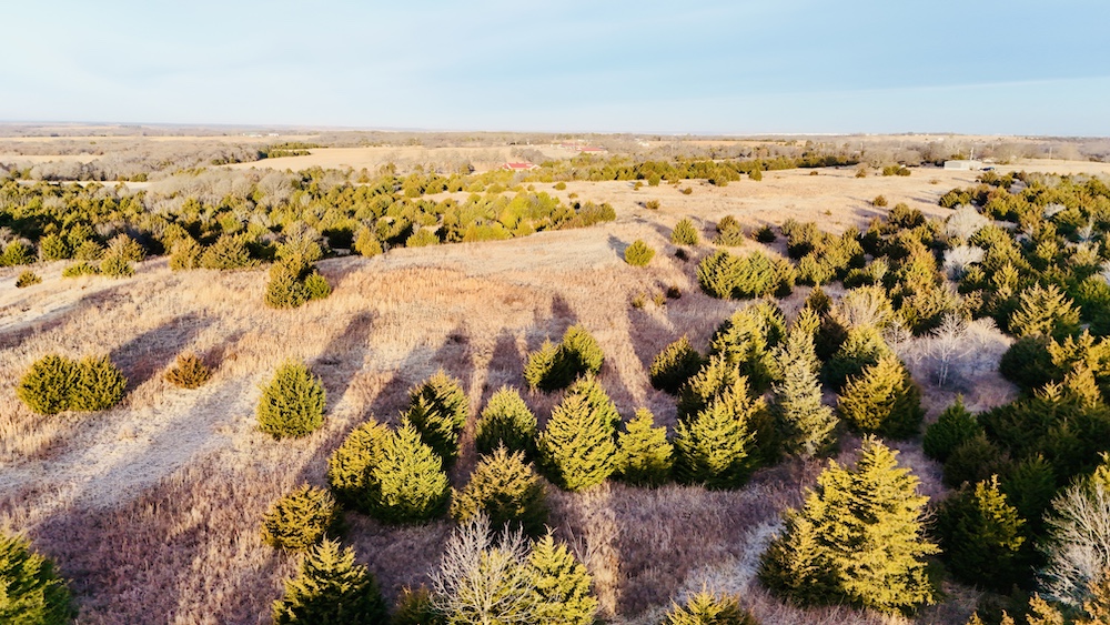 The property also has a history of hay production, with open areas along the ridge and flatter ground suitable for continued agricultural use. Selective cedar removal may allow for expanded production. A water well is located on the property, and electricity is available nearby, offering options for future improvements such as a residence, shop, or agricultural structures, subject to local regulations. This combination of access, terrain, utilities, and multi-use capability supports a variety of ownership objectives.