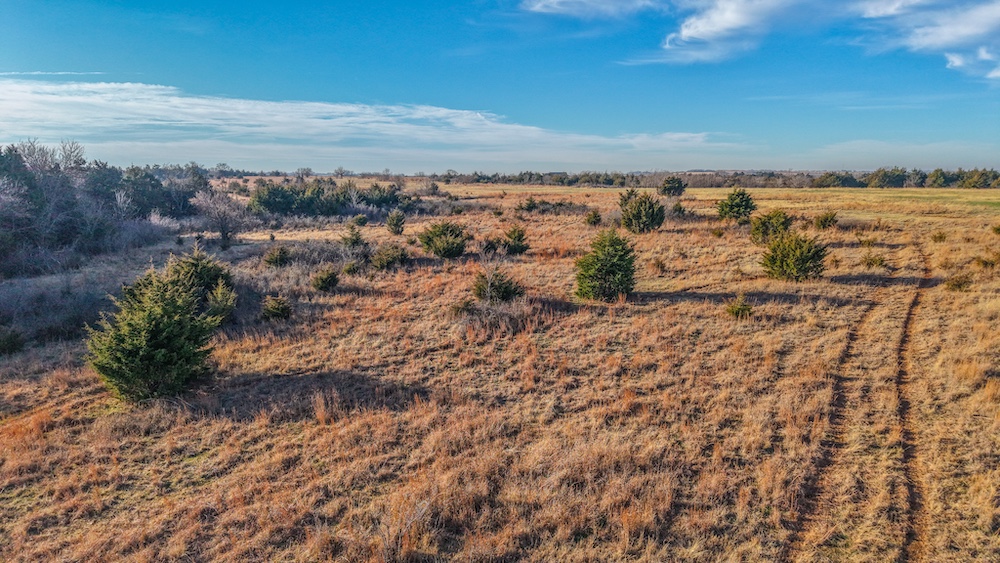 The land features rolling topography with a notable high point near the center of the property. This elevated area offers extended views of the surrounding countryside and may serve as a potential homesite location with breathtaking views. The terrain supports a variety of uses, including residential, agricultural, and recreational applications. The open portions of the tract provide space that may be suitable for a smaller-scale cattle operation or equestrian use. Selective cedar removal could improve grass production and expand usable pasture area over time as well.