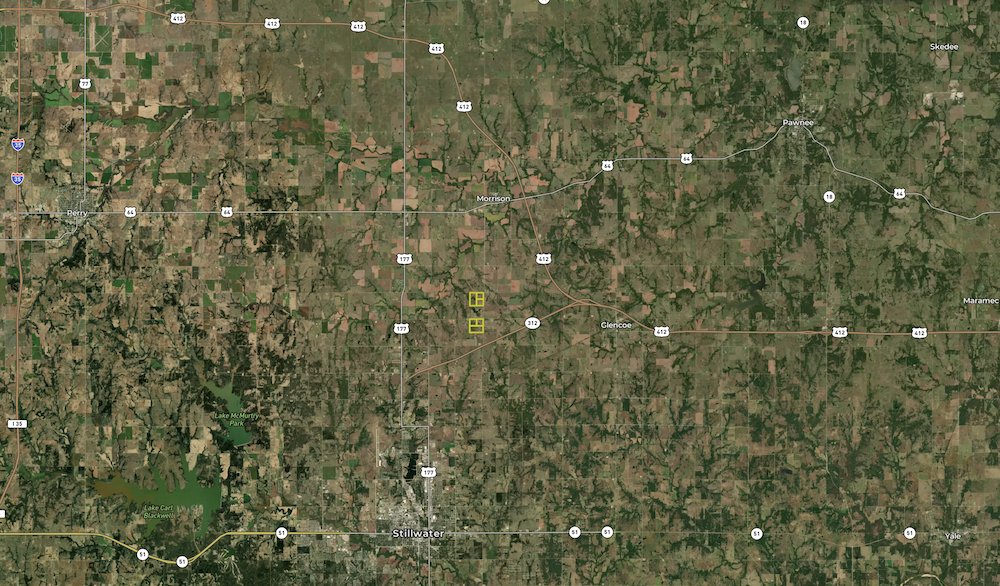 This 40± acre property in northern Payne County is located between Stillwater and Morrison, offering a rural setting with convenient access to area highways and nearby communities. The tract features county road frontage with electric service and fiber internet available at the road, providing practical infrastructure access for future improvements. The property is situated approximately 2.5 miles from Highway 177, creating a direct route to Stillwater to the south and Morrison and Ponca City to the north. Highway 412 is also accessible, providing a connection toward Tulsa and other parts of northeast Oklahoma.