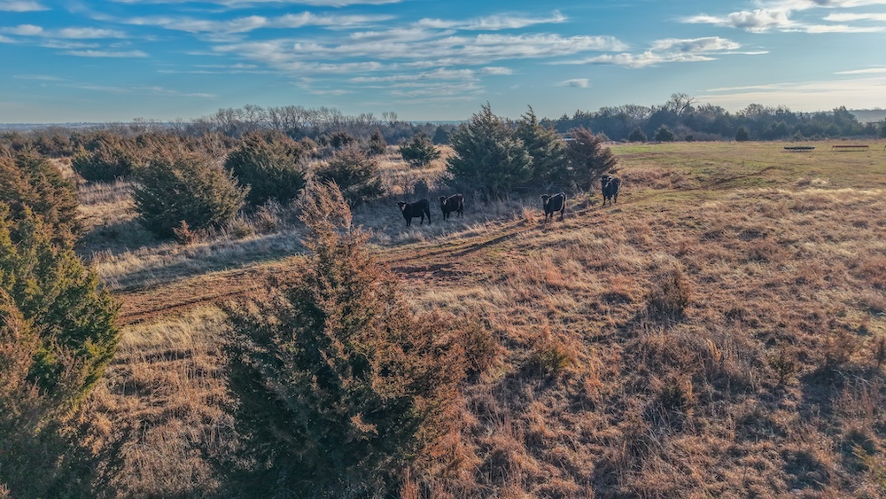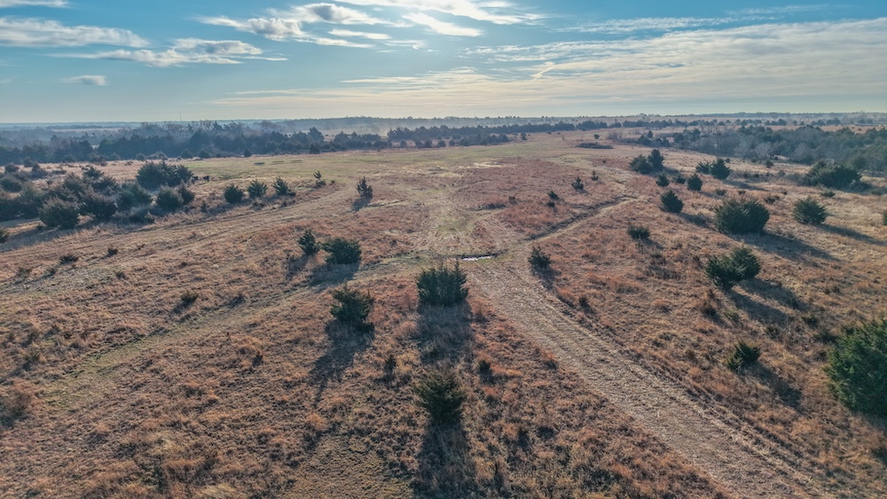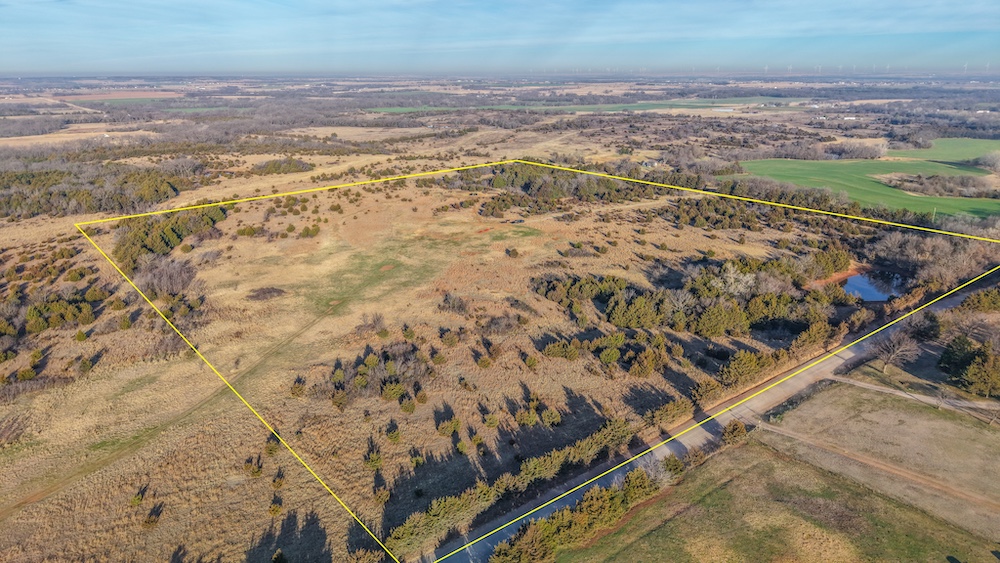 A pond located on the property provides a consistent water source for livestock and wildlife. The combination of open ground, water, and scattered cover supports recreational use and outdoor activities common to north central Oklahoma. The layout of the land allows flexibility for fencing, cross fencing, grazing rotation, or additional agricultural improvements based on a buyer’s management plan. The mix of terrain and water features contributes to both practical agricultural use and general land stewardship opportunities.