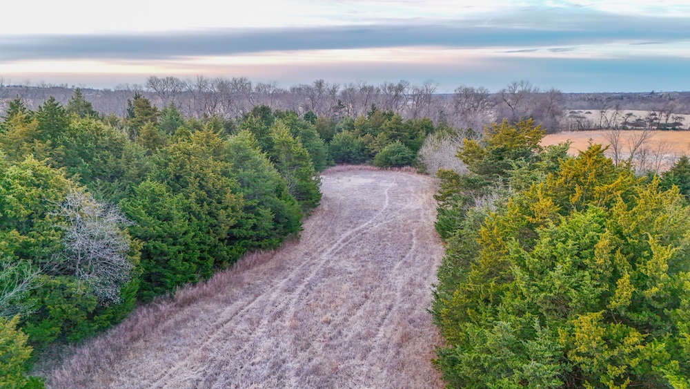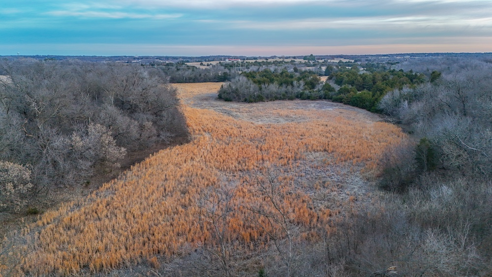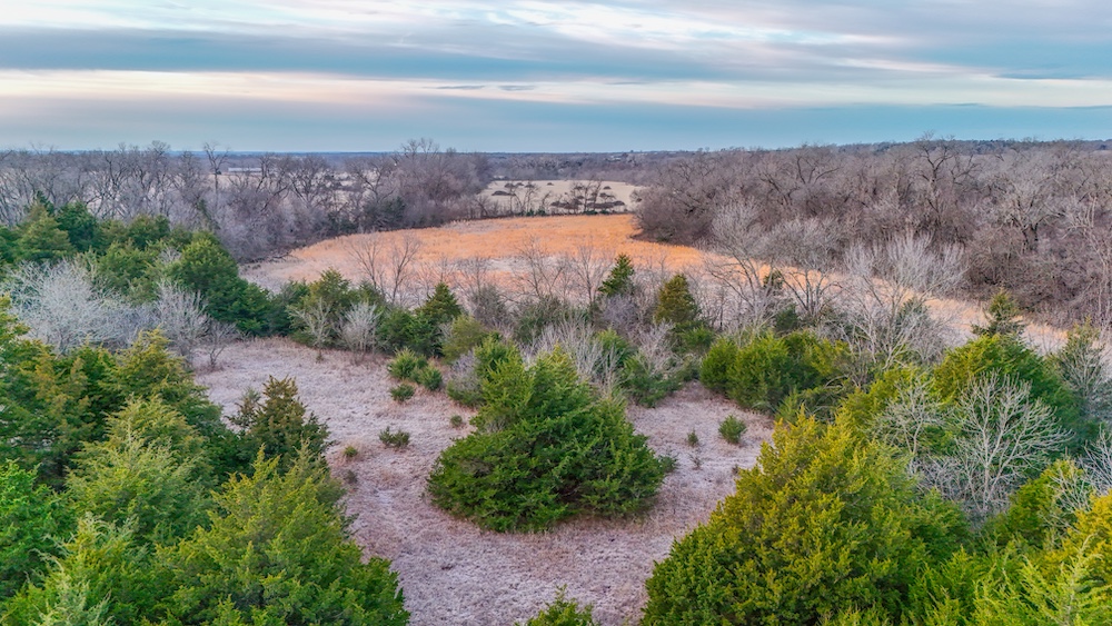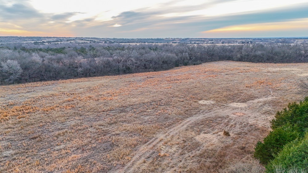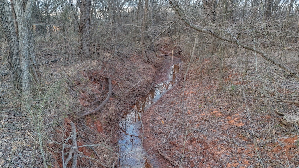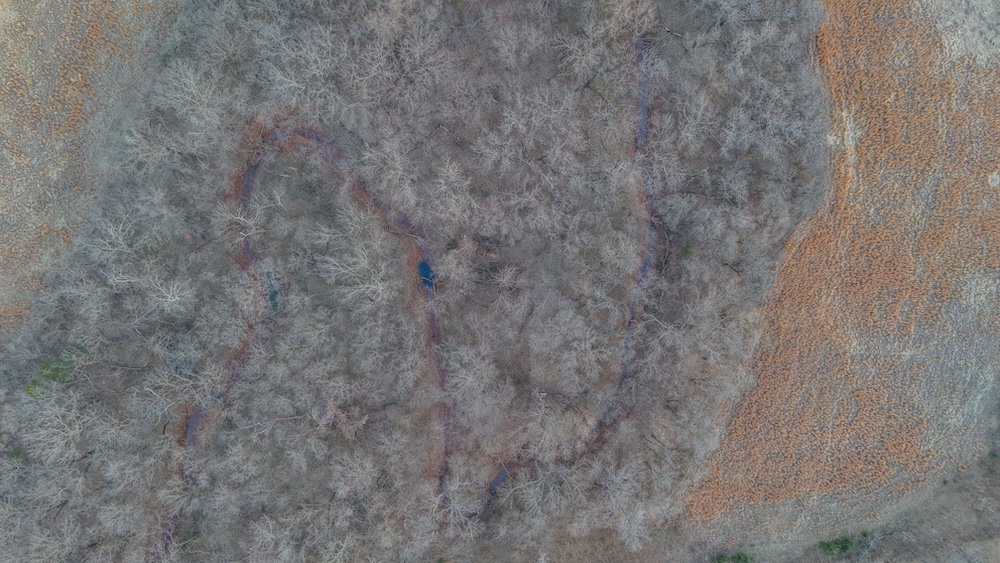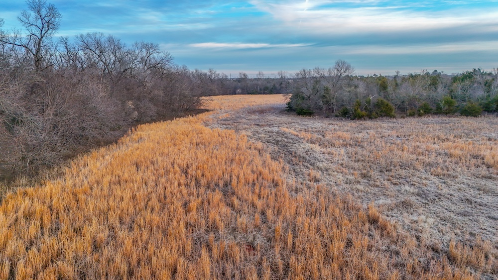 A live creek also runs through the property and provides a year-round water source for wildlife. This natural feature helps concentrate game movement and adds to the overall character of the land. The timbered portions provide cover and travel corridors, while the open areas offer space that could be used for livestock, hay production, or wildlife food plots. The transition areas between timber and open ground create natural edge habitat and are ideal locations for observing wildlife throughout the year.