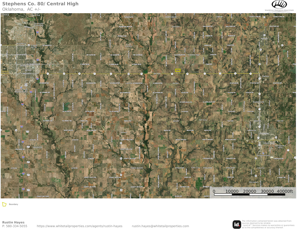 Just a quarter of a mile off Highway 7, this property offers the perfect blend of convenience and country living. With blacktop road frontage and Stephens County RWD#5 water line along 9-Mile Road, as well as electric to the northwest corner of the property, access to power and water are both possibilities. This property is located in the Central High School district and is only 2.5 miles from the school. The land features flat terrain with minimal contour, making it ideal for building. Perfectly situated halfway between Duncan and Lawton, this tract provides quick access to town while still giving you plenty of space and privacy. Whether you’re looking to build your dream home, run some cattle outside of town, or just invest in land with great potential, this property checks all the boxes.