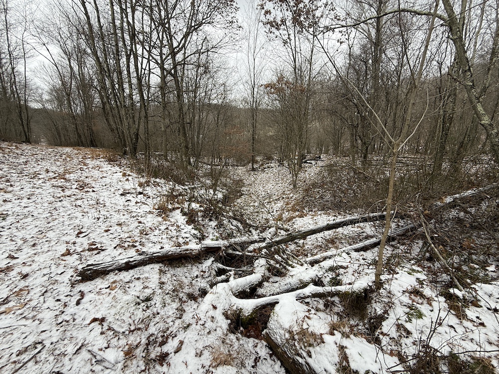 The land is predominantly wooded with marketable timber and is bordered by agricultural ground, creating an ideal habitat for wildlife. An established internal trail system, including a gas well road and skidder trails, provides easy access throughout the property for hiking, ATV riding or hunting. A seasonal creek adds a natural water source and enhances wildlife activity.