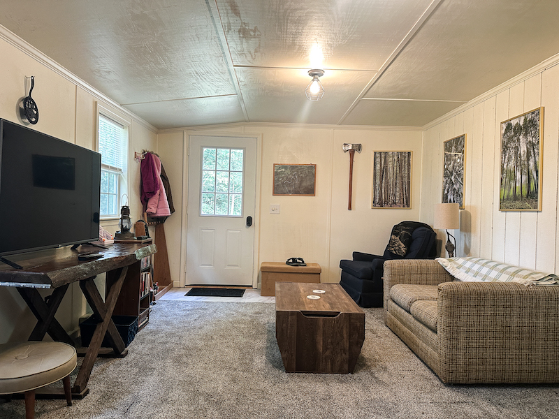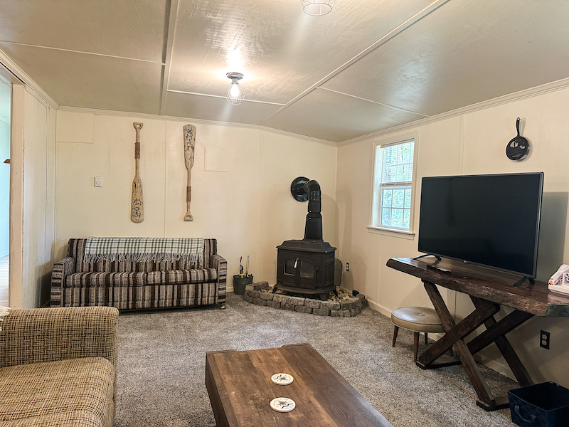 This rustic ±780 sqft cabin is set on ±31 wooded acres in Union County, offering a private retreat surrounded by outdoor recreation. The cabin features two bedrooms and one full bathroom and has seen significant updates over the past year, including a new metal roof, fresh exterior paint, a welcoming front porch, a new sliding glass back door, and renovations to the living room, kitchen, and bathroom. Electric baseboard heat & a wood stove provide heat, and two window A/C units make it an ideal space for year-round use.