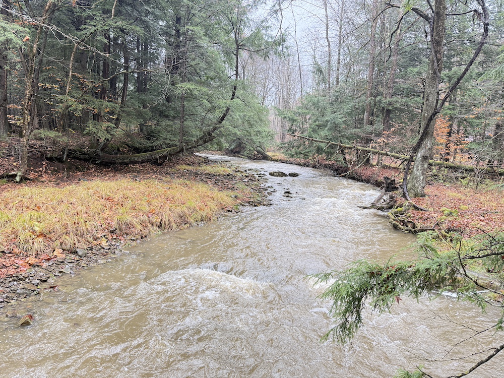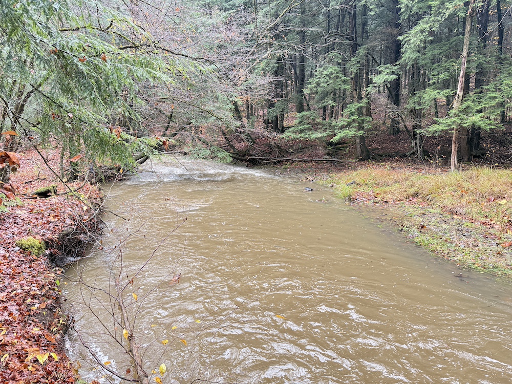 Tucked along a quiet hillside, this scenic property showcases a beautiful mix of mature hardwoods and towering hemlocks. Irvine Run, a native trout stream, winds gracefully across the land, adding both natural beauty and recreational value. The timber stand offers return on investment potential, with quality hardwood that could provide current or future income.