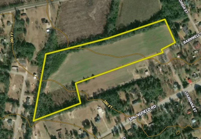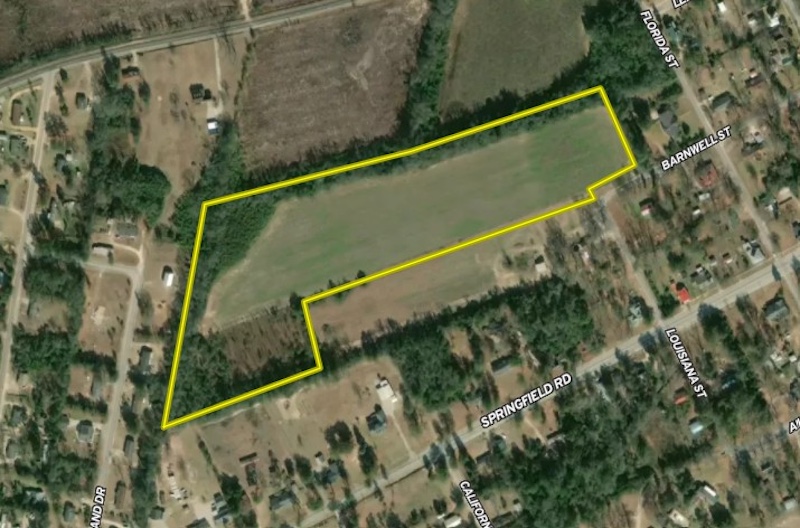 This 19.15-acre property is located at the corner of Barnwell Street and Louisiana Street in Downtown Springfield, Orangeburg County, South Carolina. The parcel includes a mix of land uses and terrain types. A substantial portion of the total acreage, approximately 11.3 acres, is tillable ground. The tillable acreage may be subdivided and supports a range of potential land-use options, including the development of residential, commercial, or mixed-use parcels, subject to local planning and permitting. The property has established street frontage on both Barnwell Street and Louisiana Street, providing direct access to the site. City water and sewer services are available at the street and may be extended to serve future development. Utility availability reduces the need for off-site infrastructure extensions, subject to utility provider requirements and local approvals. Topography on the property consists of generally level to gently sloping terrain typical of the Downtown Springfield area. The tillable acreage has historically been maintained in agricultural production. The remaining acreage transitions from open ground to areas suitable for infrastructure, buildings, parking or other improvements. Portions of the site that are not tillable may support stormwater management, green space or buffer areas as part of a site plan. Springfield is located in western Orangeburg County. Springfield is a small town with local street networks and access to state roads, including South Carolina Highway 4, which provides regional connectivity. The property’s proximity to town services and infrastructure supports multiple land use concepts subject to zoning, ordinances and permitting by appropriate municipal and county authorities. Orangeburg is approximately 27 miles to the east by highway, providing broader access to retail, services, transportation and employment centers. Nearby towns include Salley, approximately 5 miles to the north, Neeses, approximately 9 miles to the east, Norway, approximately 9 miles to the east southeast and Blackville, about 9 miles to the south. Additional communities within a roughly 10 to 15 mile radius include Perry, Elko, Williston and Wagener. Many of these communities provide access to schools, local businesses and services that contribute to the regional network of towns surrounding Springfield. Given its location within Downtown Springfield and connectivity to local roads, this 19.15-acre property is well-positioned for a range of potential uses. The 11.3 acres of tillable ground offer open land for development, while the remaining acreage provides additional flexibility for infrastructure improvements. Prospective buyers should consult local zoning ordinances, land use plans, and permitting authorities to determine allowable uses and any requirements for development. The availability of city water and sewer at the street can facilitate future improvements, subject to confirmation from utility providers and compliance with permitting processes. This property also may appeal to those seeking acreage close to small community amenities and local road networks for recreational, agricultural or investment purposes. Its mix of open, unencumbered acreage creates a site that can accommodate various land-use strategies, with access to essential utilities and regional road connections. Documentation related to property boundaries, utility availability, and other due diligence information should be reviewed by prospective purchasers to inform planning and decision-making.