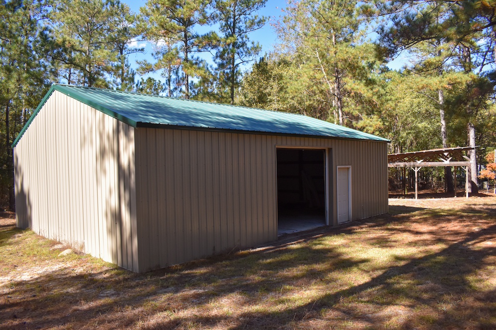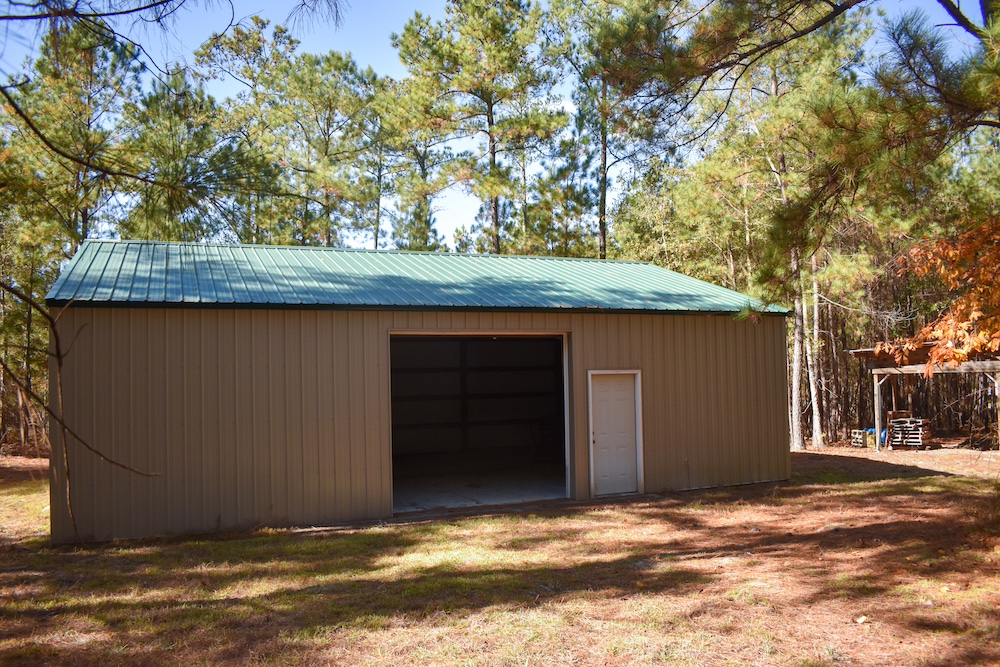 Utilities are already in place, including a well, power, and two septic tanks. A new metal building with a concrete floor and a partially finished bathroom offers potential for storage, a workshop, or a base camp. A meter and final septic hookups can be added as needed.