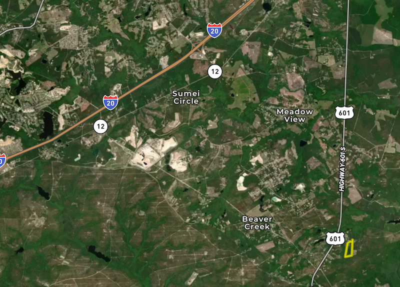 The property’s layout and open space make it a strong candidate for a mini-farm or hobby agricultural setup. The surrounding area features multiple similar small farms and rural homesteads, reflecting a pattern of light agricultural and recreational land use along the US 601 corridor.