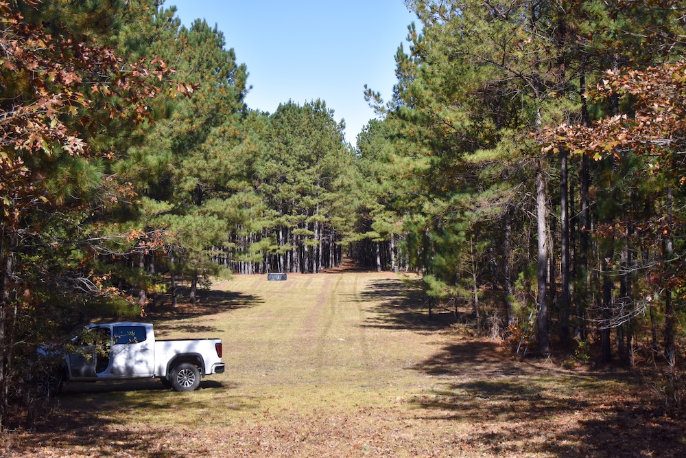 An improved driveway and internal trail system make it easy to access all parts of the property by vehicle or on foot. The land supports abundant whitetail deer, wild turkey, and hogs, and several existing tree stands are positioned across the acreage.
