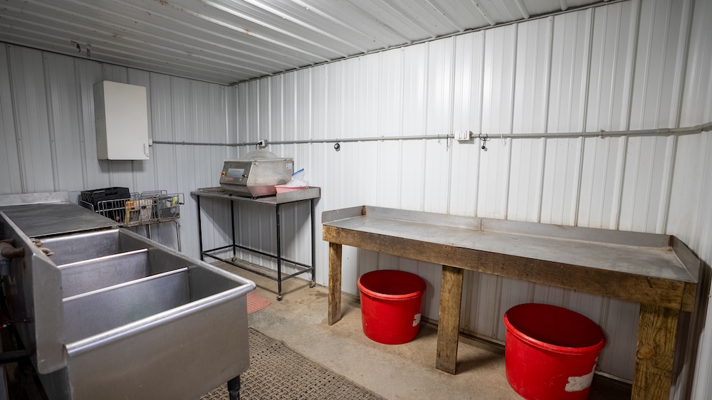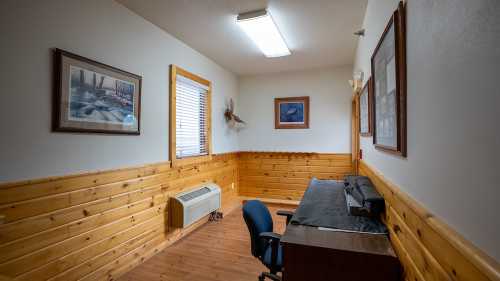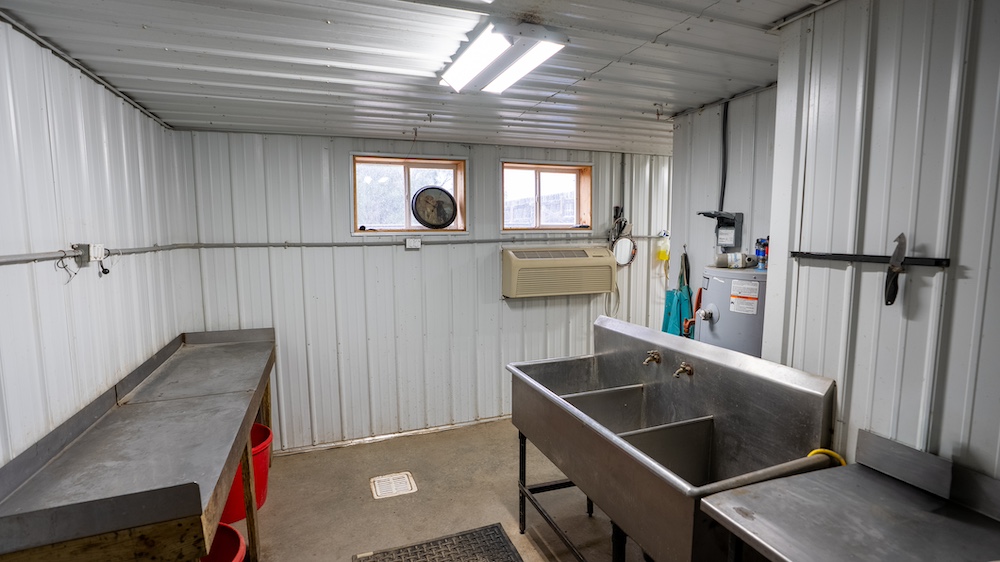 Outside the lodge, the property offers a variety of supporting facilities. A 36' x 50' metal shop and a 50' x 86' shop provide space for maintenance, equipment storage, and processing. The larger shop includes a bird cleaning room and freezer room, fully outfitted for efficient harvest handling during the hunting season.