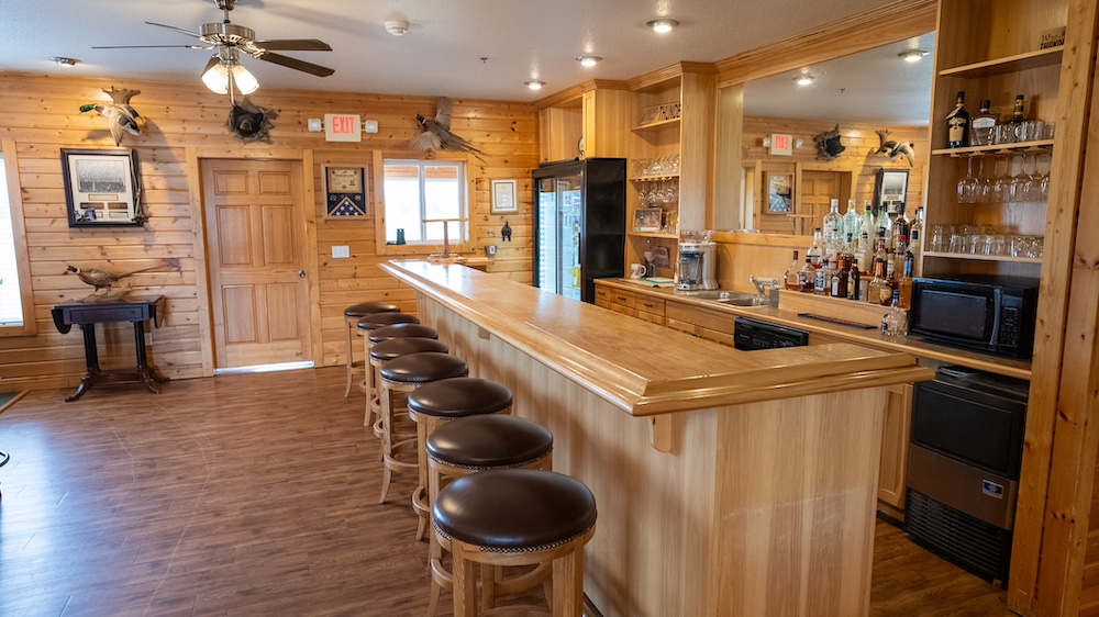 Additional amenities include a trap shooting range for guests to warm up or practice shooting skills and a large kennel area designed for housing and training bird dogs. The kennel layout offers convenience and easy access to both the hunting grounds and the lodge facilities.