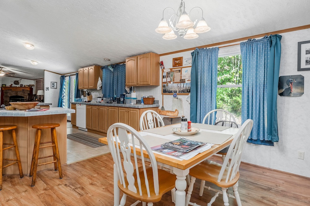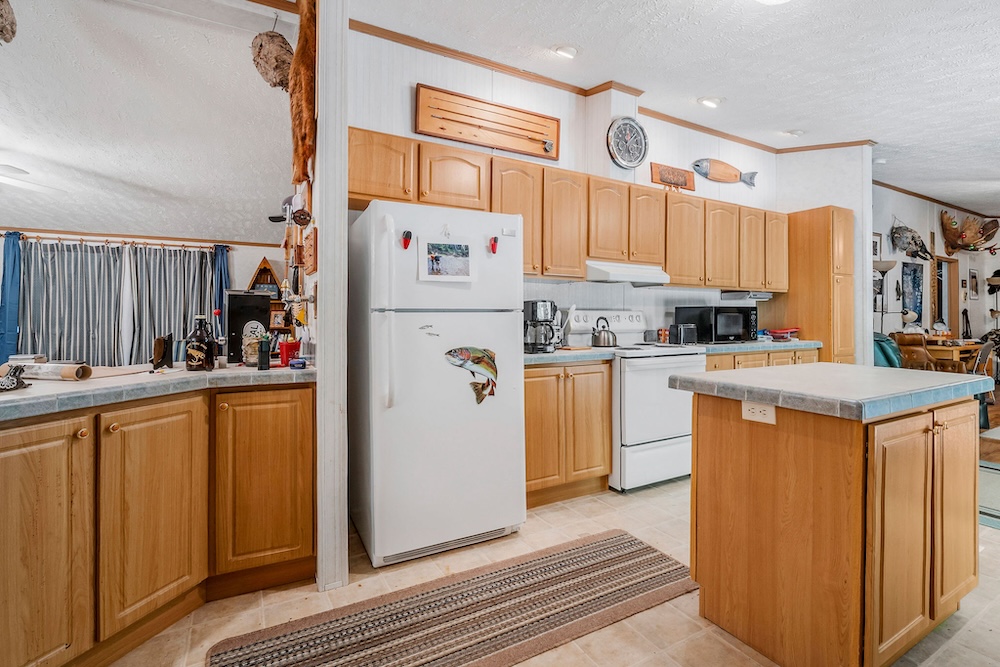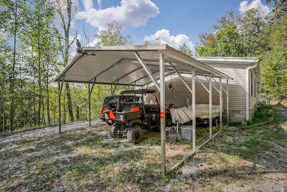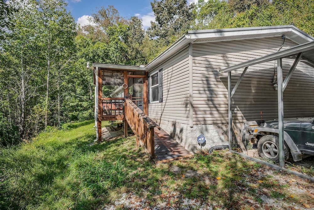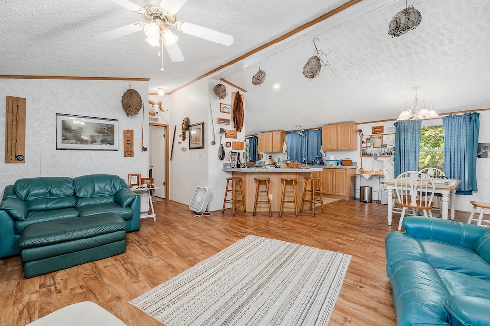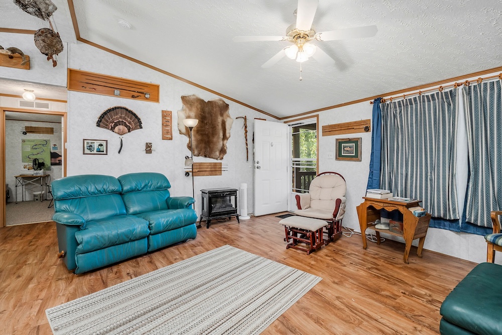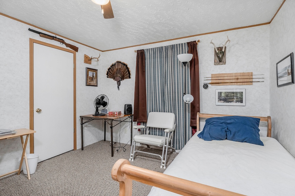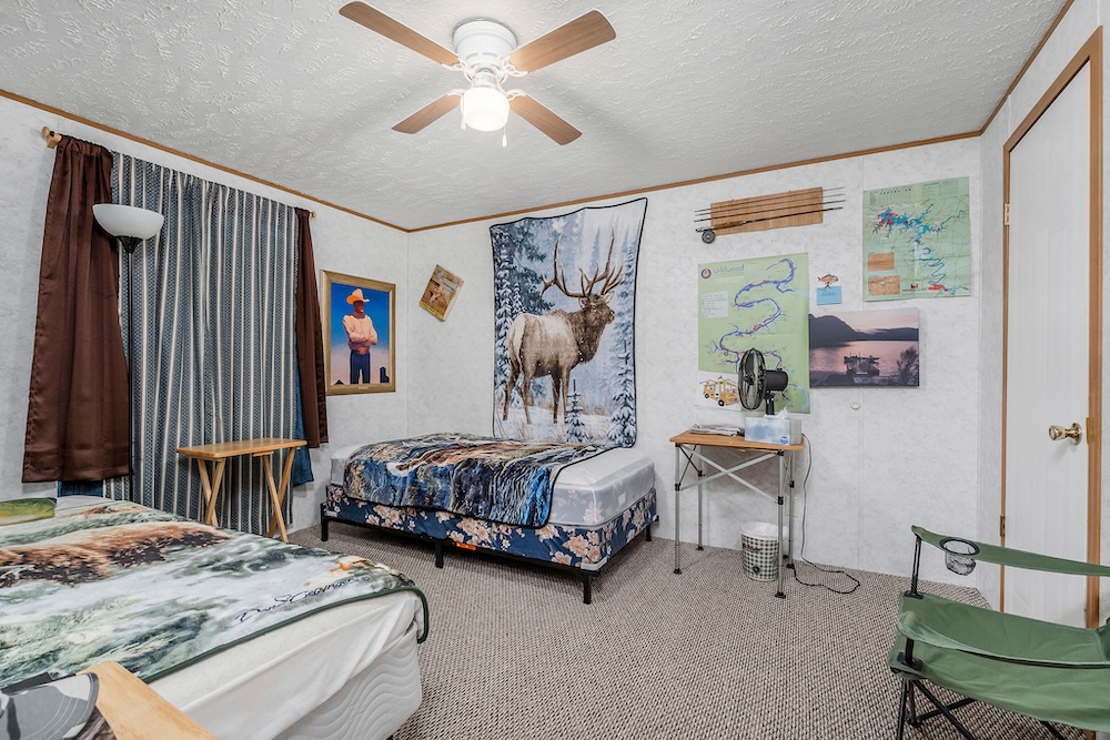 A well-maintained 2002 double-wide mobile home is a comfortable and inviting basecamp, featuring 3 bedrooms and 2 full baths. It’s in excellent condition, offering all the comforts of home while surrounded by nature. Enjoy peaceful mornings on the screened-in front porch overlooking the woods or cozy evenings after a day spent fishing and exploring. It has a double carport as well as a small shop with a lean-to roof for a tractor. ( Tractor, fishing boat, 4-wheeler, and Jeep can be purchased separately. )