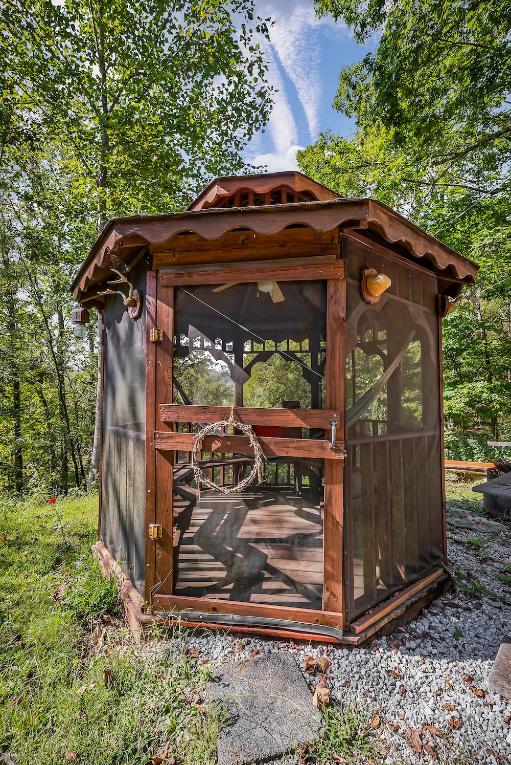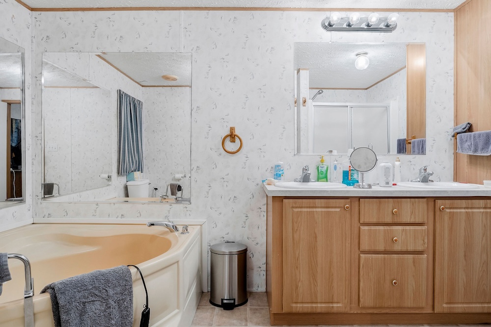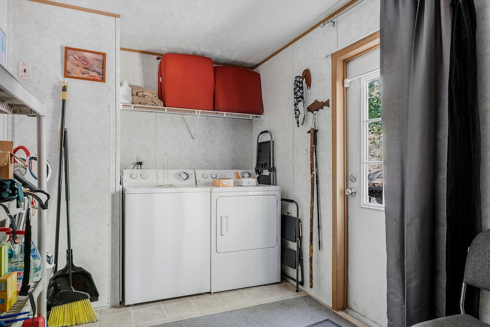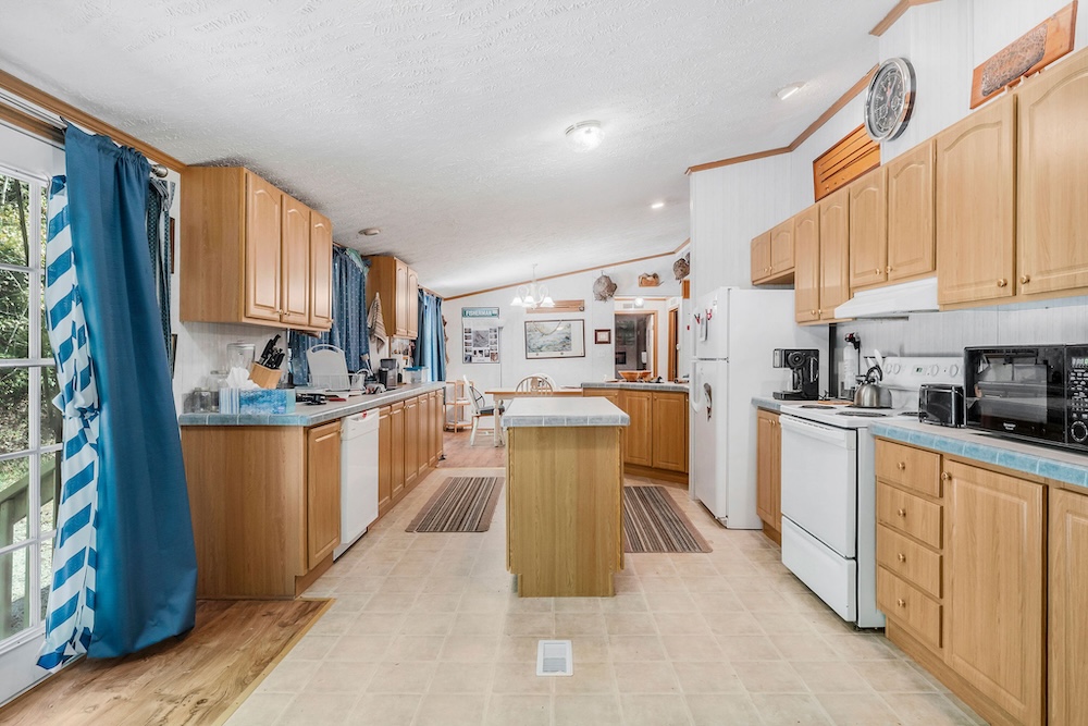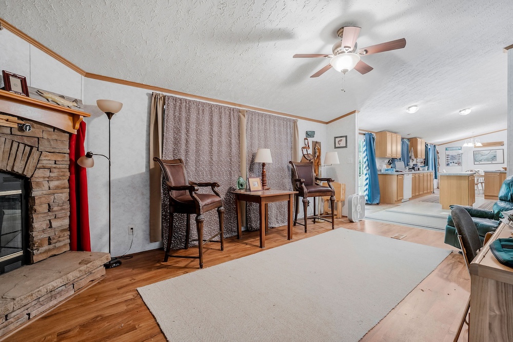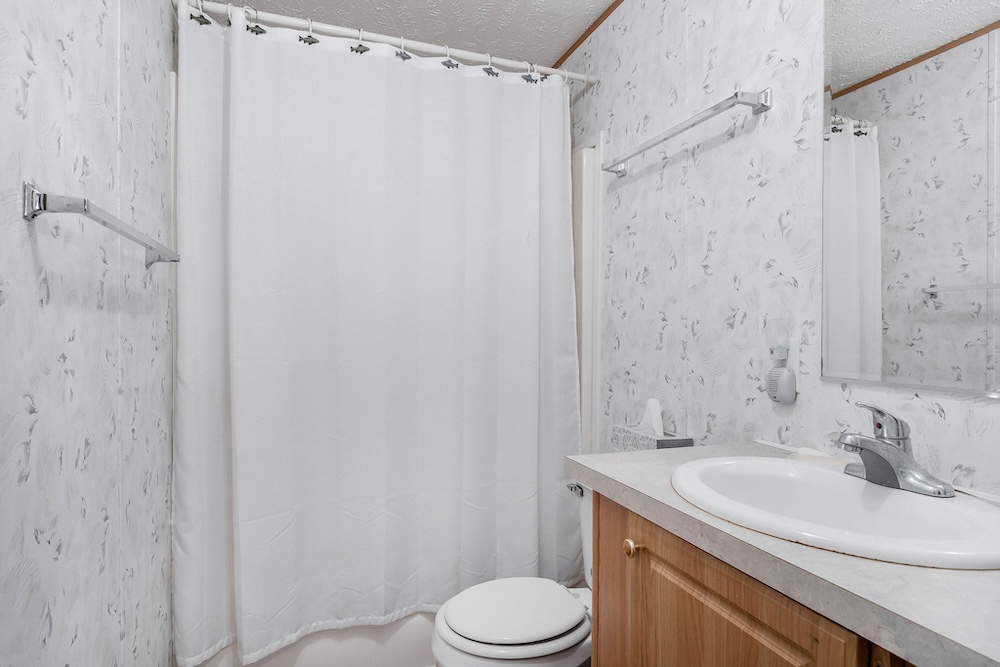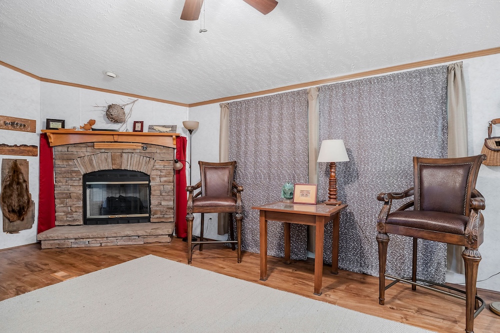 A well-maintained 2002 double-wide mobile home is a comfortable and inviting basecamp, featuring 3 bedrooms and 2 full baths. It’s in excellent condition, offering all the comforts of home while surrounded by nature. Enjoy peaceful mornings on the screened-in front porch overlooking the woods or cozy evenings after a day spent fishing and exploring. It has a double carport as well as a small shop with a lean-to roof for a tractor. ( Tractor, fishing boat, 4-wheeler, and Jeep can be purchased separately. )