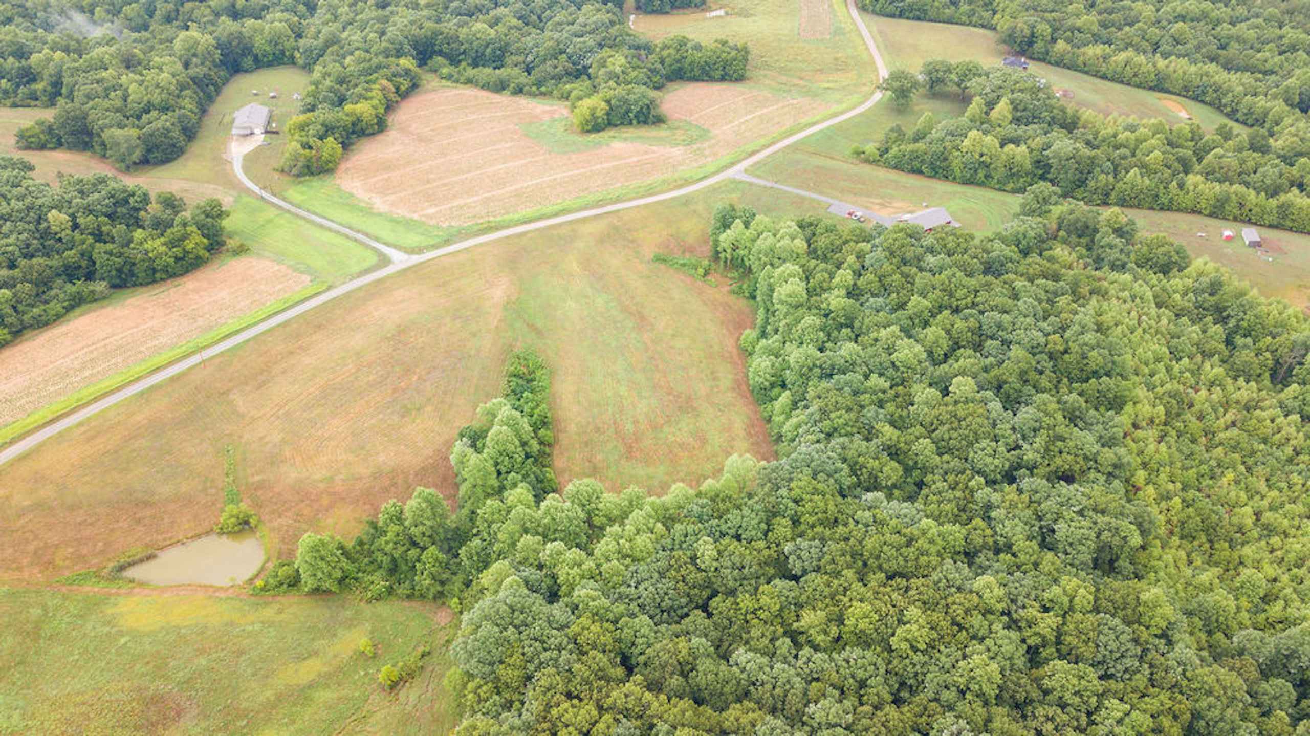Beautiful flat building tract close to Clarksville and Ft. Campbell. Multiple possible building sites with a current perc test approved for a four-bedroom house. A small pond that can easily be enlarged. Good mix of hardwoods and open ground. Also listed as a whole tract or split into two tracts, survey pending.