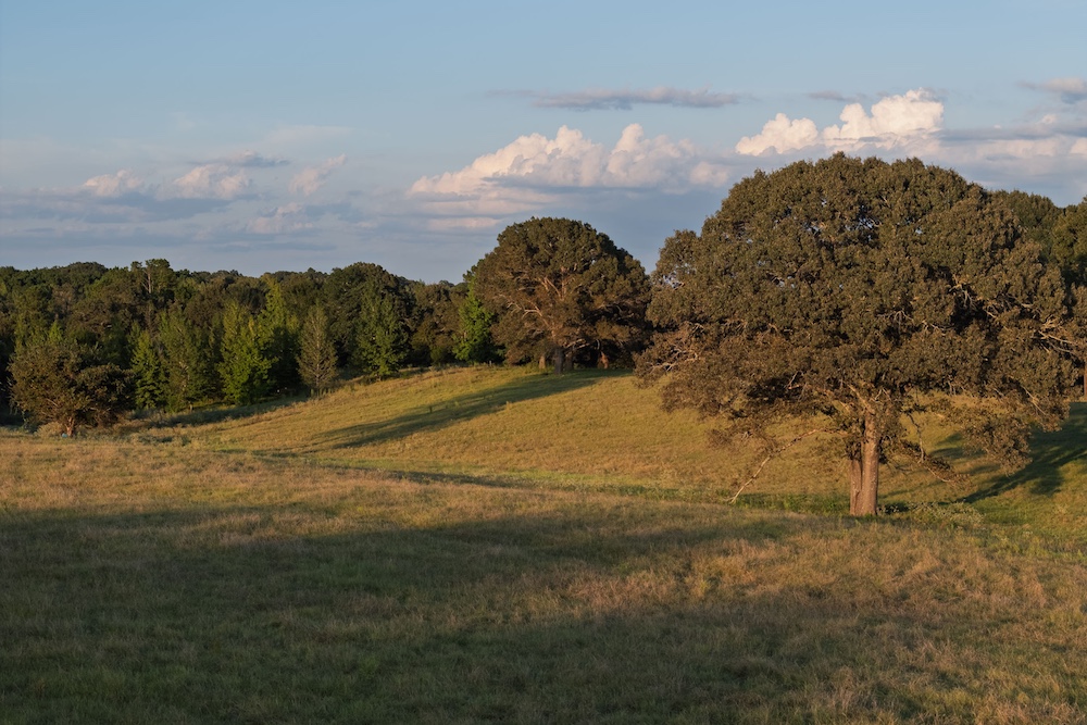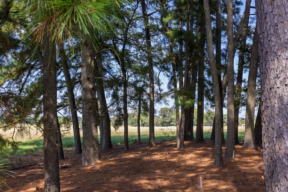 The mix of open pasture, scattered forest, and a bottomland transition zone imparts strong mixed-use and wildlife appeal. In this part of East Texas, deer (especially white-tailed) are common, and you may also see feral hogs, squirrels, rabbits, and a variety of smaller mammals. The nearby Gus Engeling Wildlife Management Area (≈ 11,000 acres) supports deer, quail, mourning dove, waterfowl, and small game species. Native trees throughout include oaks (post oak, swamp white oak, others), native pines (loblolly / shortleaf), hickories, and bottomland hardwoods in the creek zone. Understory and pasture grasses are likely mixtures of improved fescues, Bermuda, native bluestems, Gulf Coast, and switchgrass (or local East Texas pasture mixes), depending on prior management. The tree cover also helps moderate heat and provides fawning cover and browse.