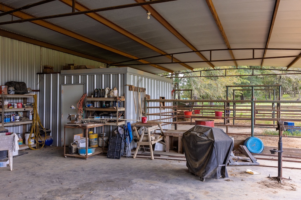 A robust 36′ × 72′ pipe-frame barn is sheeted on two sides, with about half of the floor area concreted. It includes an enclosed storage / tack area and pipe horse stalls that open into a small paddock, complete with a horse walker. This structure offers excellent utility for equipment, hay storage, equine use, or conversion to additional livestock handling space as needed. Adjacent to the home is also a small greenhouse for personal gardening or plant propagation.