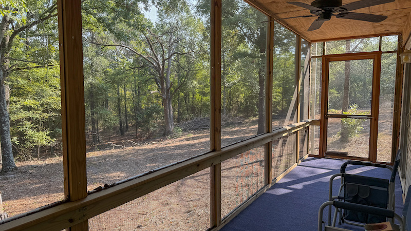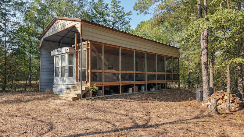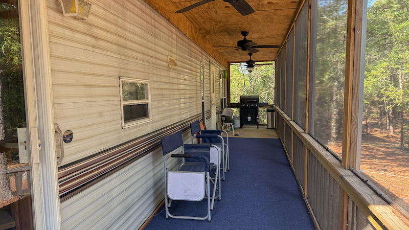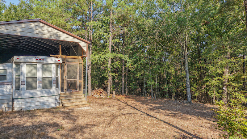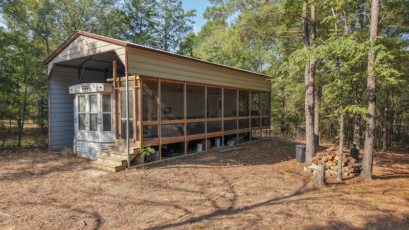 A park model camper with an added-on cover and screened porch is located on the property, providing a simple but functional place for extended stays. This setup allows for shelter during hunting seasons or recreational use and adds value as a base for future land improvement projects.