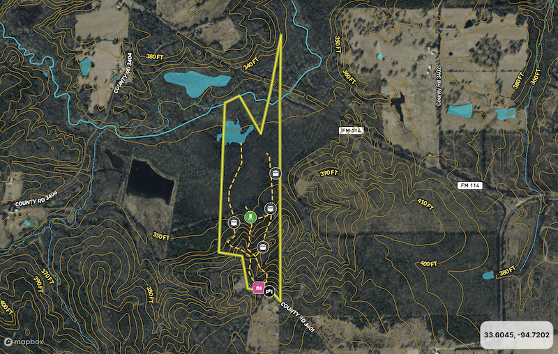 For buyers interested in a mix of recreational use, hunting, and long-term timber potential, this tract offers an opportunity to own acreage with multiple natural features and a functional camp already in place.