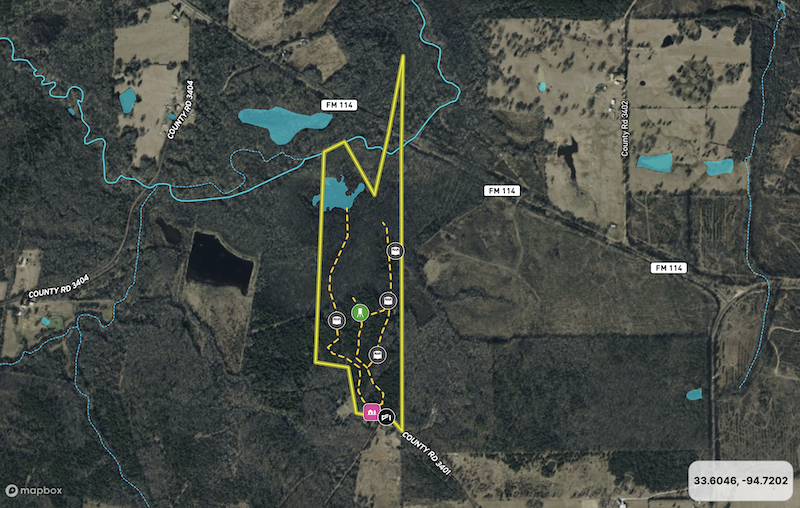 Situated in rural West Bowie County, the property provides seclusion but remains accessible. It lies approximately 10 miles west of De Kalb, where basic supplies, restaurants, and fuel are available. Texarkana, a larger city with full services and amenities, is about 40 miles to the northeast.