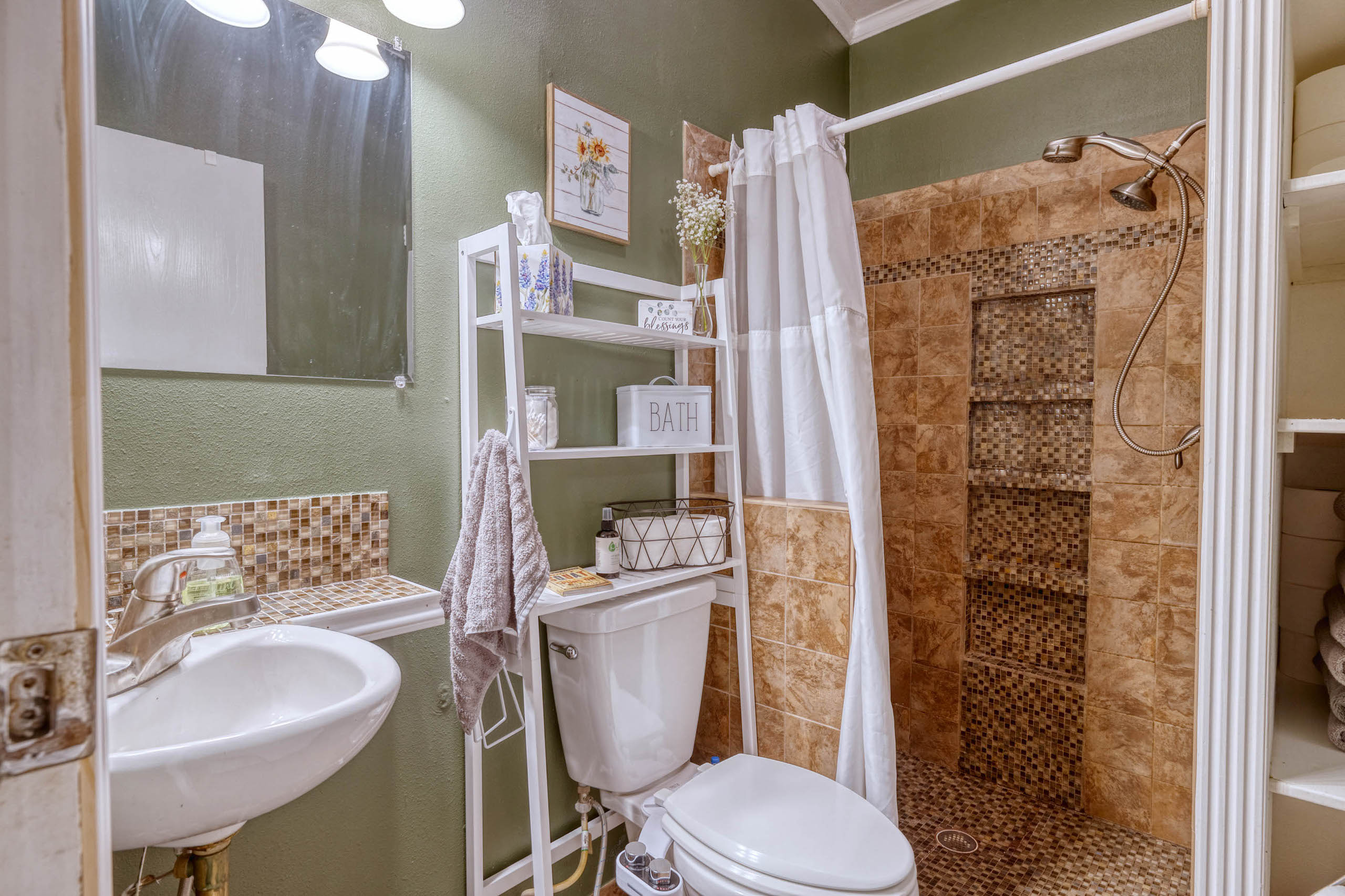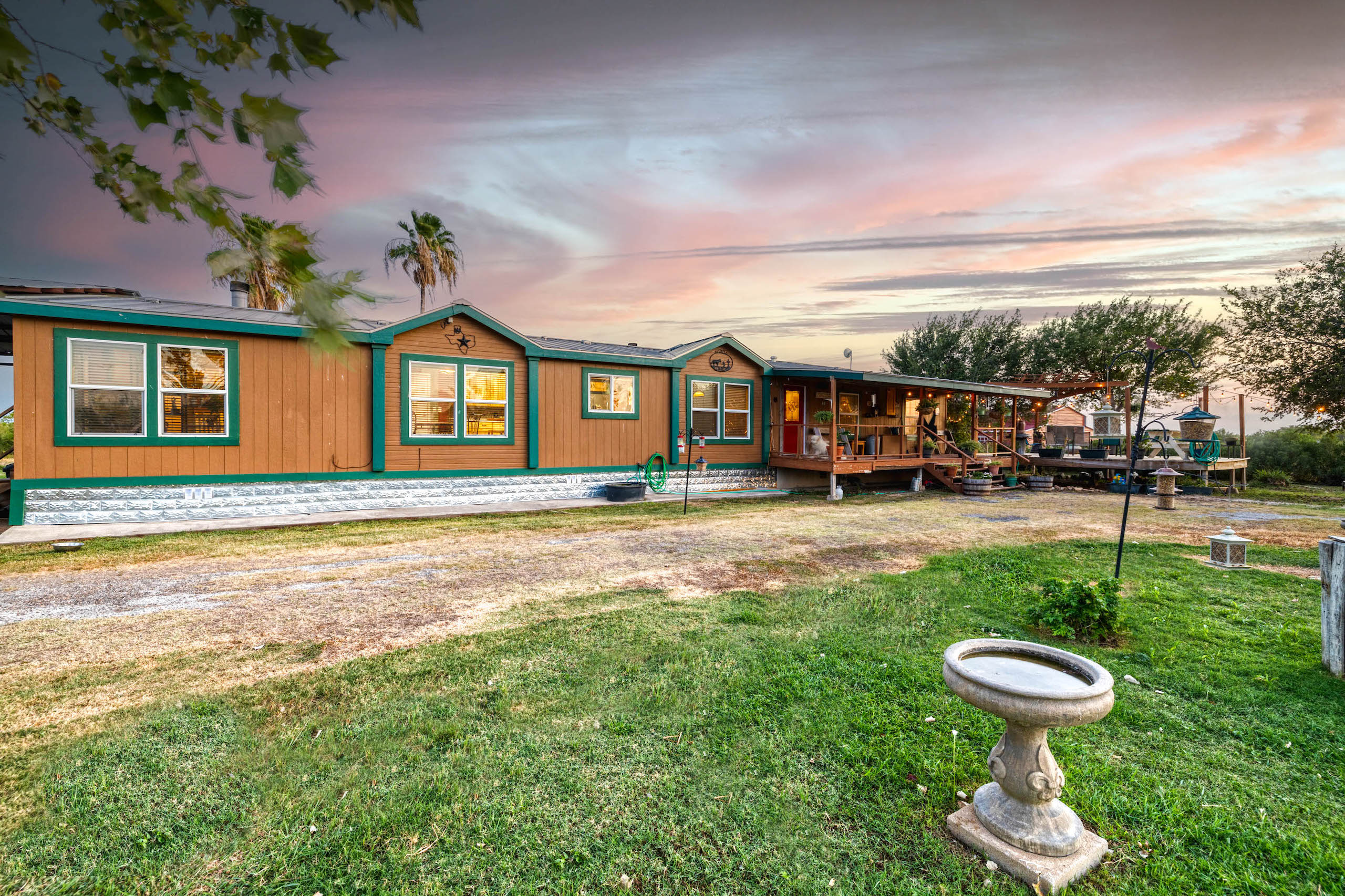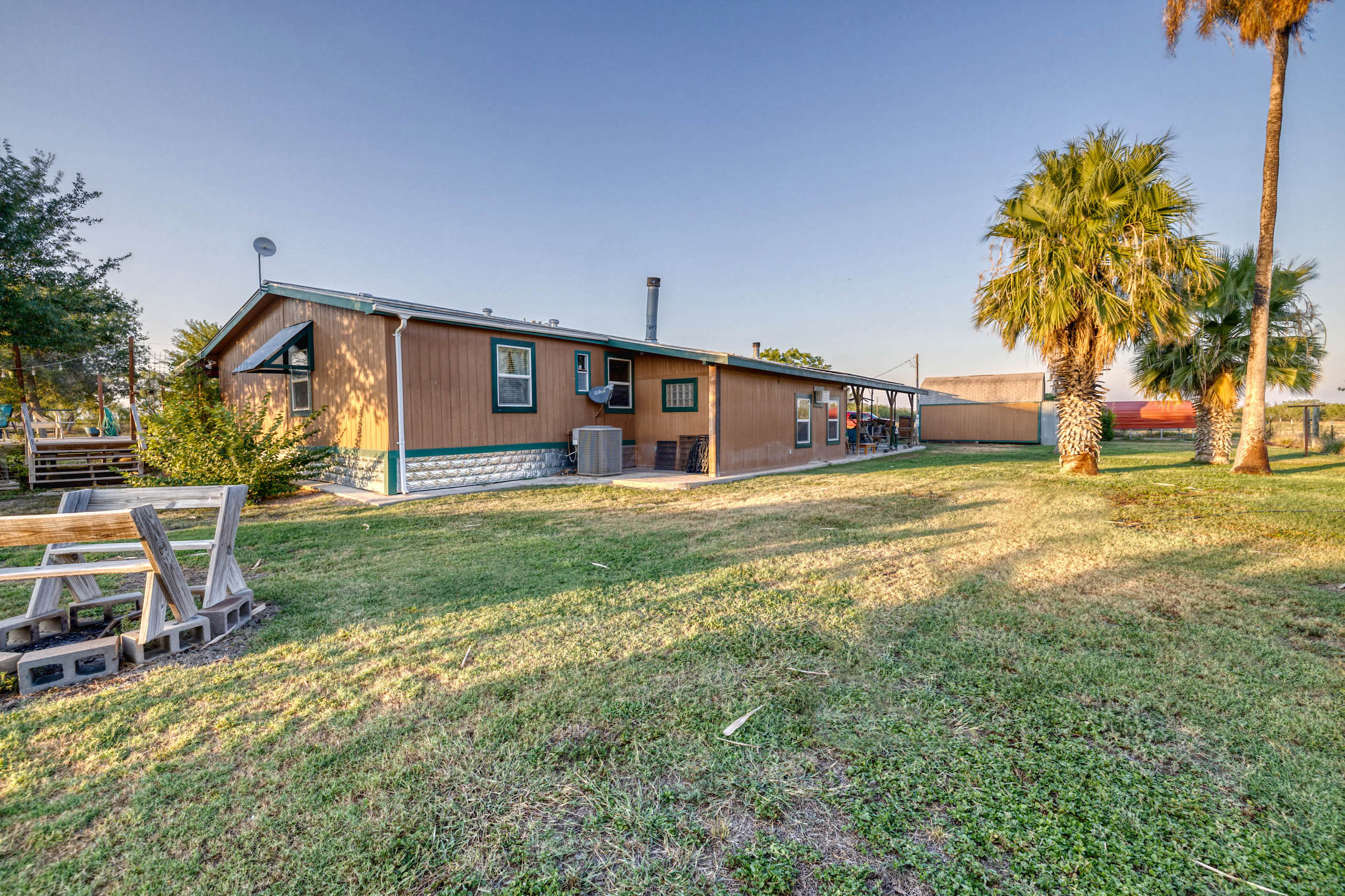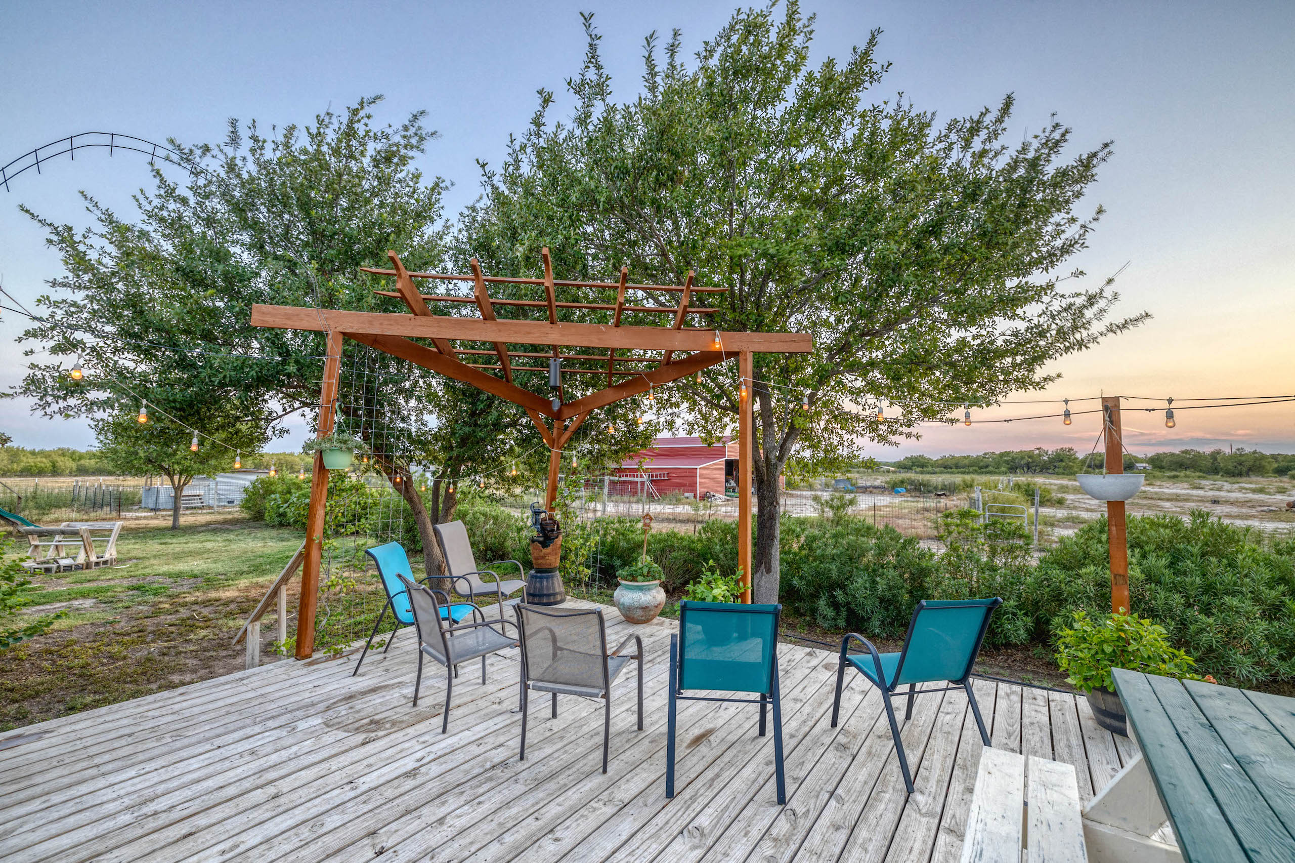 Improvements: A +/-2600 sf home with 5 bedrooms, 4 baths and a metal roof is full of upgrades and in excellent condition. There is also a 1 bedroom, 1 Ba room added on to the back of the house for guests to have their own privacy. Both the front and back porches are covered and there is a separate deck and pergola for outdoor BBQ. Extending from the house is a large metal-covered area for parking multiple vehicles. A nice +/- 2200 sf metal barn provides plenty of storage room and protection for equipment. Electricity runs from the front gate and down most of the north property line providing multiple options for additional power needs. There is a meter at the front gate and a second meter at the house. In addition, there is an RV hook-up near the house.