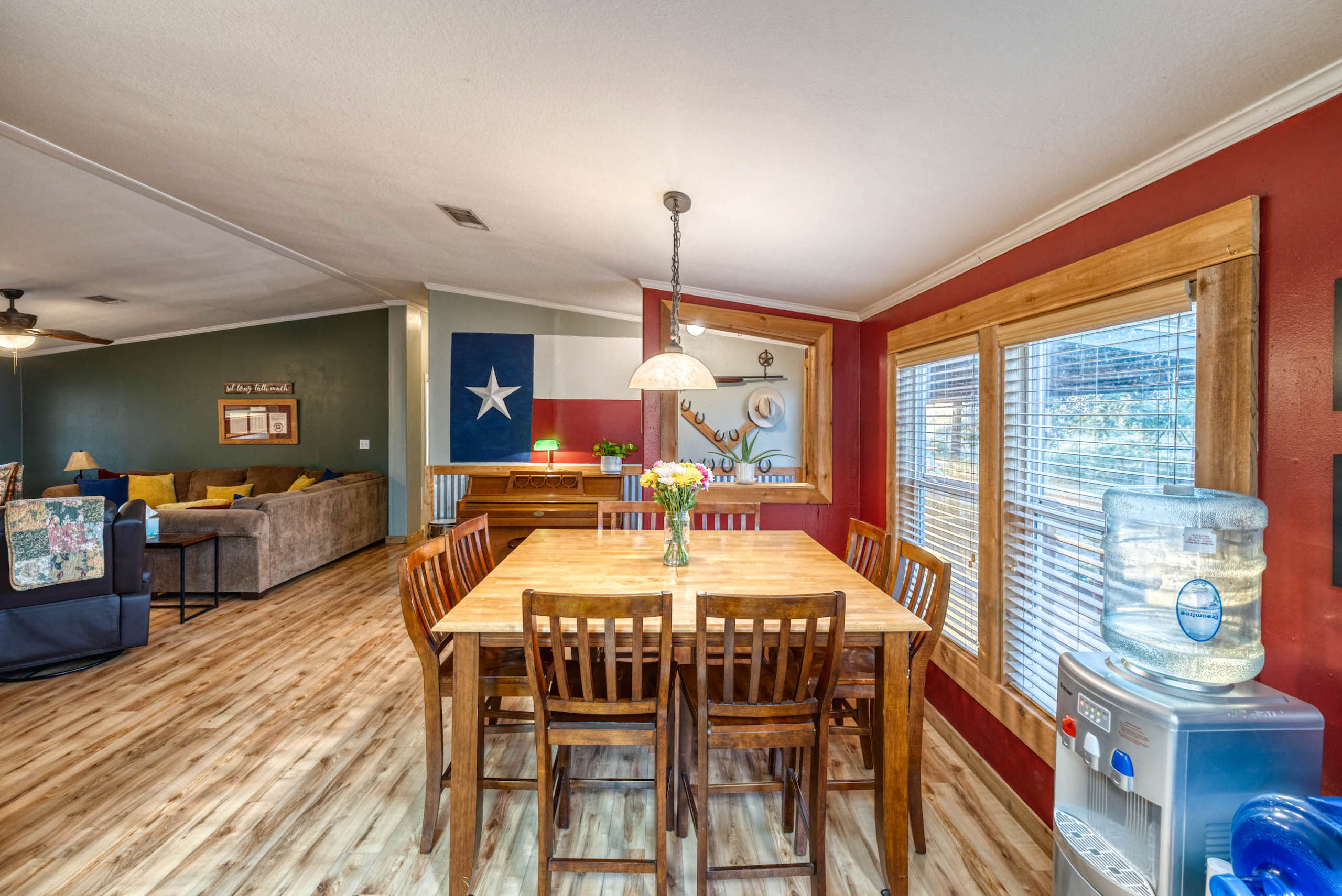 Water: City water from Brundage supplies the home. A water well provides water to two ponds and a water trough. There is roughly half a mile of underground water line so water is spread out nicely across the ranch. In addition, there is a natural drainage that fills one of the ponds and another drainage on the west side of the property that creates a creek bottom feel.