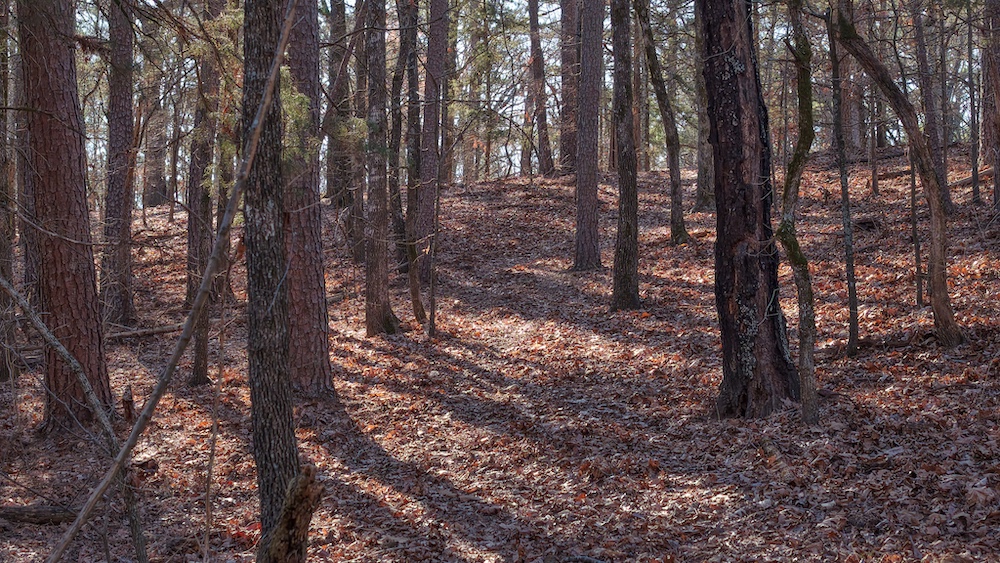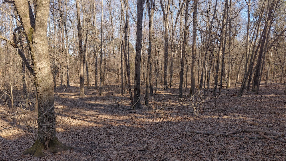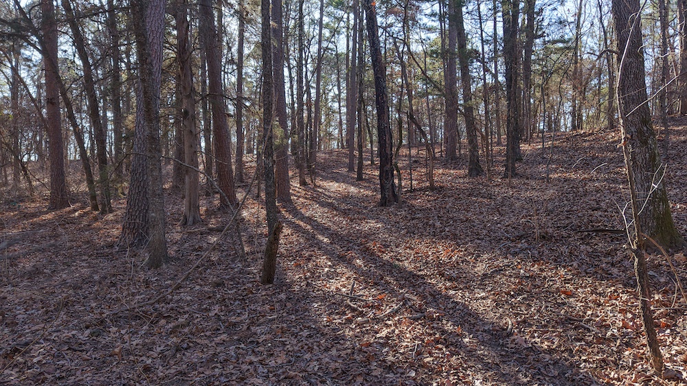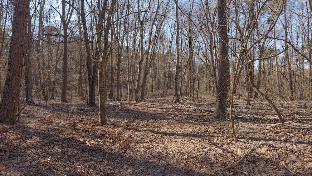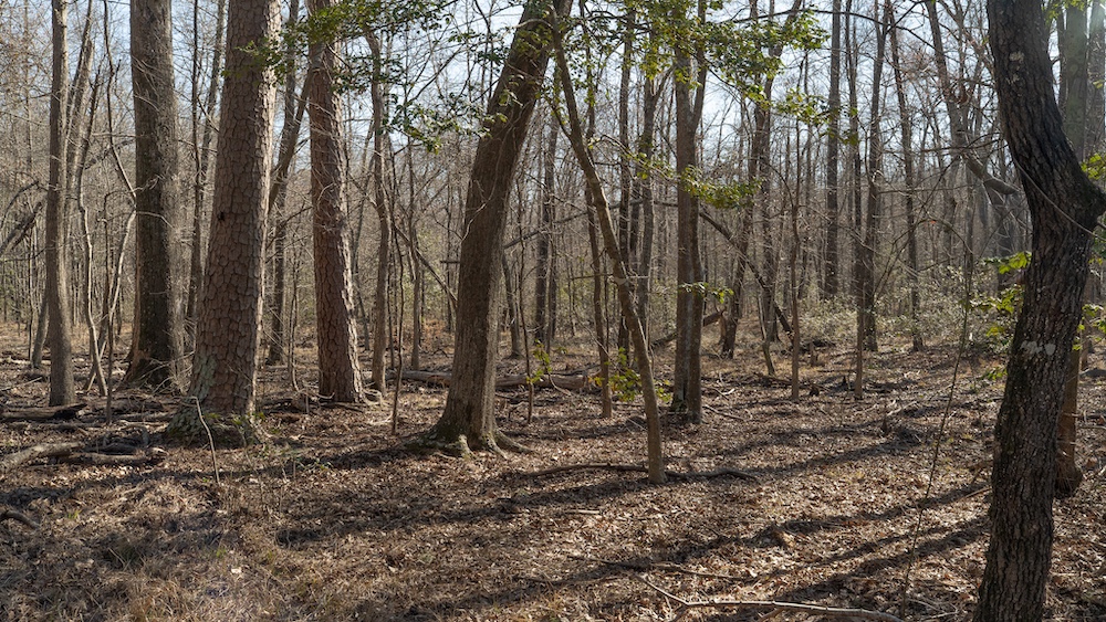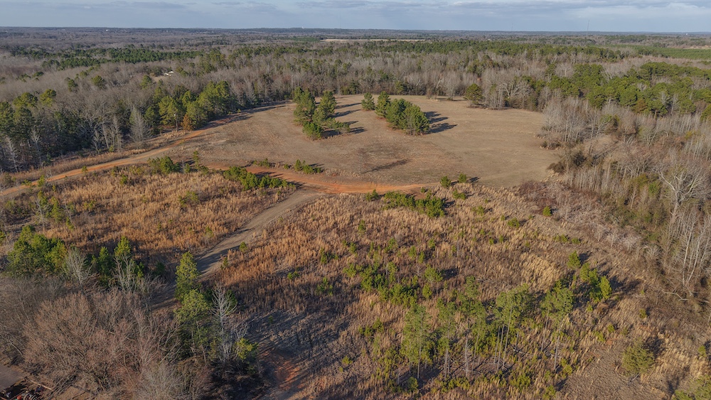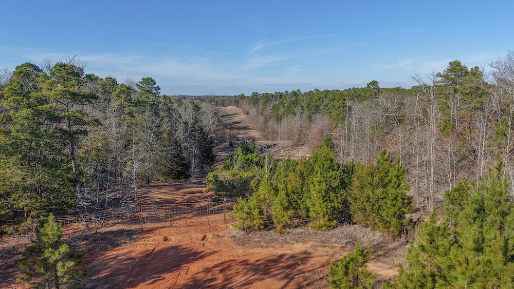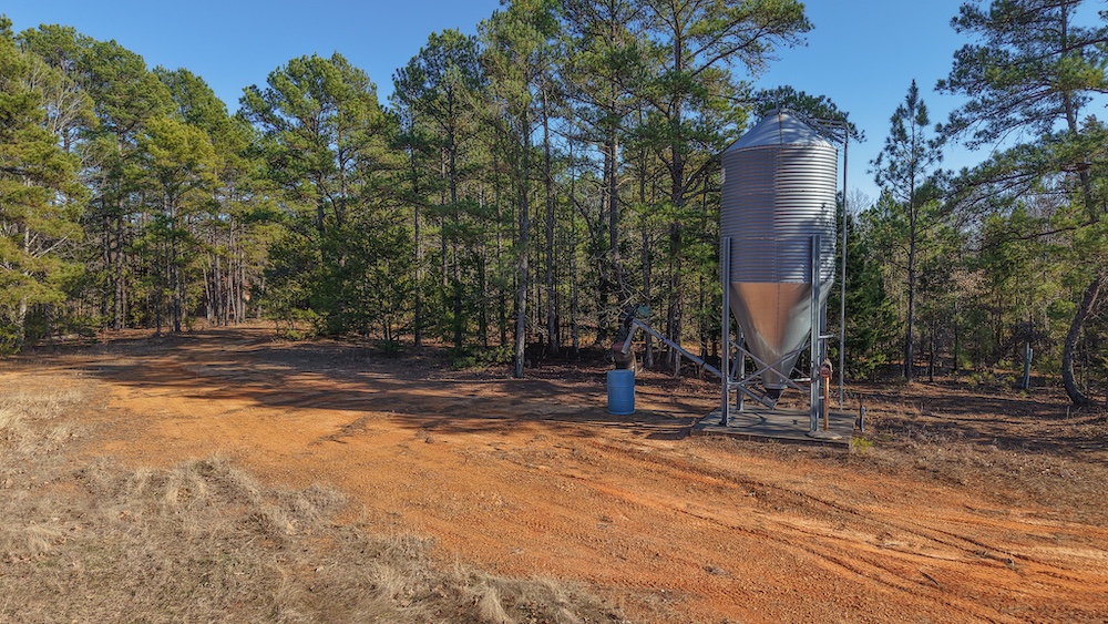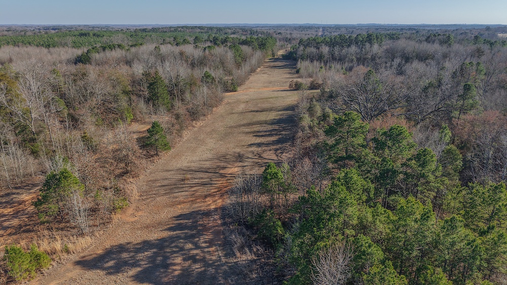 The land features a mix of hardwood and pine timber with rolling to sloping terrain that creates visual diversity and natural drainage. Elevation changes across the property contribute to wildlife travel corridors and provide a variety of stand locations for hunting. An extensive network of trails allows access throughout the acreage for maintenance, hunting, and recreational use. These trails connect key areas of the property and support efficient management of the land.