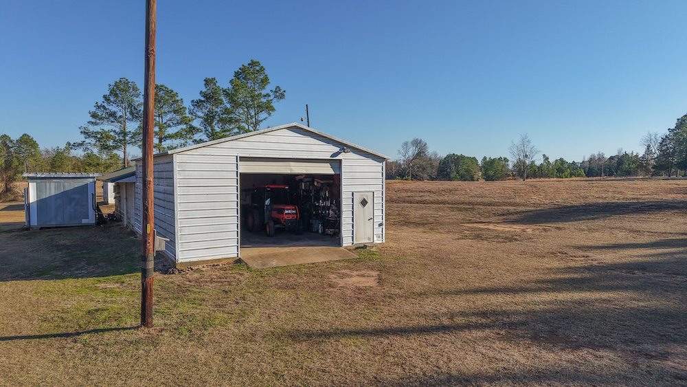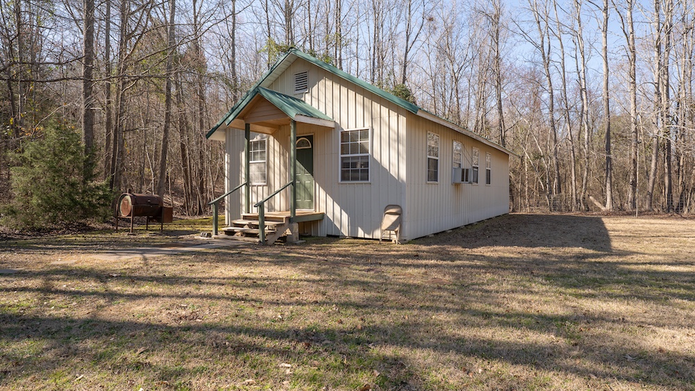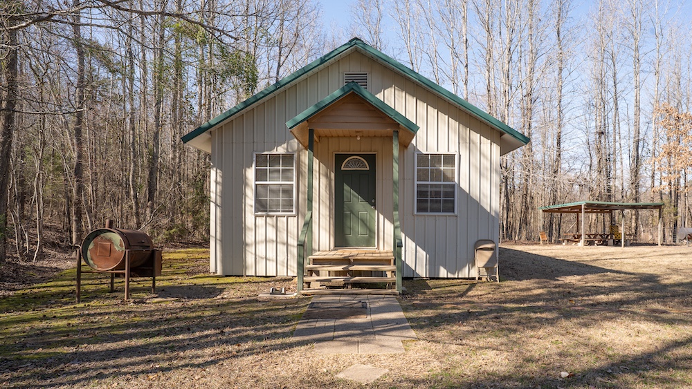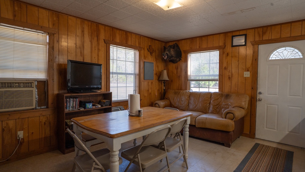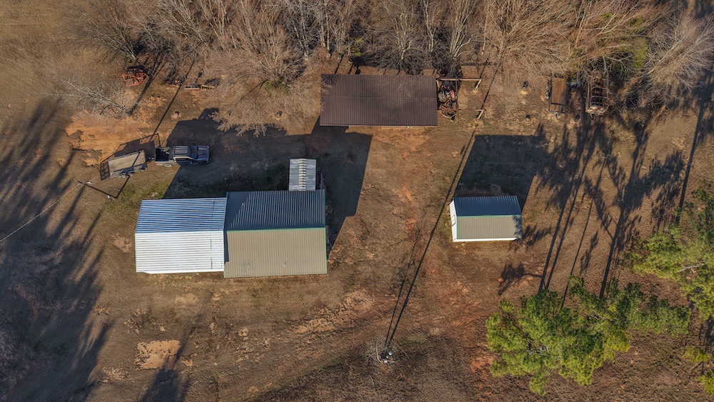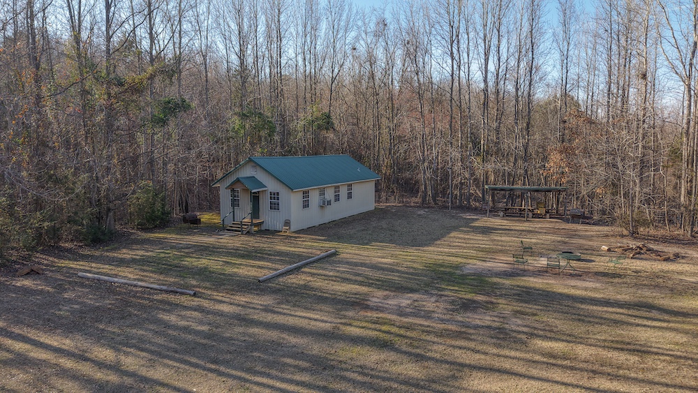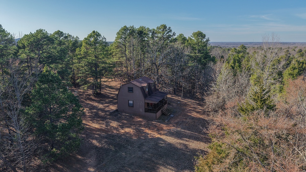 The main residence is a brick home with three bedrooms and two-and-a-half bathrooms. The home includes a sunroom and a large back porch and is situated high on a hill, providing separation from other improvements and surrounding acreage. The home is well-suited for full-time living or extended use. The two additional cabins are privately located on the property and offer flexible options for guest lodging, hunting camps, or supplemental use, depending on buyer needs. There are multiple storage sheds and shops located on the property, as well as a walk-in cooler. All of the improvements are far off the highway, making this a secluded getaway.