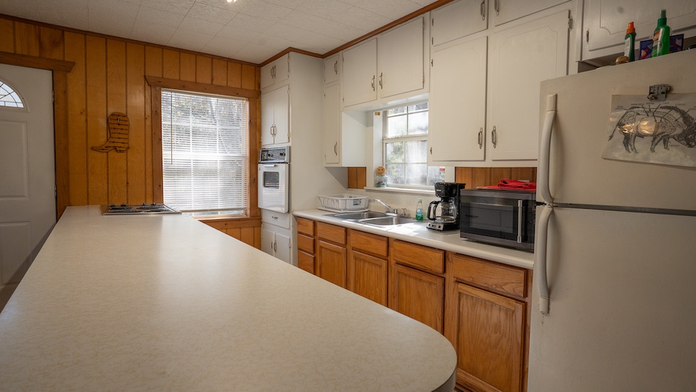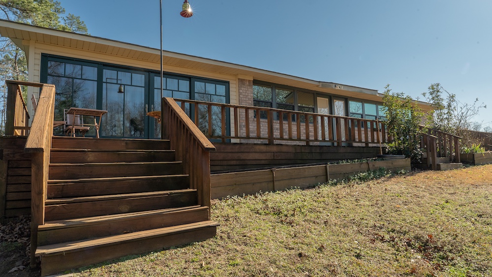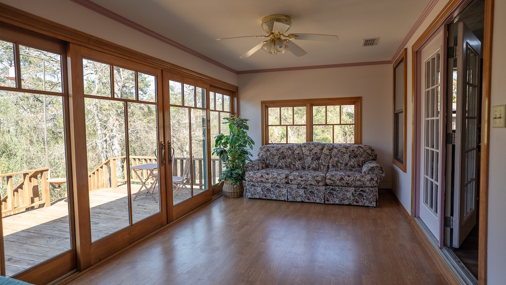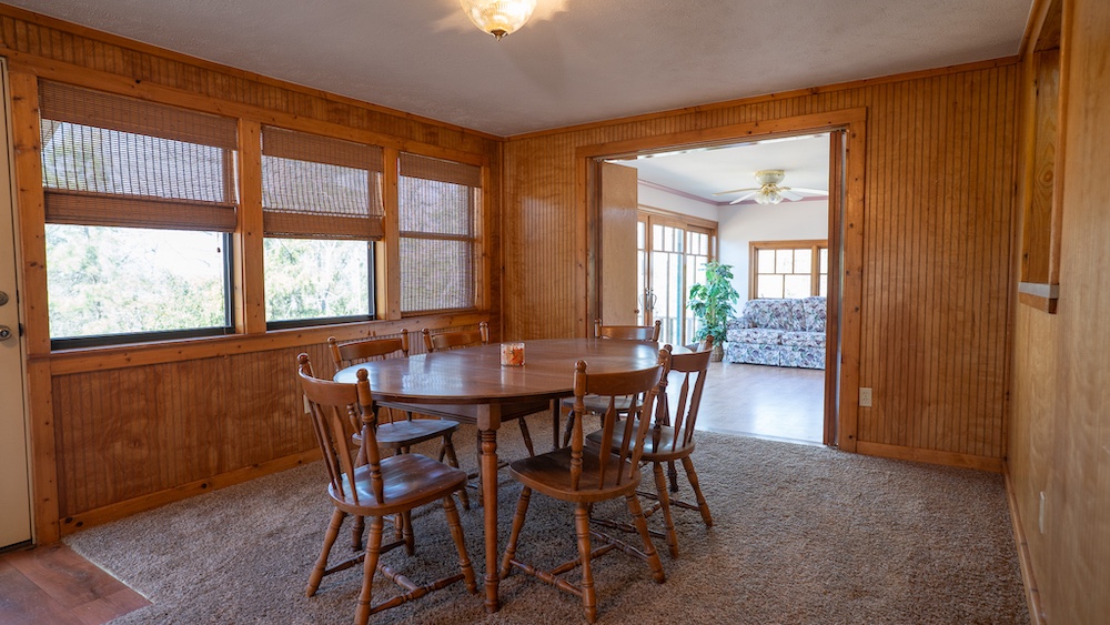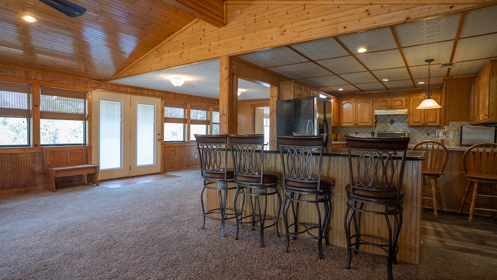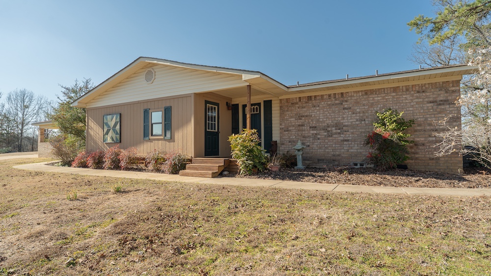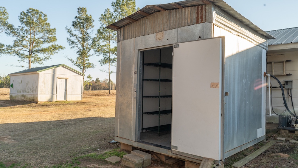 The main residence is a brick home with three bedrooms and two-and-a-half bathrooms. The home includes a sunroom and a large back porch and is situated high on a hill, providing separation from other improvements and surrounding acreage. The home is well-suited for full-time living or extended use. The two additional cabins are privately located on the property and offer flexible options for guest lodging, hunting camps, or supplemental use, depending on buyer needs. There are multiple storage sheds and shops located on the property, as well as a walk-in cooler. All of the improvements are far off the highway, making this a secluded getaway.