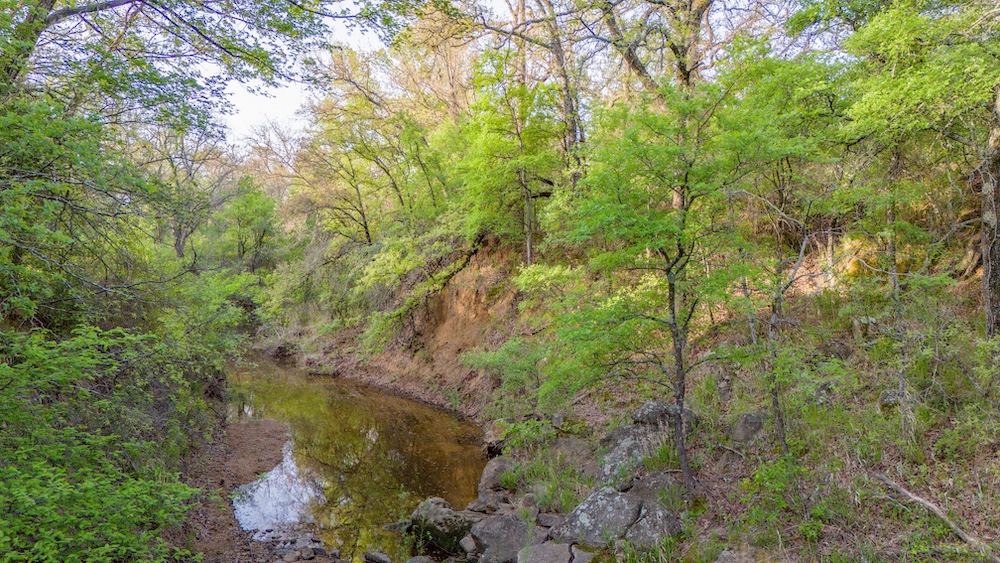 Located in the rolling Post Oak country of central Jack County, the Salt Creek 120 is a scenic tract with good cover, strong grasses, and over 125 feet of elevation change. Mature post oak and blackjack predominate the high ridges; native bluestem and side-oats grama hold the slopes and flats. Salt Creek, a clear, rocky seasonal stream, crosses the entire eastern third and is lined with elm, hackberry, and scattered pecan.