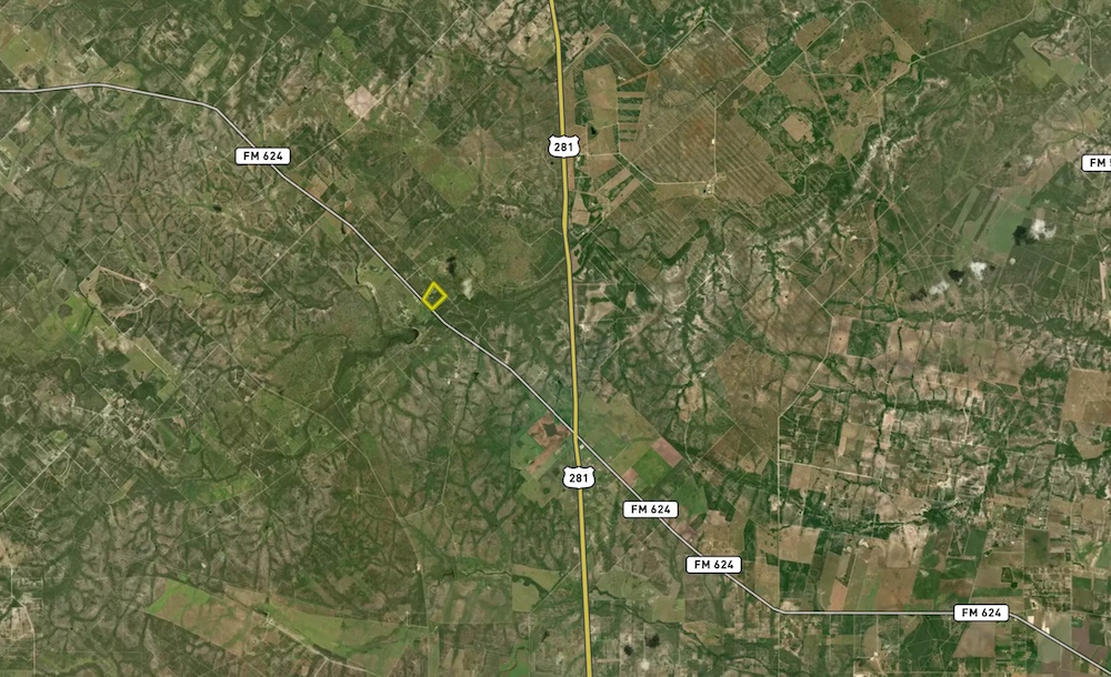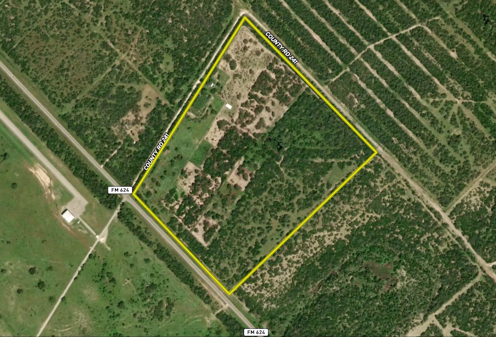 Location: About 25 minutes south of George West on the corner of FM 624 and CR 241. Roughly 1.5 hours to San Antonio or 45 minutes to Corpus Christi.