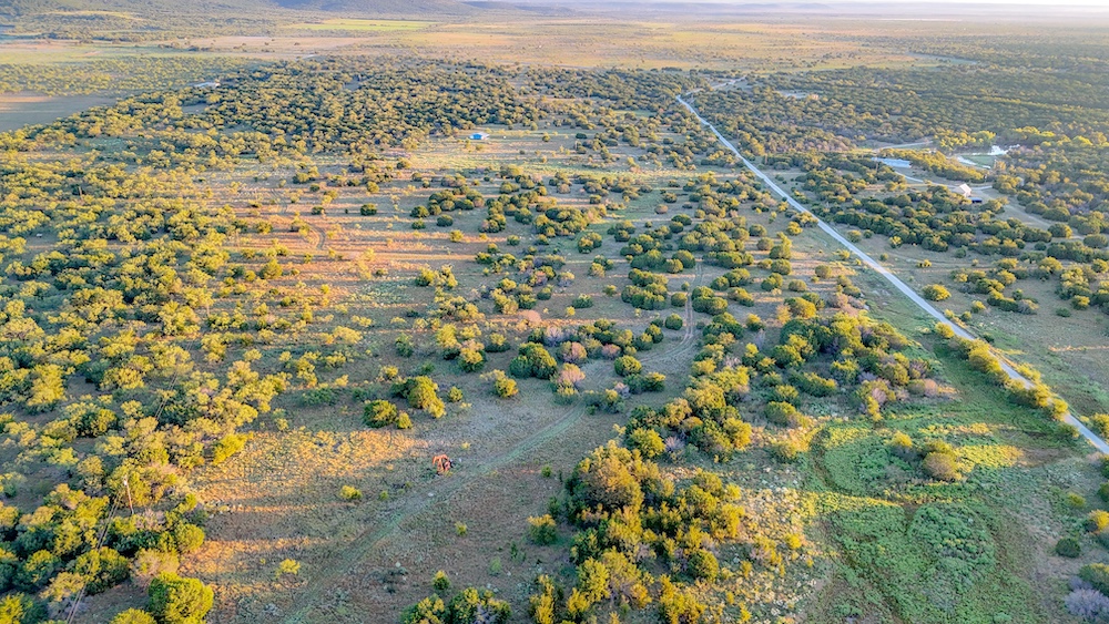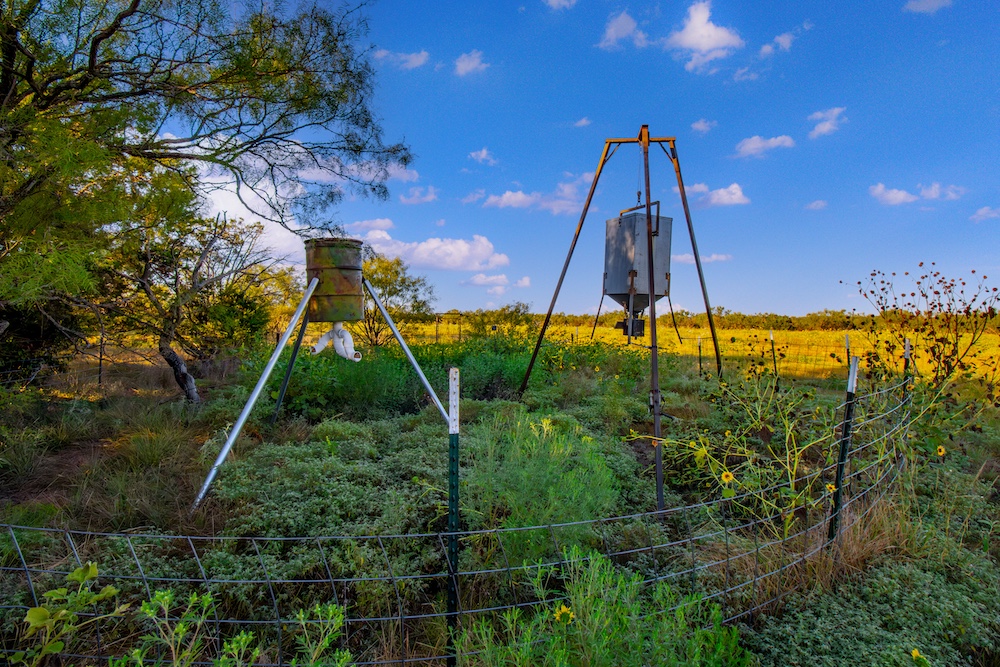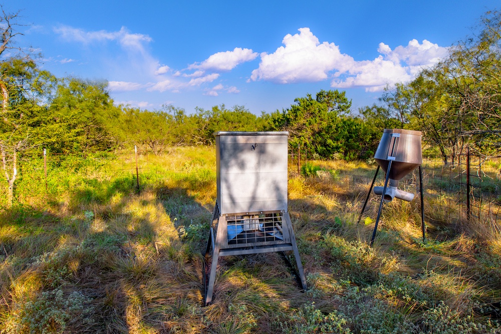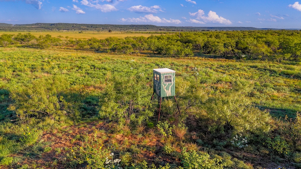 The property features a blend of terrain that includes gentle rolling pastures, open parks, and scattered stands of mesquite and cedar. These variations create a balanced landscape that supports both agricultural use and recreational activities. One pond on the property provides a water source for livestock and also attracts native wildlife. Common wildlife in the area includes whitetail deer, turkey, and dove, making the land suitable for hunting or observation. Two nice elevated blinds, three corn feeders, and three protein feeders will convey to the new buyer.