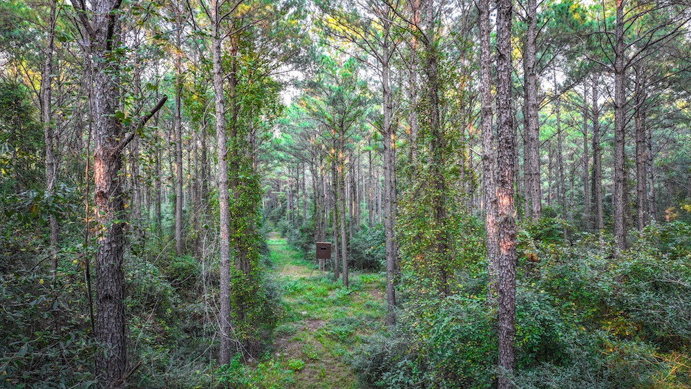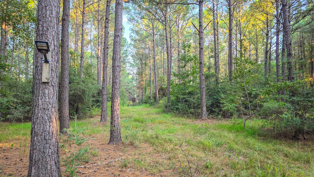 The landscape is a mix of towering pines and native hardwoods, providing not only shade and natural beauty but also a healthy habitat for a wide variety of wildlife. Outdoor enthusiasts will be thrilled to discover that the property is home to whitetail deer, wild hogs, varmints, and many other species, making it an ideal spot for hunting or simply enjoying the sights and sounds of nature. The forested terrain is complemented by a well-laid-out trail system, allowing easy access to all parts of the property. Whether you are hiking, riding ATVs, or simply exploring, these trails make the land both enjoyable and practical.