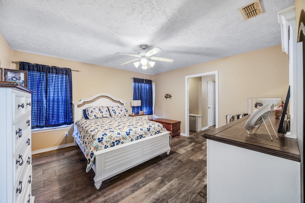Outside, you’ll find an 1,800± square foot barn with roll-up doors for tractors, ATVs, or equipment, plus a smaller storage shed and dog kennel. The property is Ag-exempt and runs on a private water well. For the outdoorsman, it’s an excellent hunting and recreation tract; with mature whitetail, established trails, food plot areas, and a tucked-away pond in the timber.