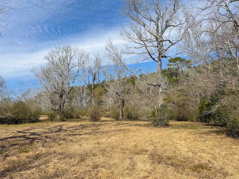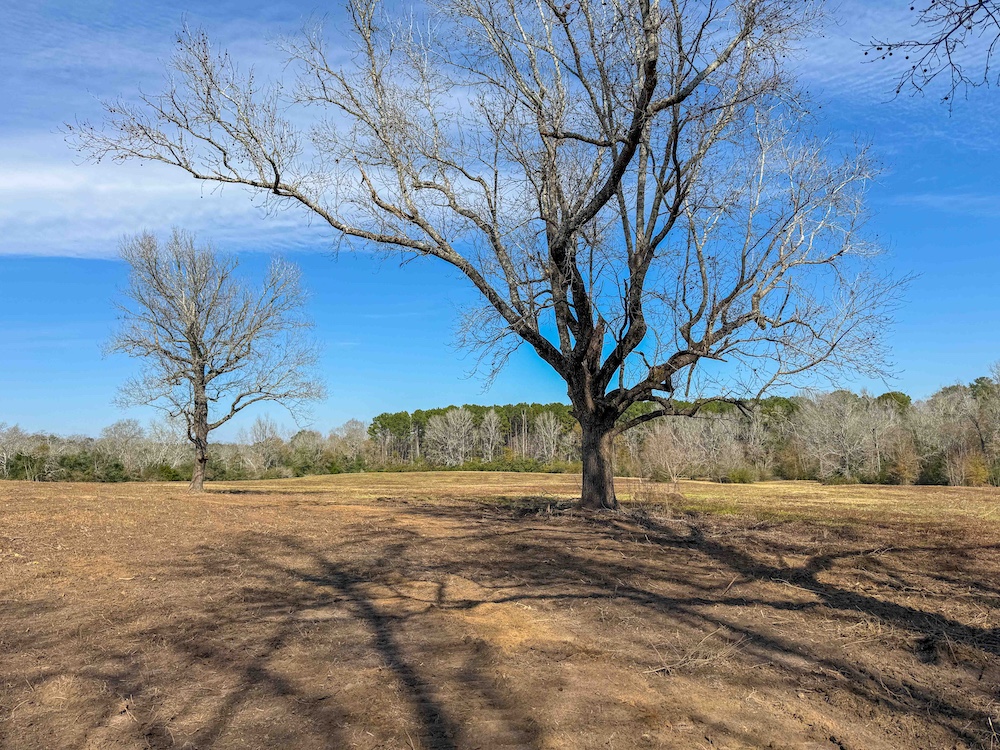 The property features over 50 feet of elevation change, creating multiple elevated build sites positioned on gently rolling hilltops. These higher points offer excellent drainage and ideal locations for a future permanent residence. Large, mature hardwood trees dot the landscape. They provide shade and character, giving the property a settled, established feel that’s hard to replicate.